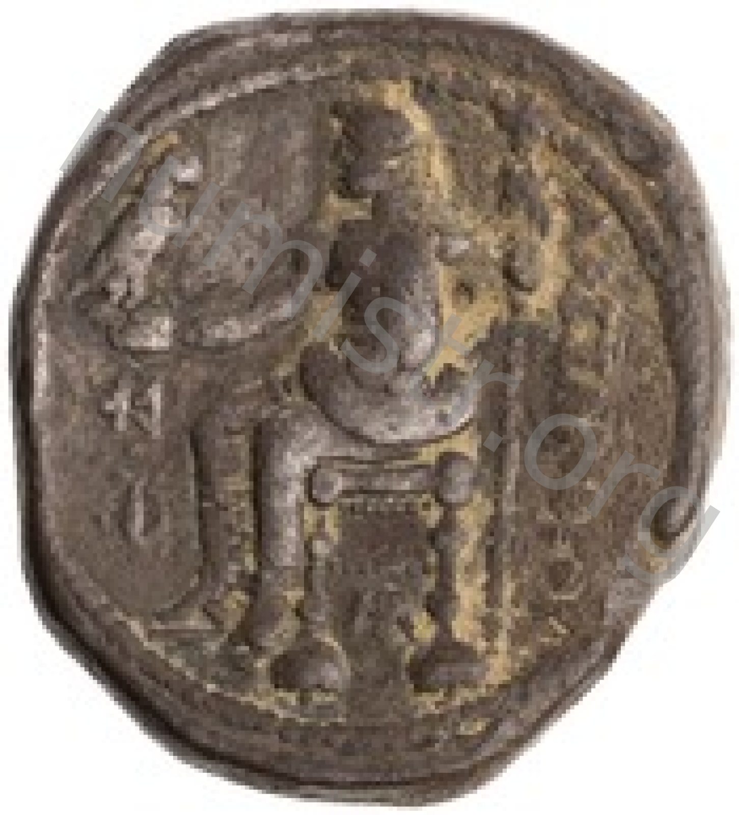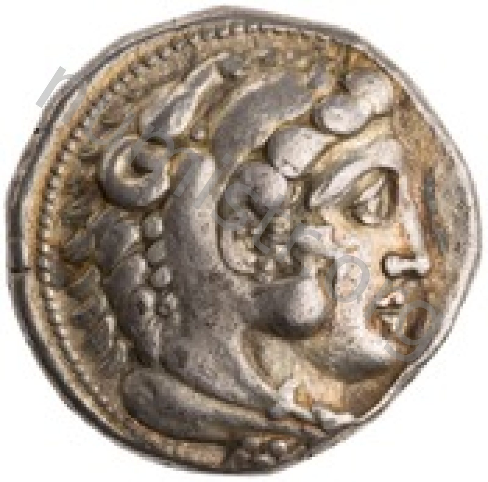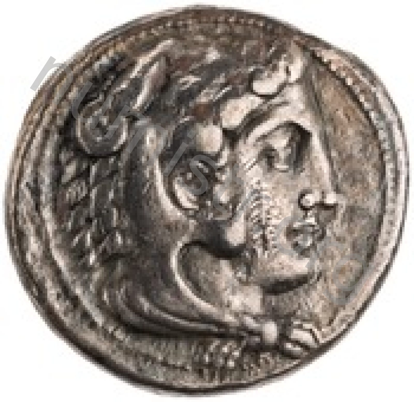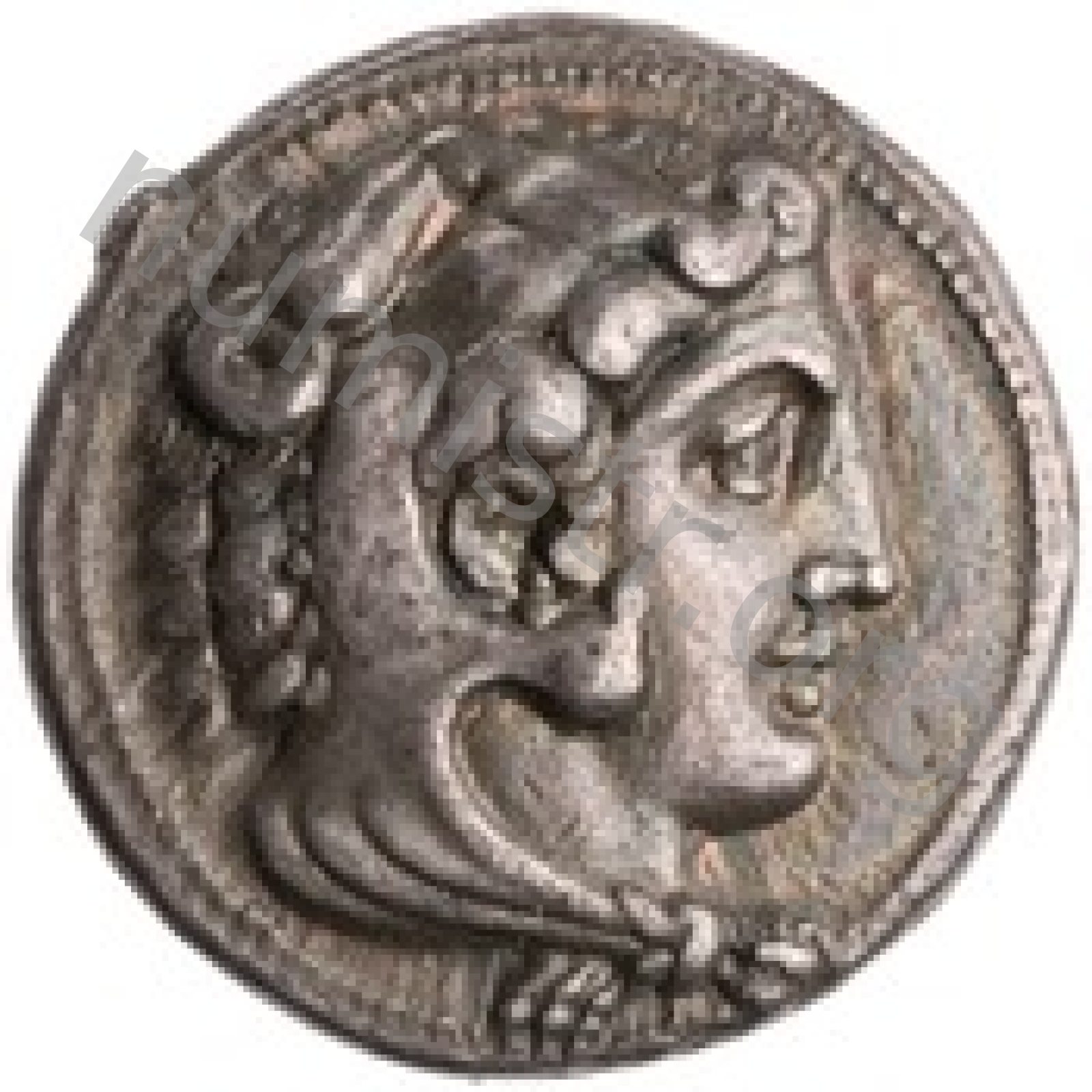 Head of beardless Heracles right wearing lion skin headdress -[en]