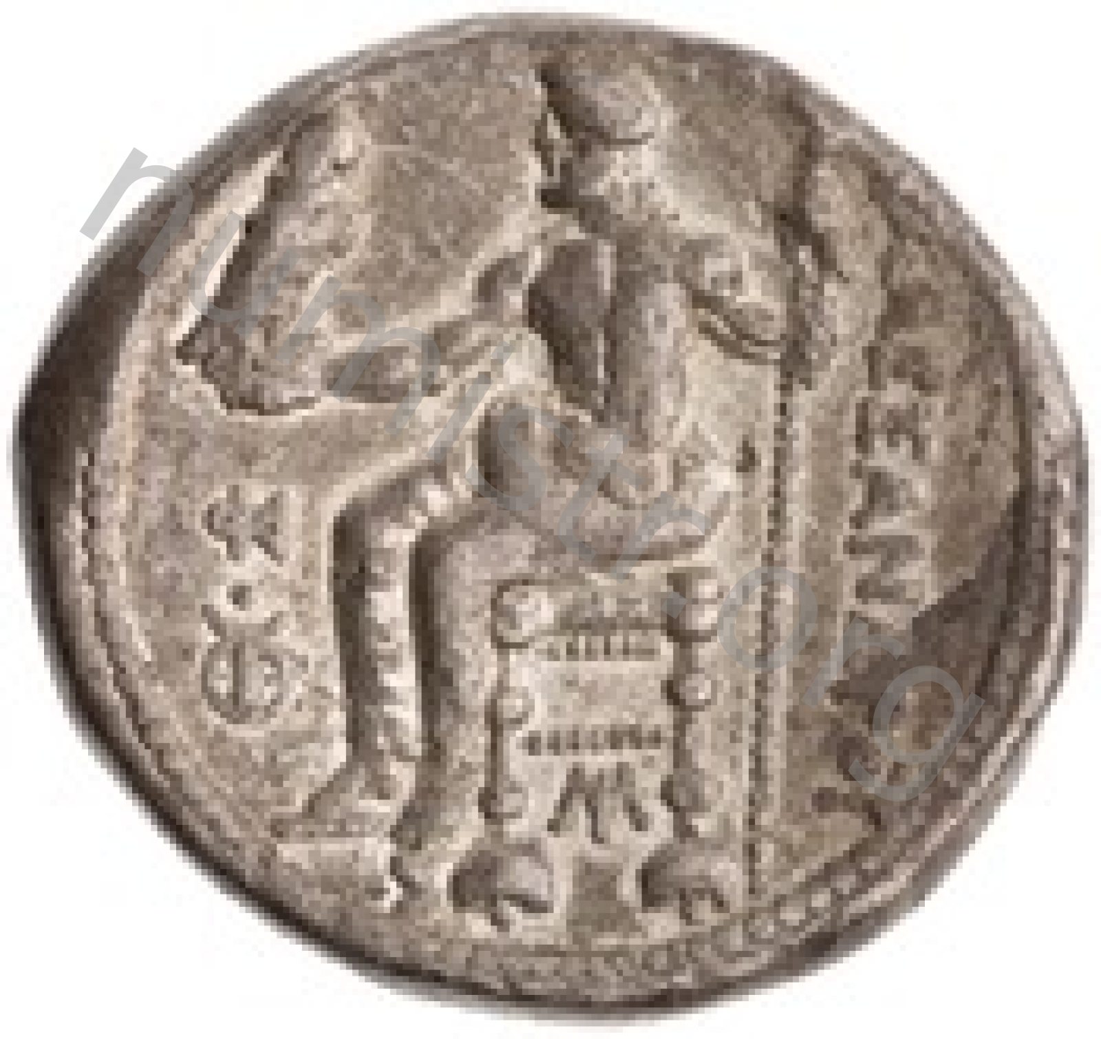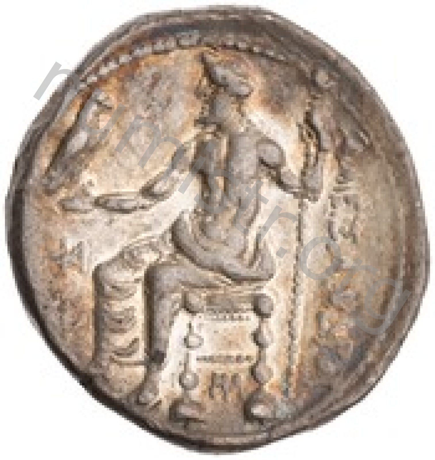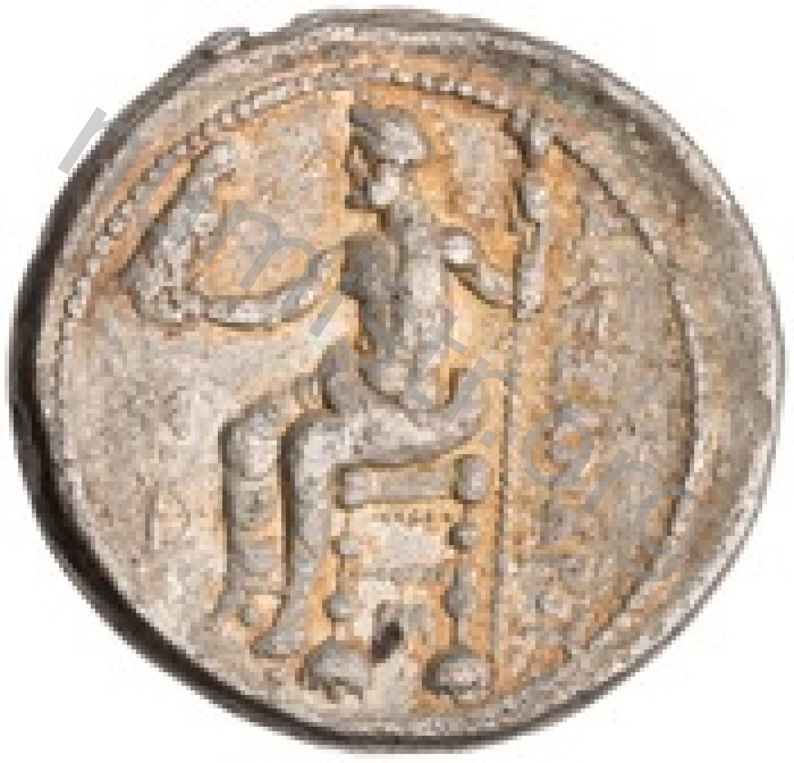 Zeus tabure-tahtta oturuyor sol elinde kartal sağ elinde asa var.