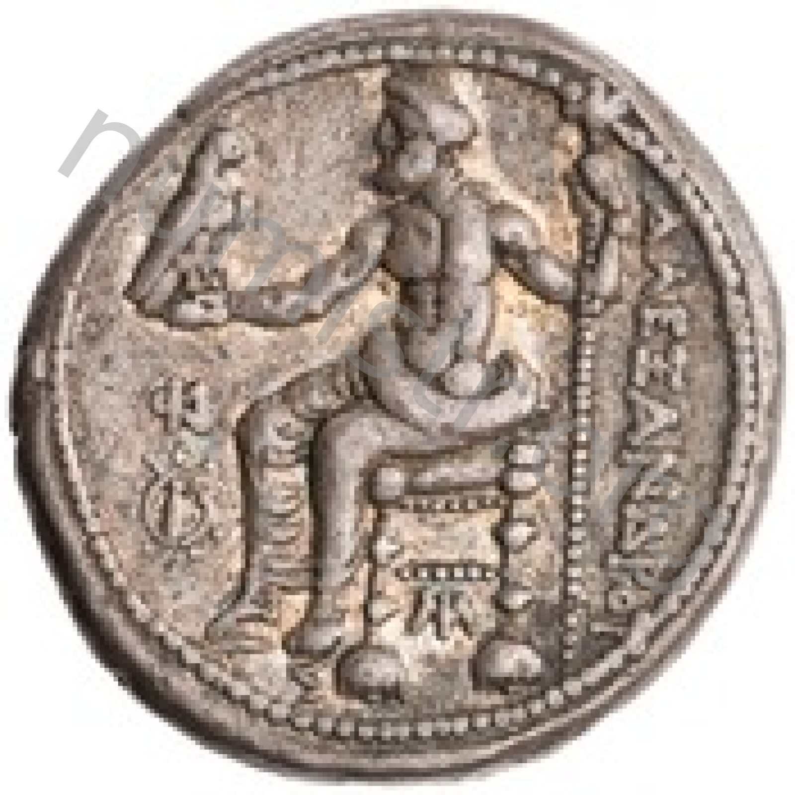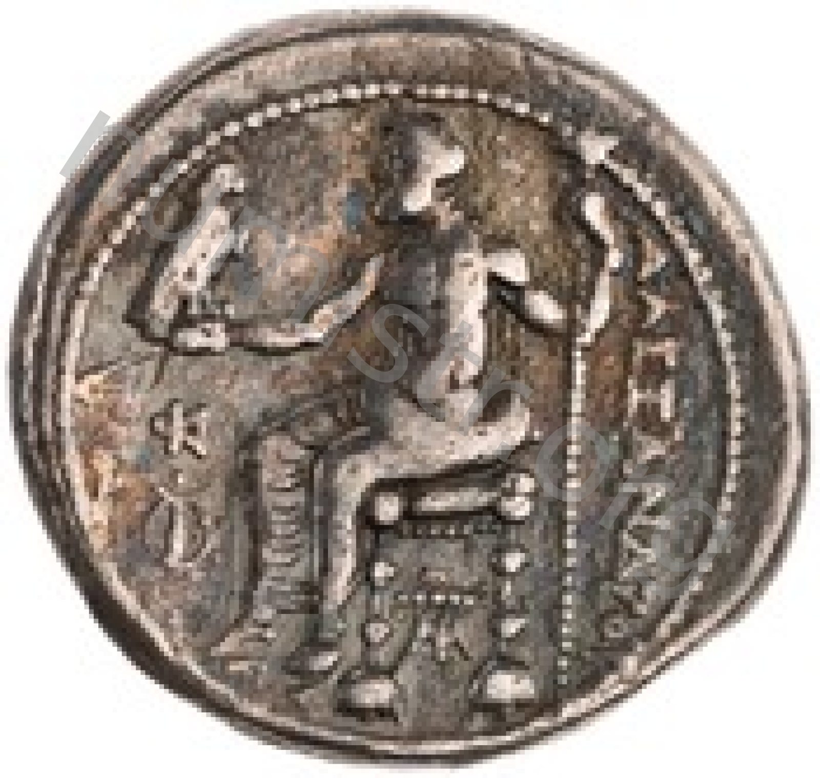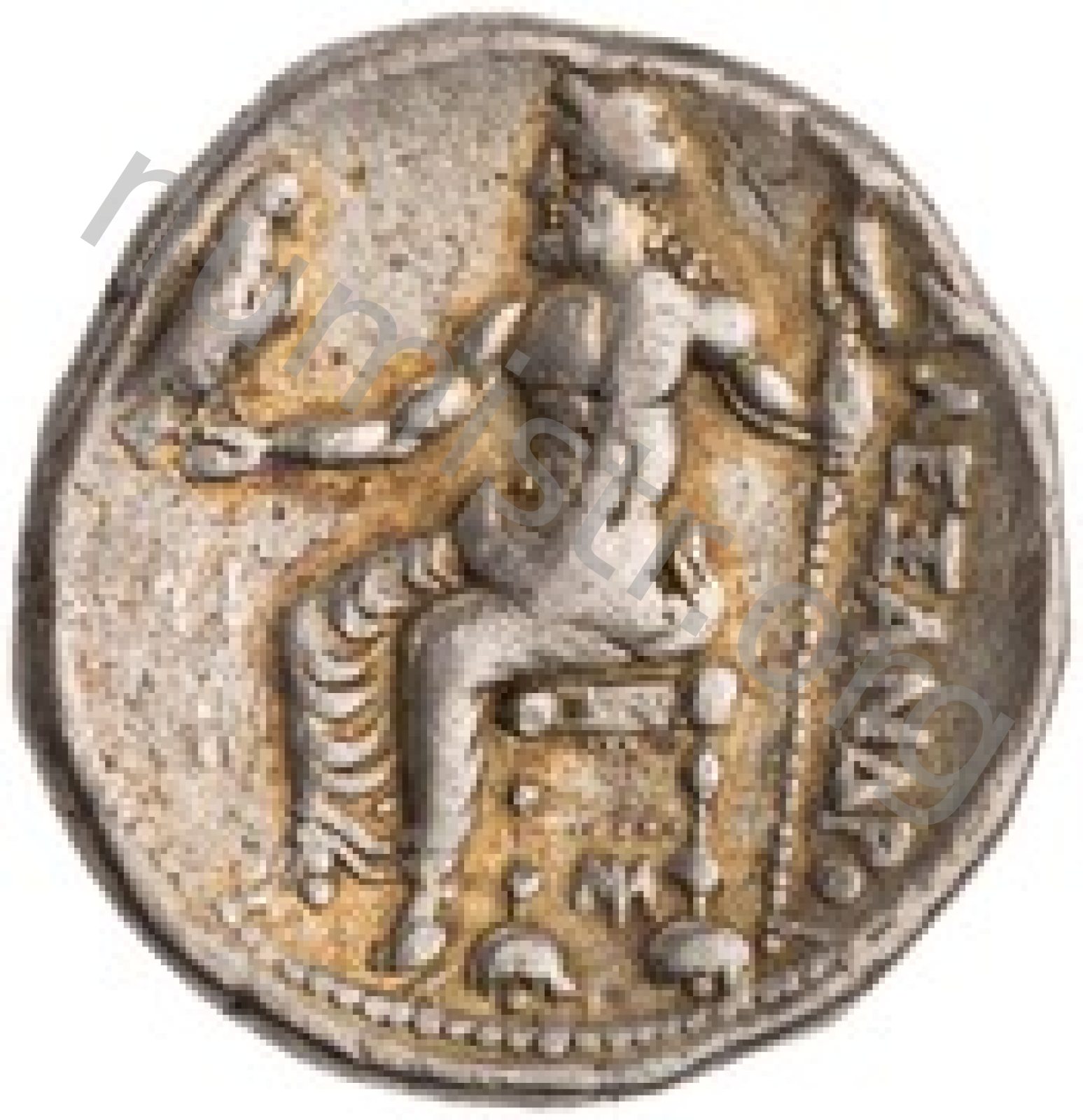Zeus tabure-tahtta oturuyor sol elinde kartal sağ elinde asa var.
