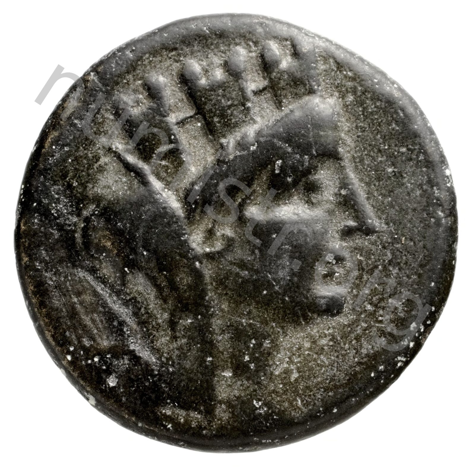 Head of Tyche wearing a veil and turreted crown -[en]