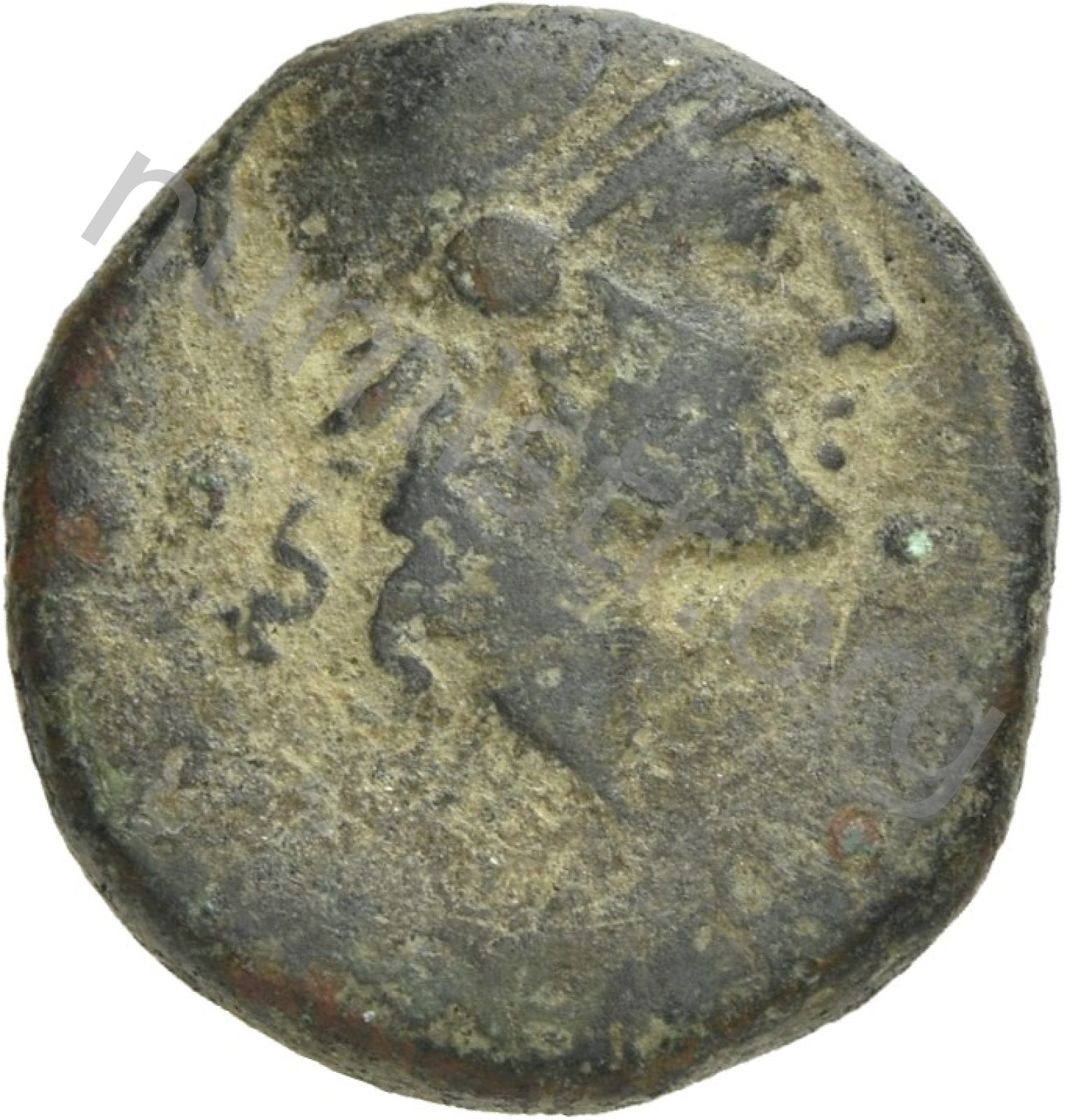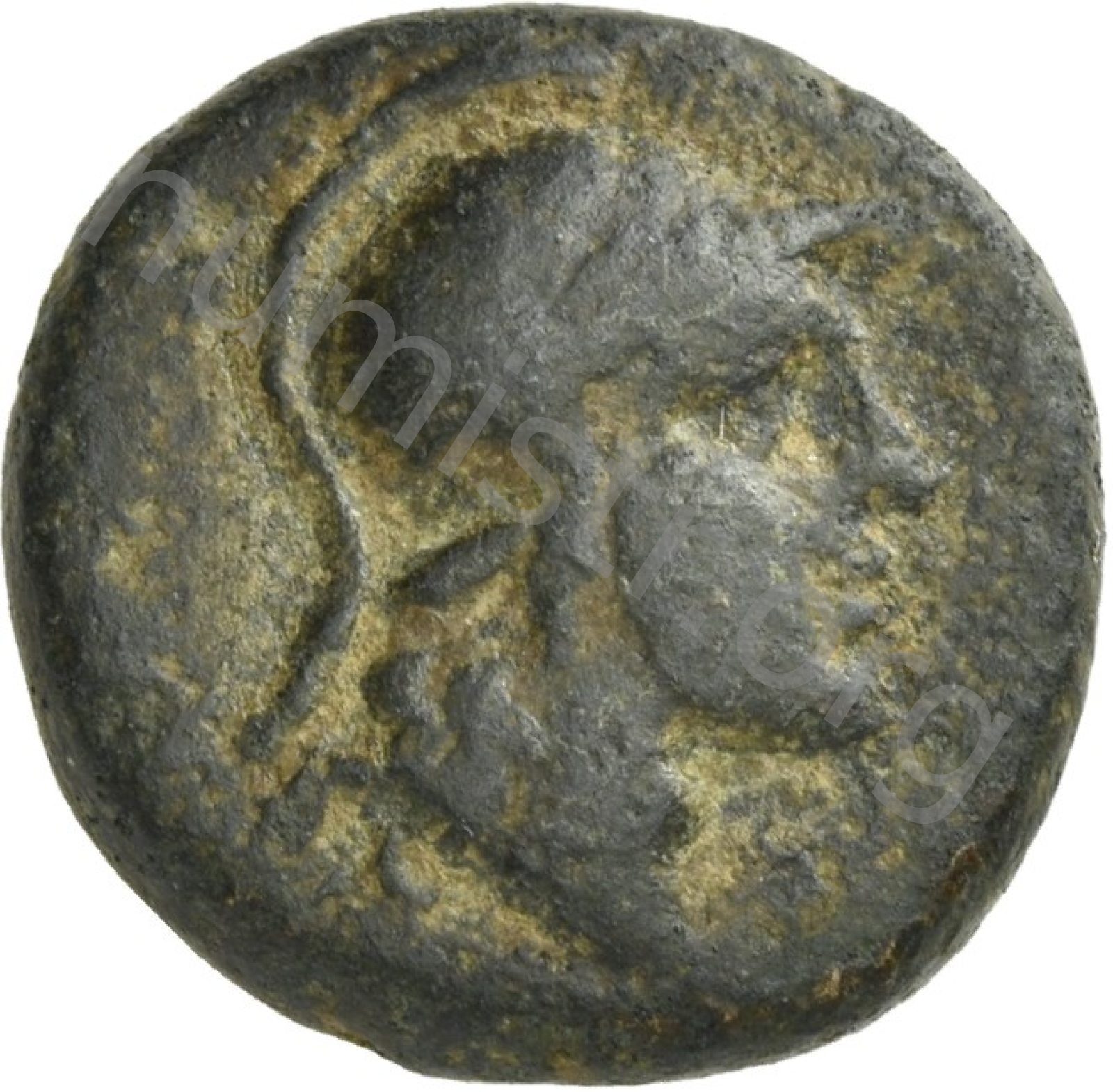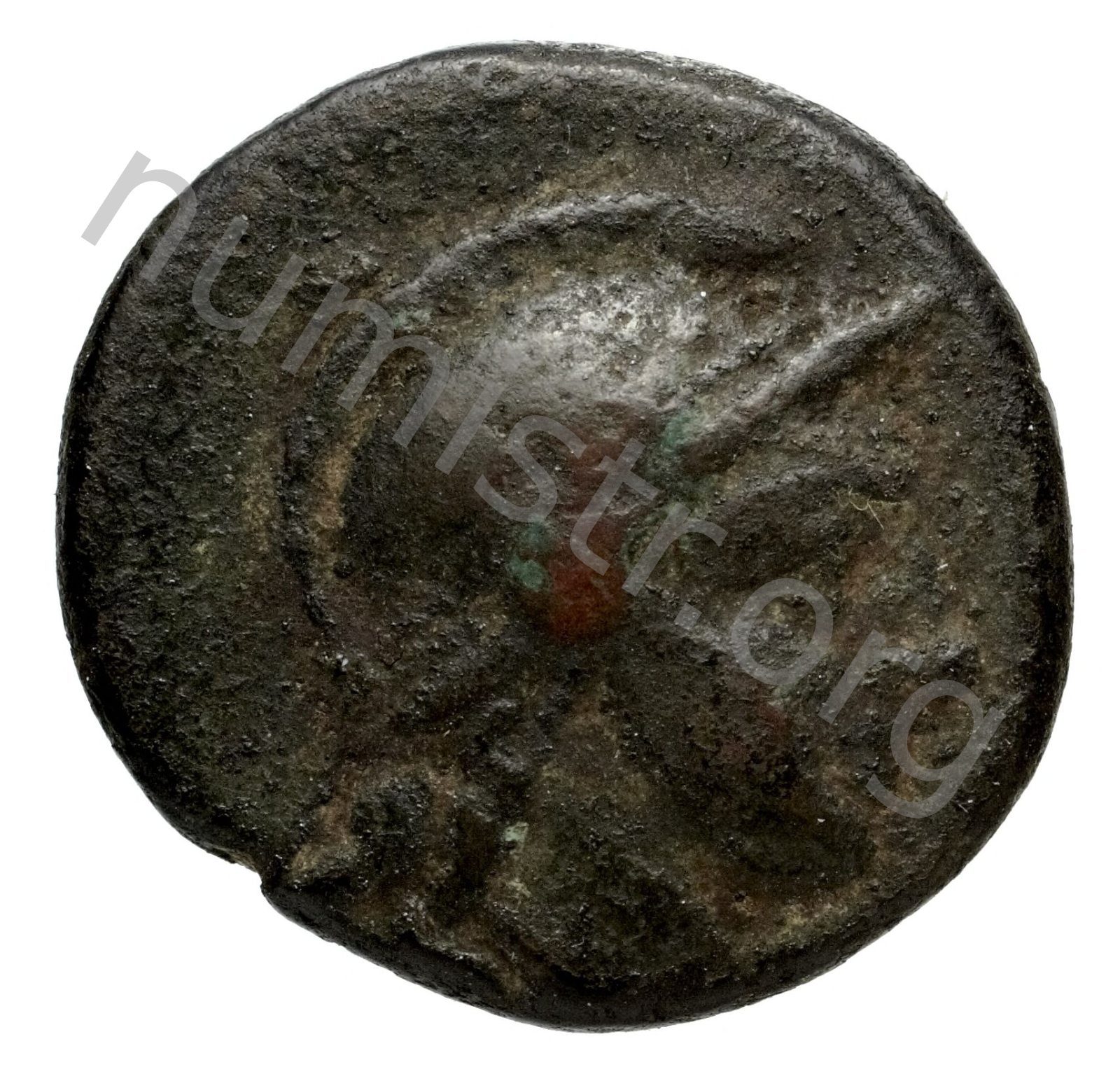 Head of Ares wearing a crested helmet -[en]