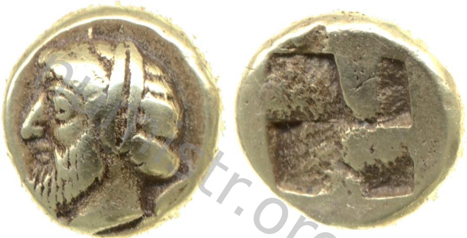 Male head (Midas?) bearded with donkey-ear; seal -[en]