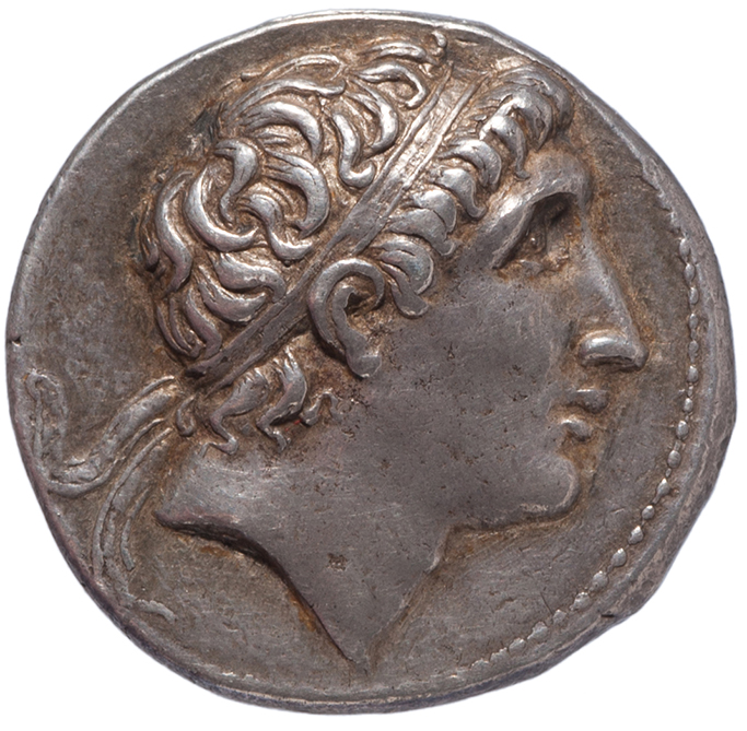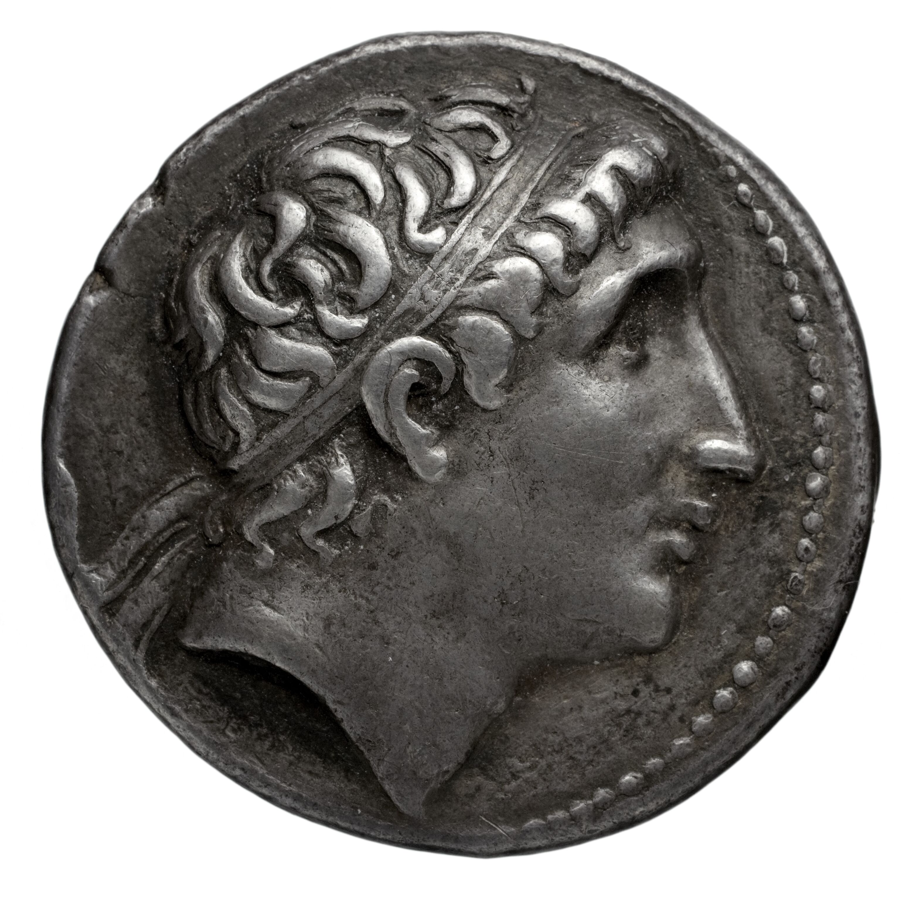 Antiochus I'in taçlı başı sağda gençleştirilmiş