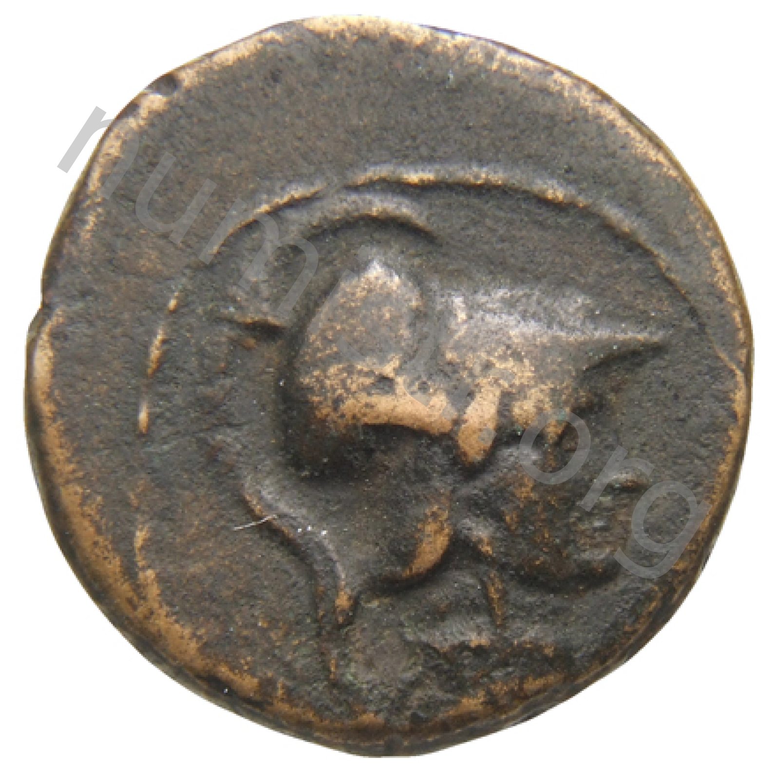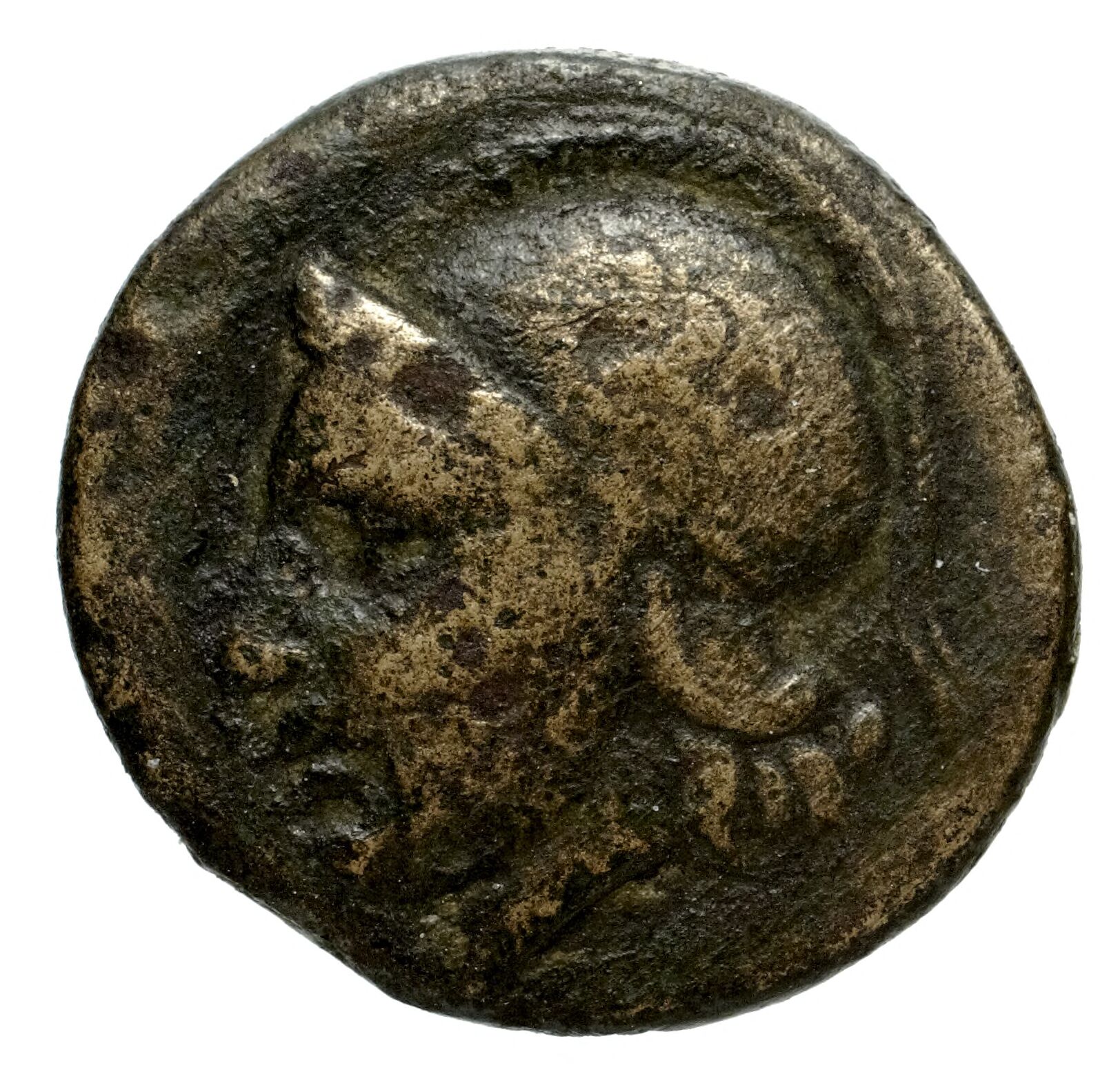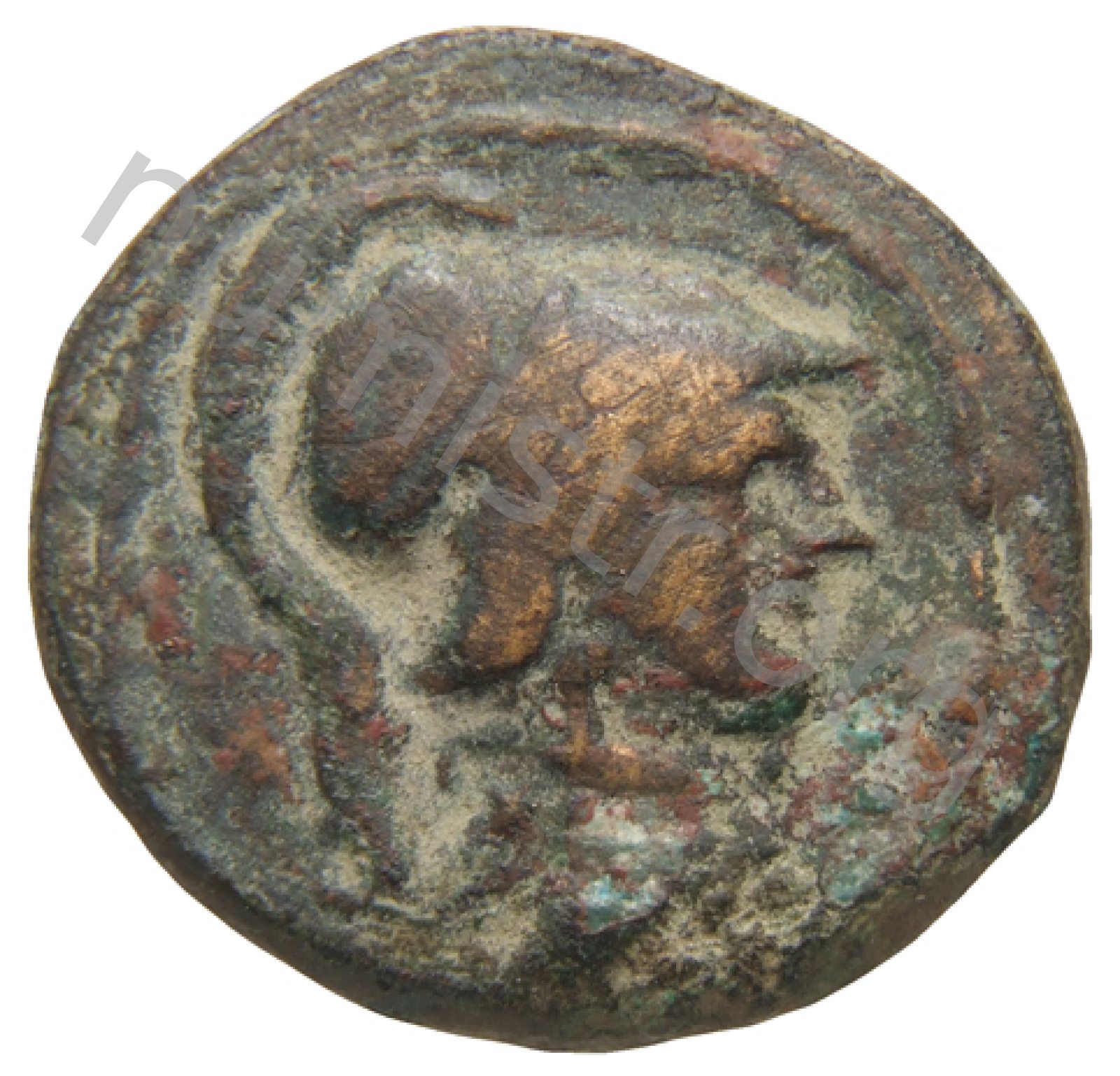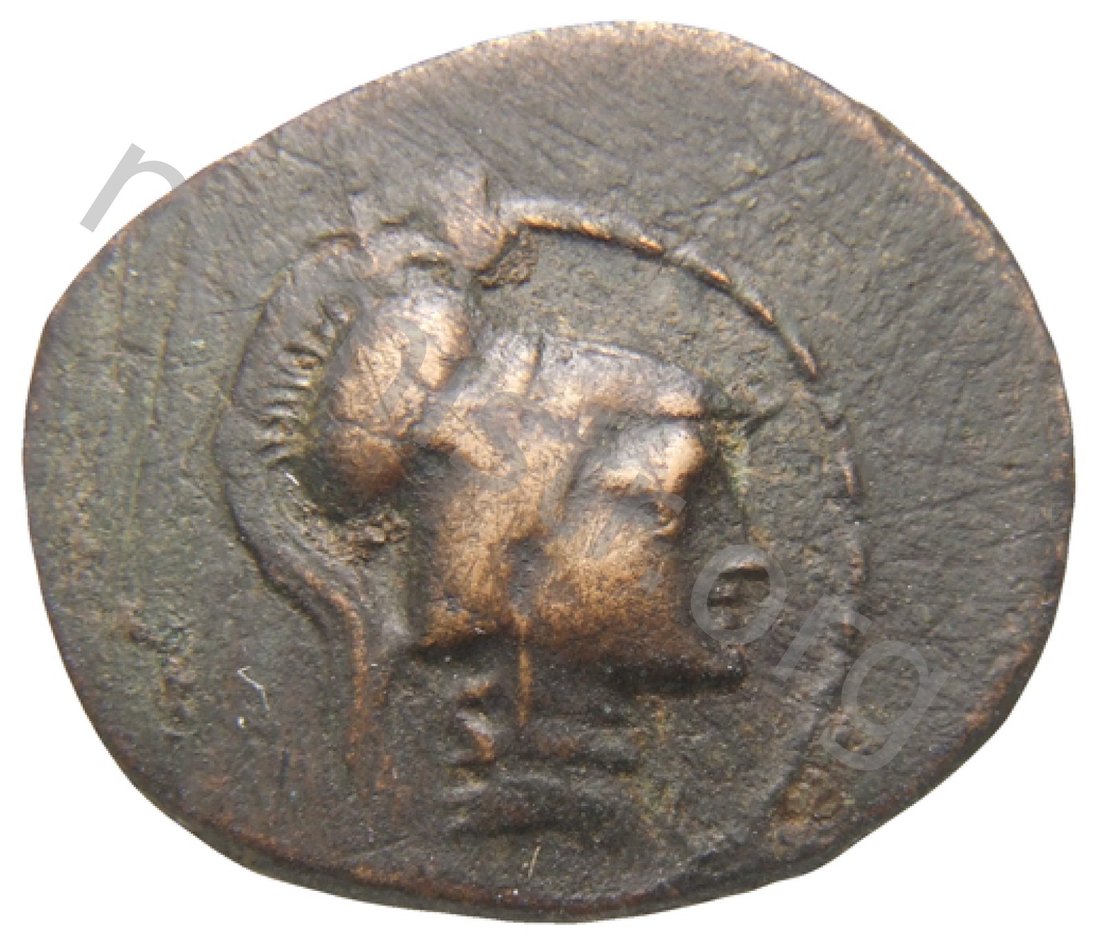 Head of Athena wearing a crested Corinthian helmet -[en]