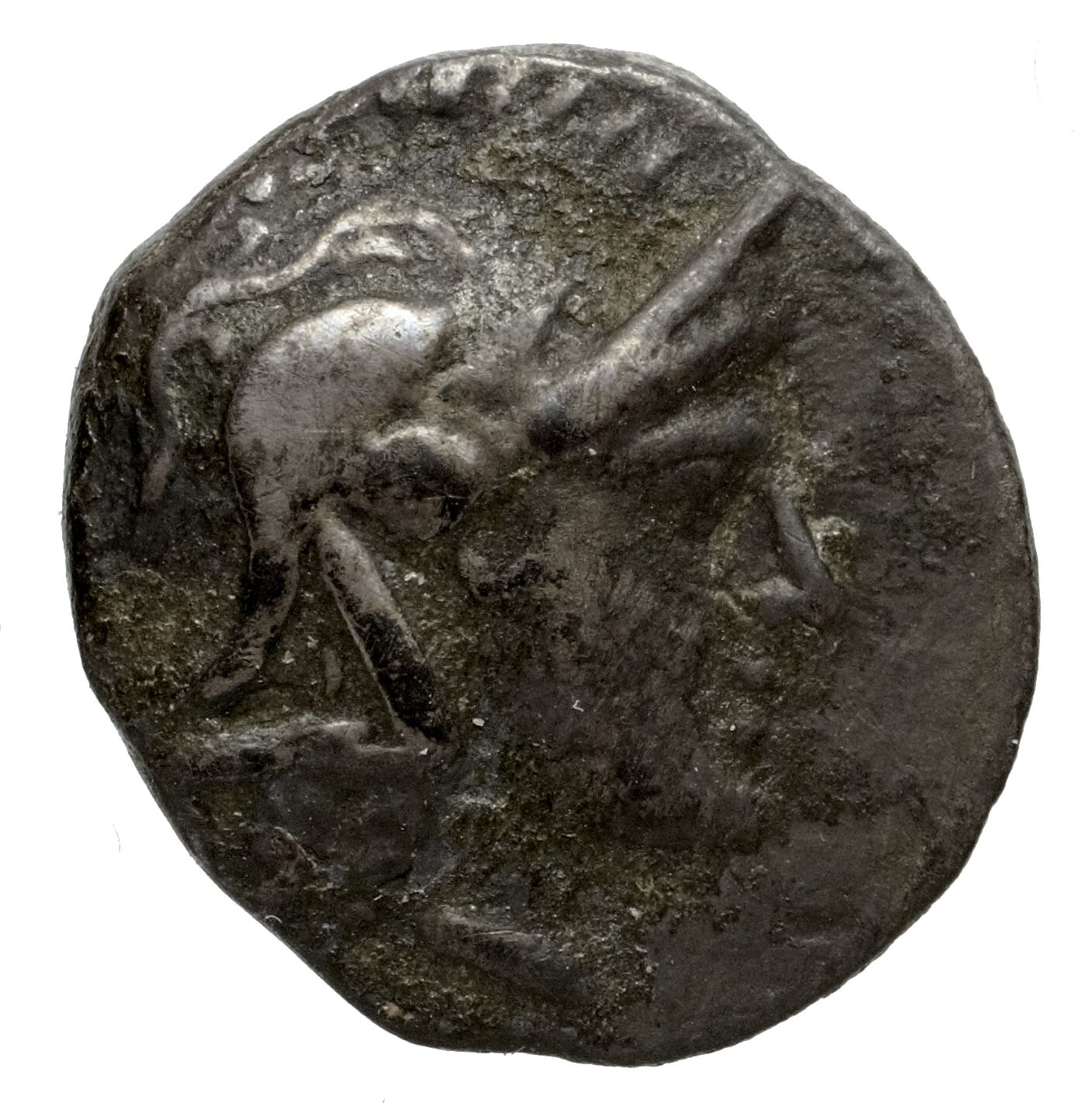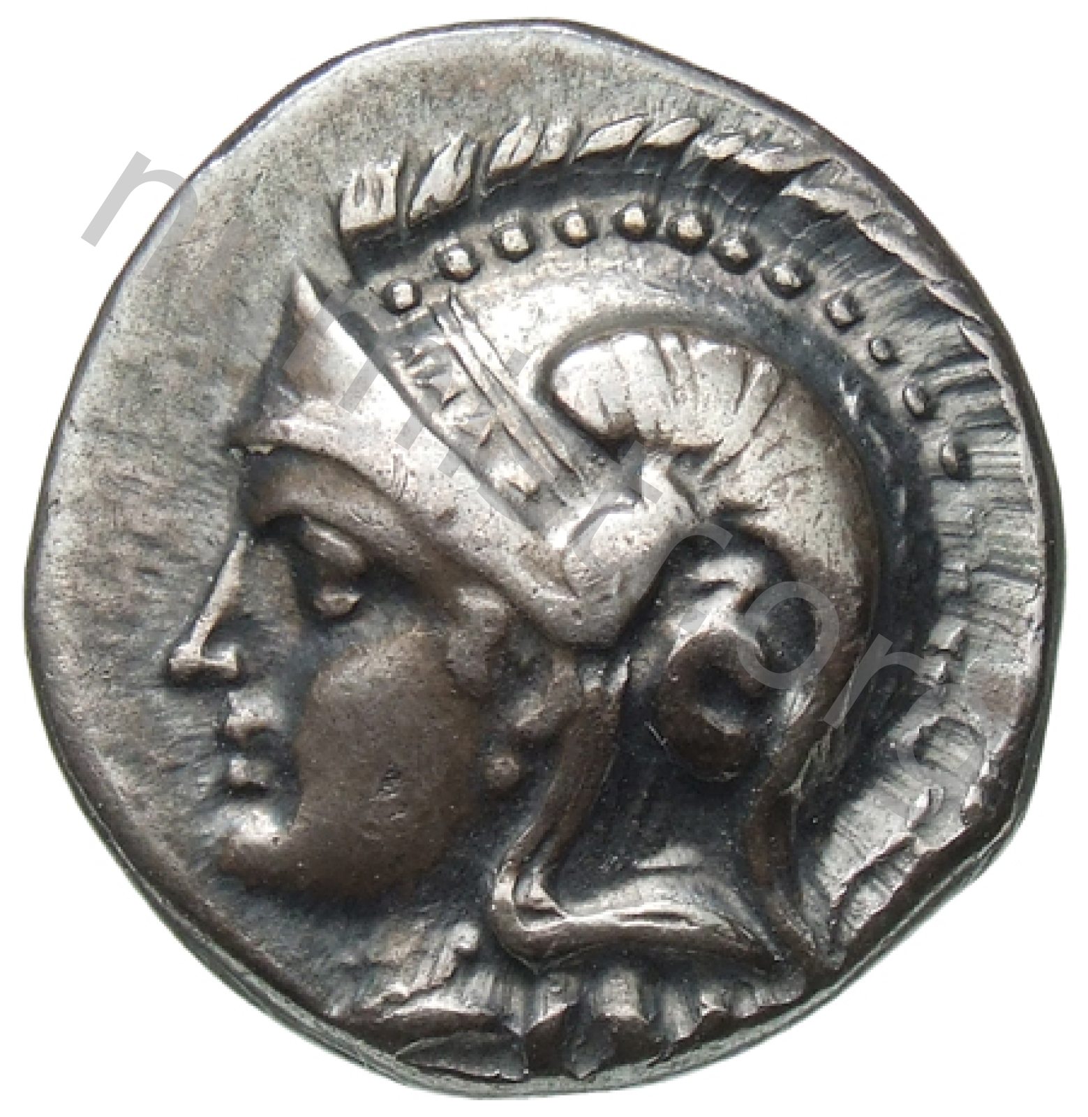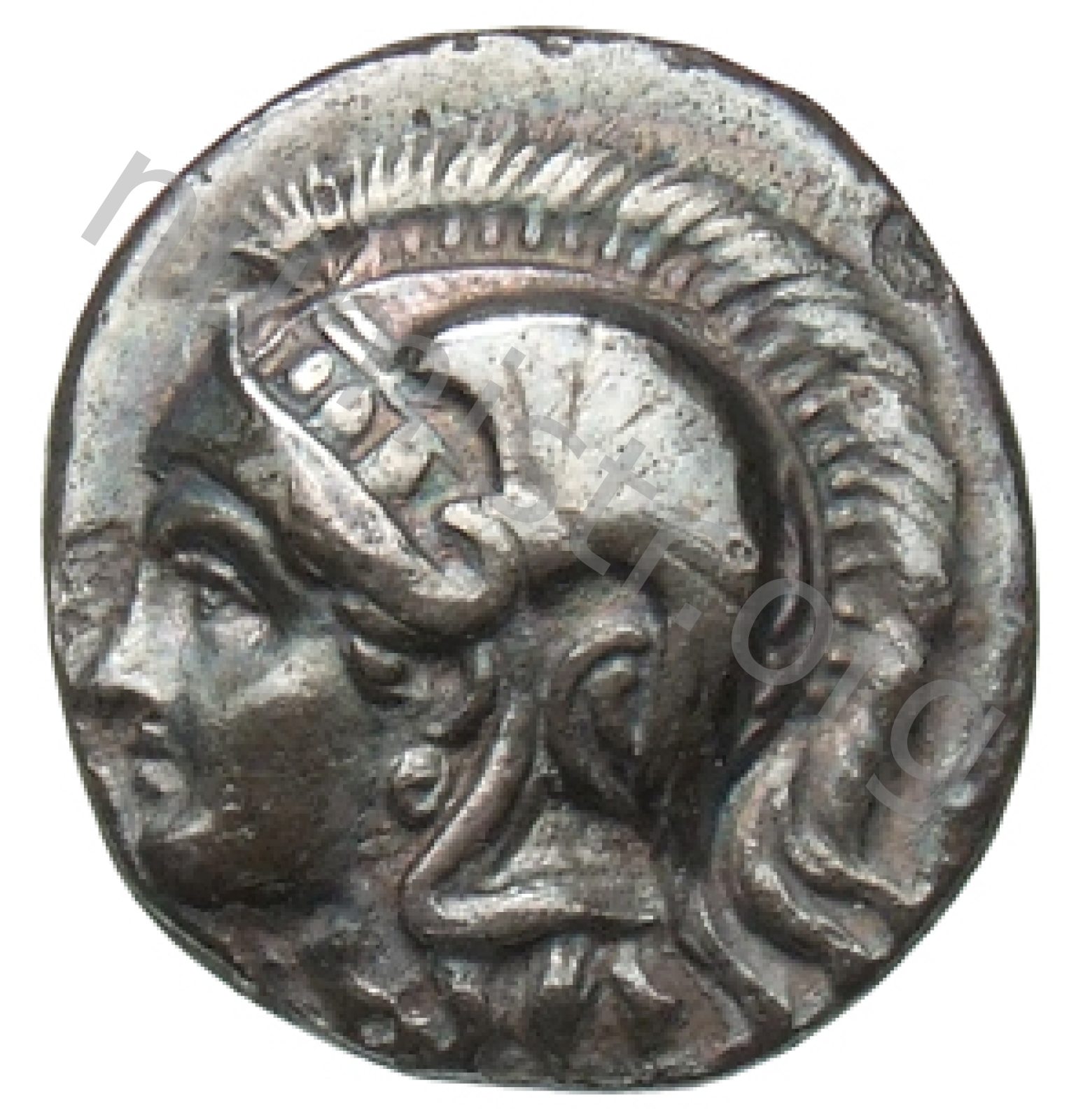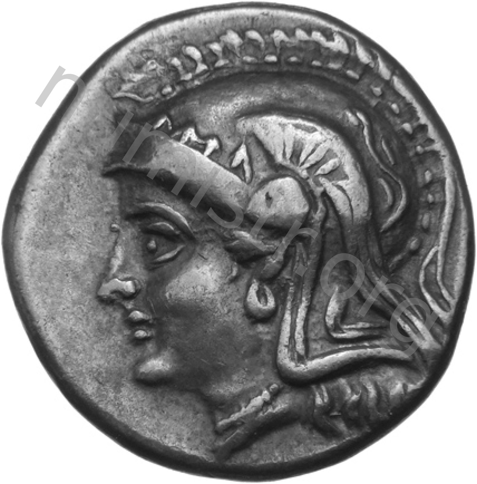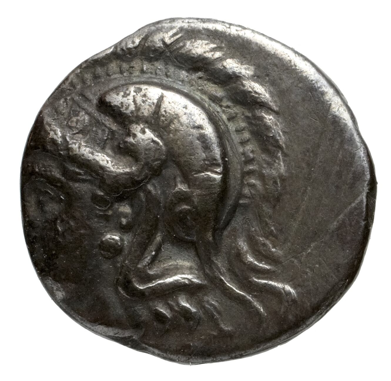 Tepeli bir Attika miğferi takan Athena'nın başı