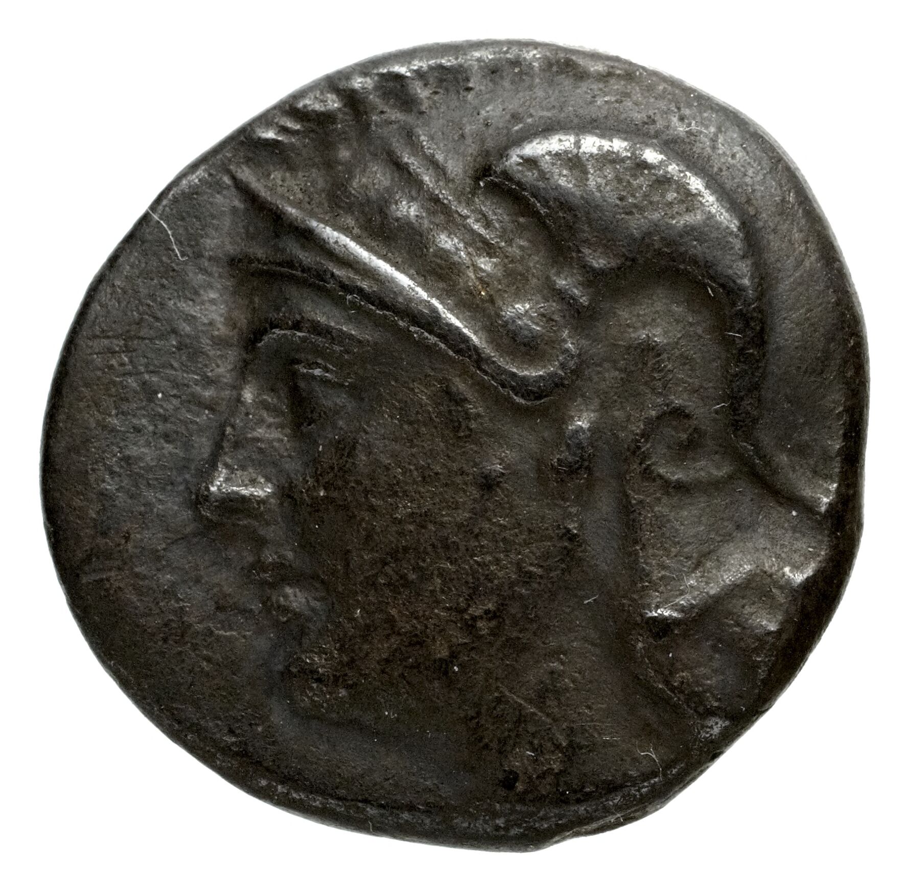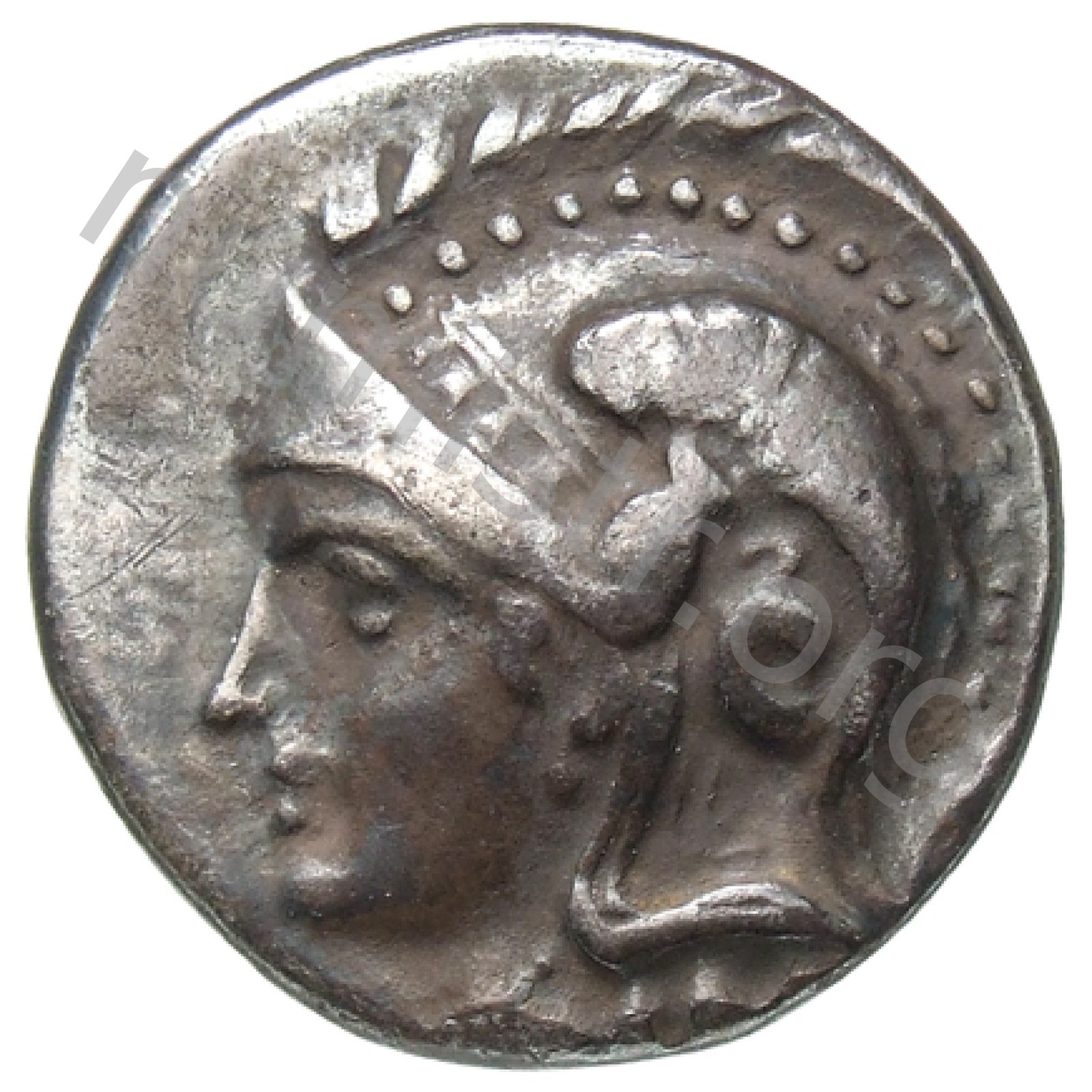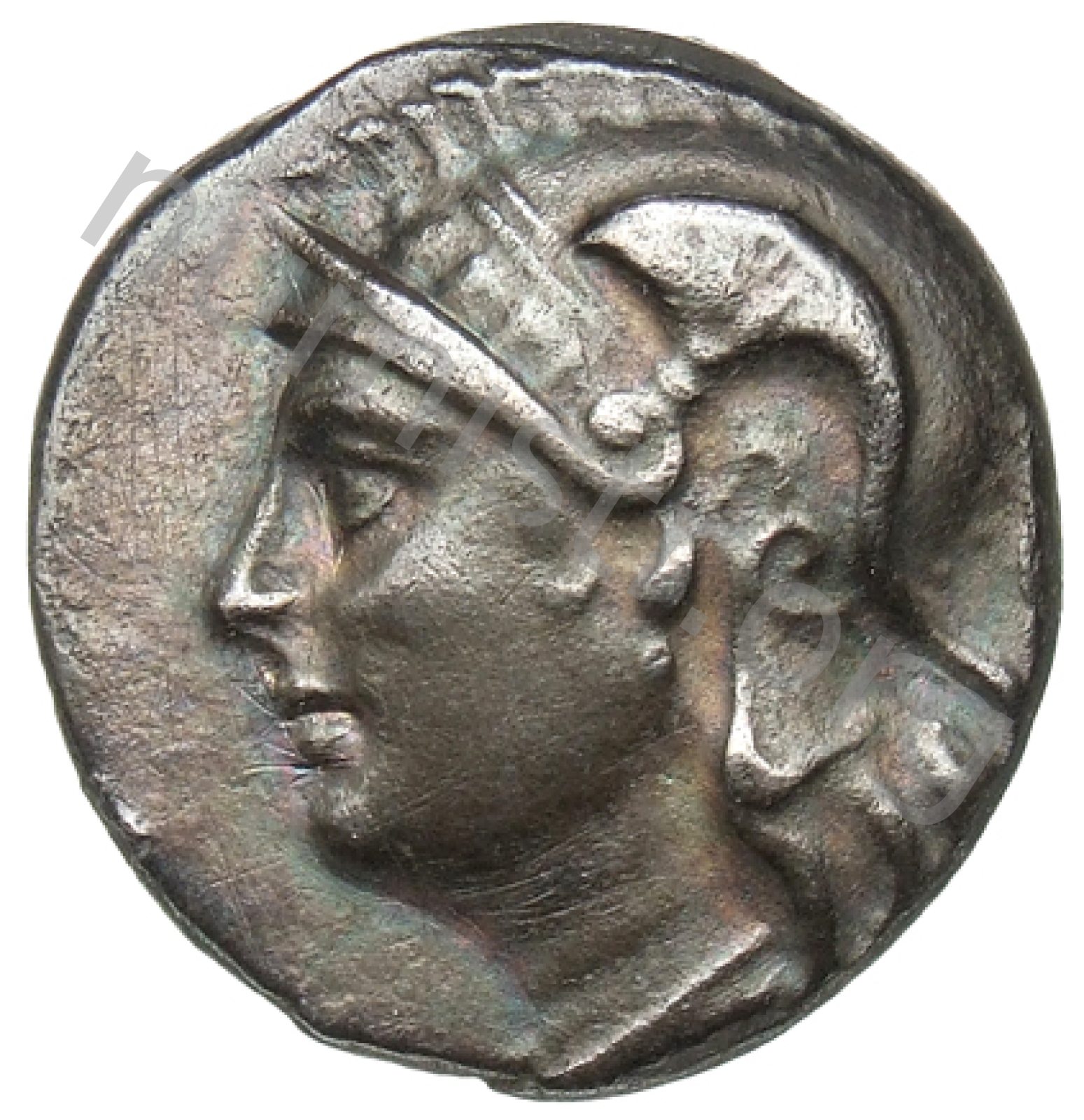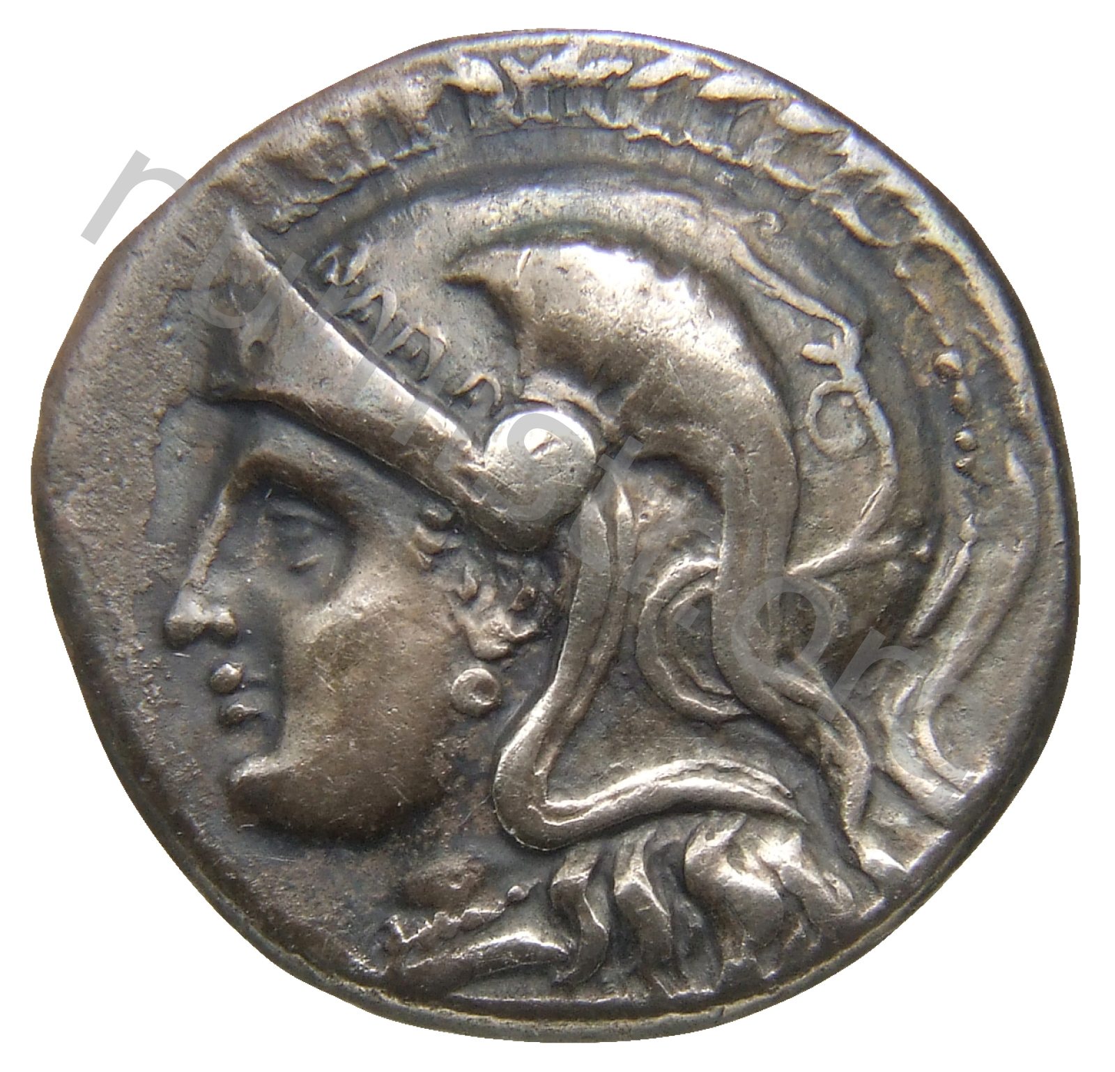 Tepeli bir Attika miğferi takan Athena'nın başı