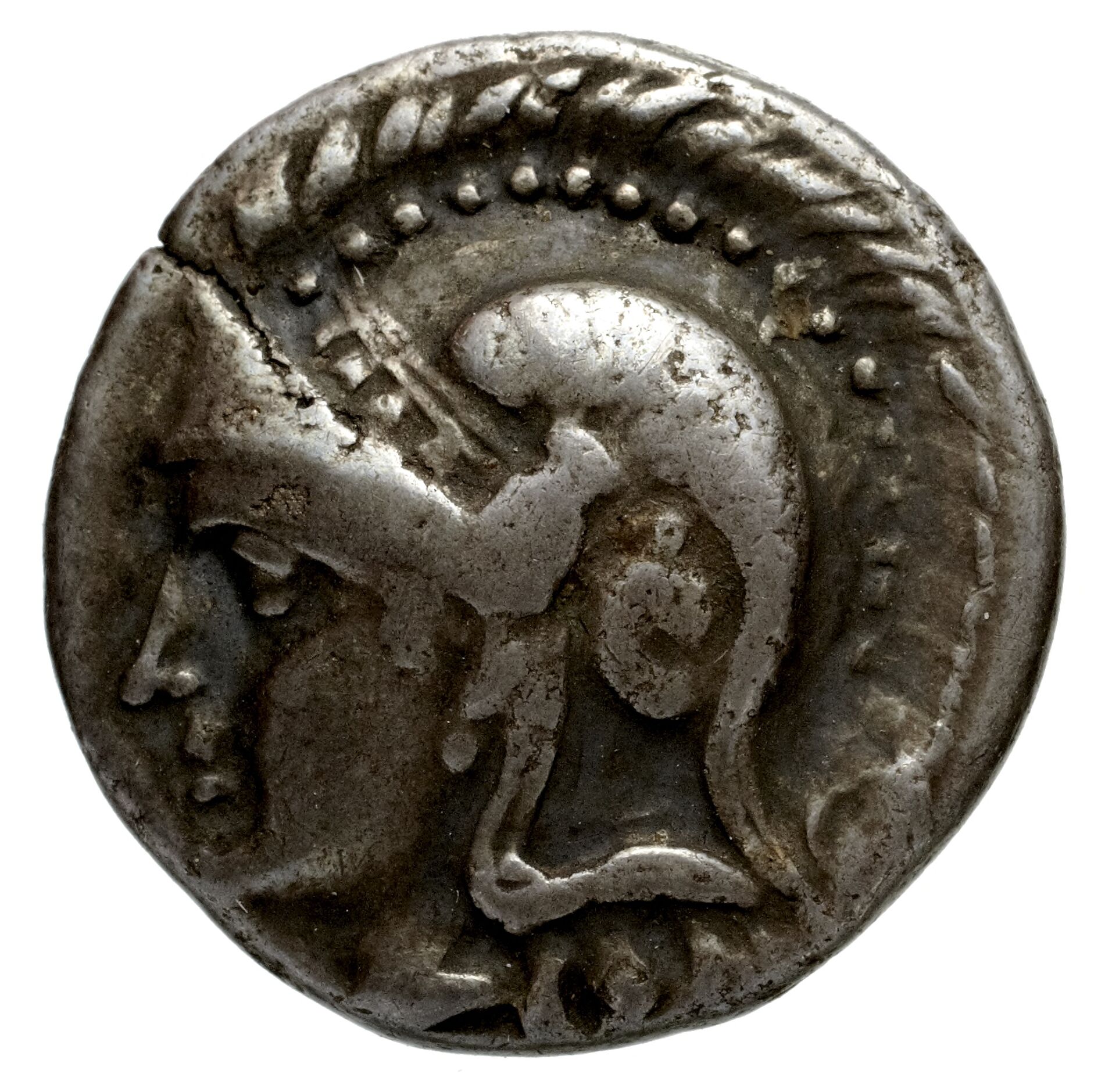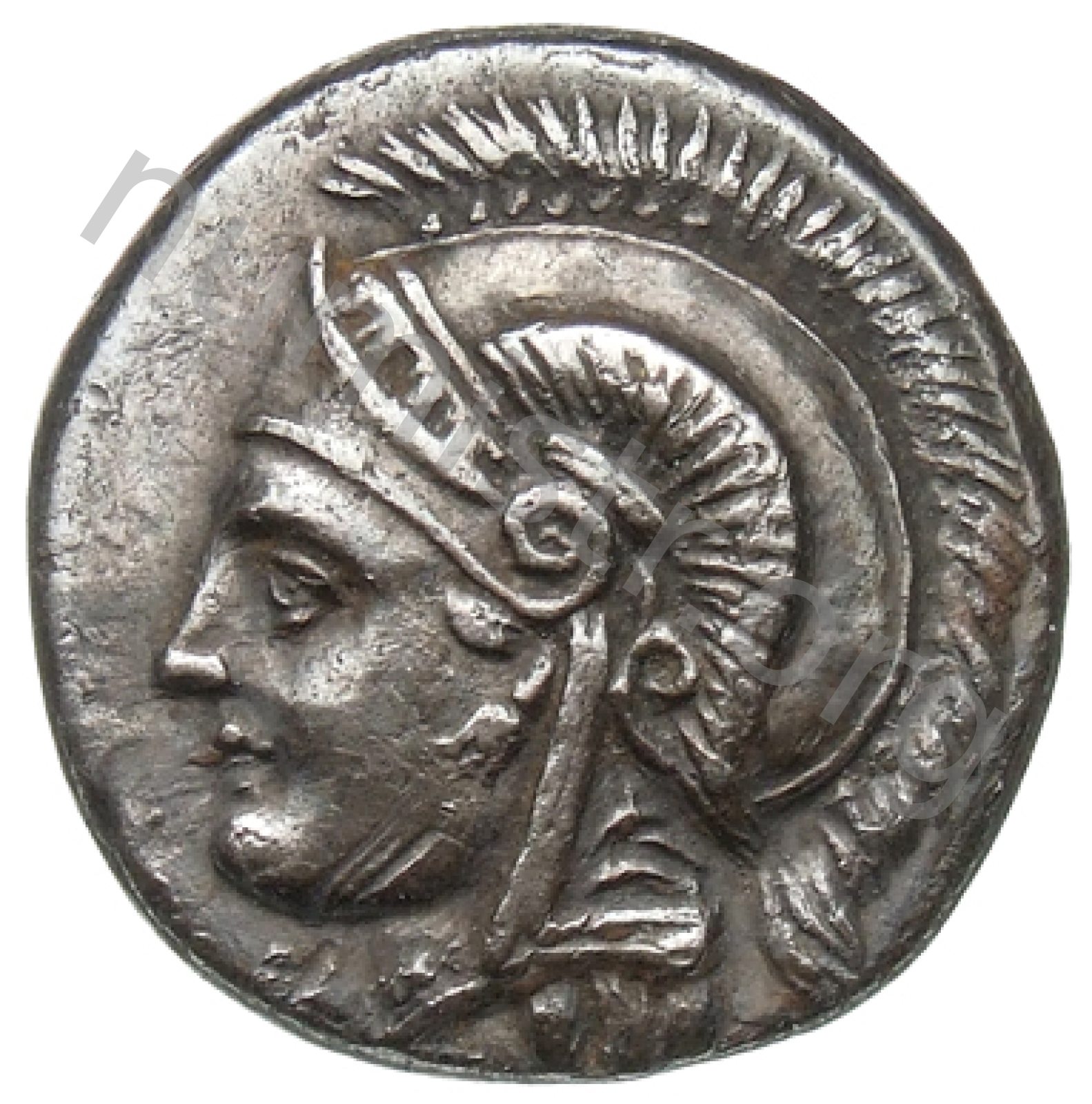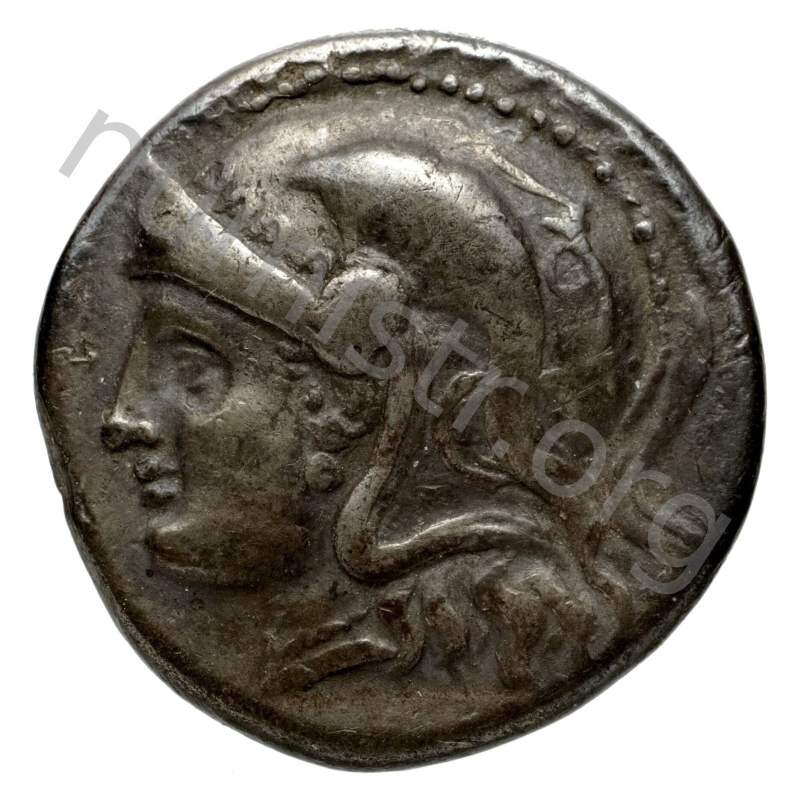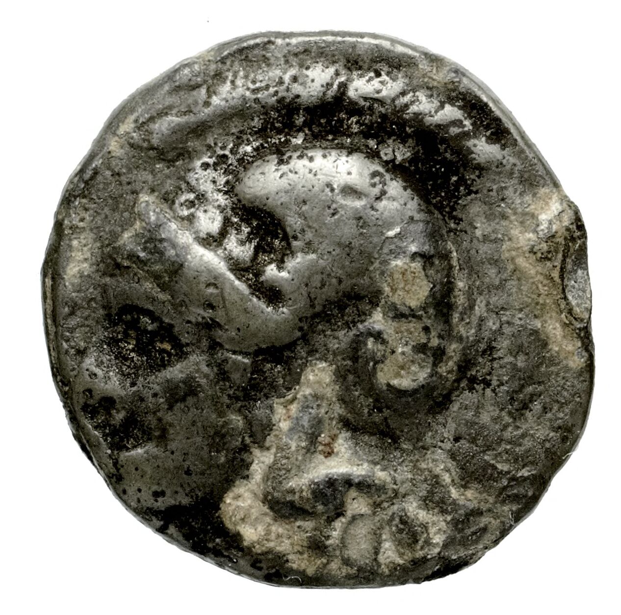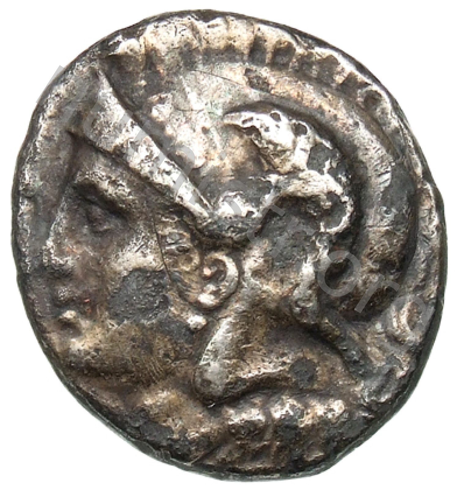 Tepeli bir Attika miğferi takan Athena'nın başı