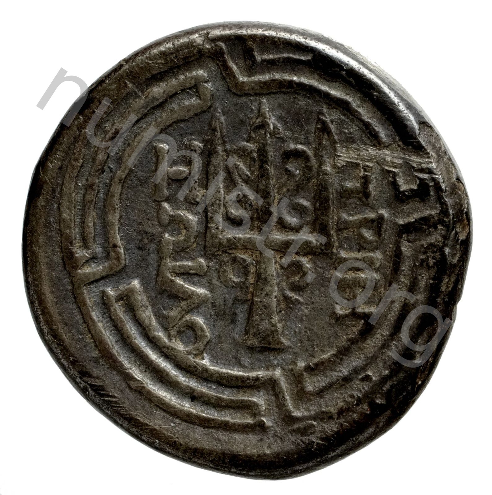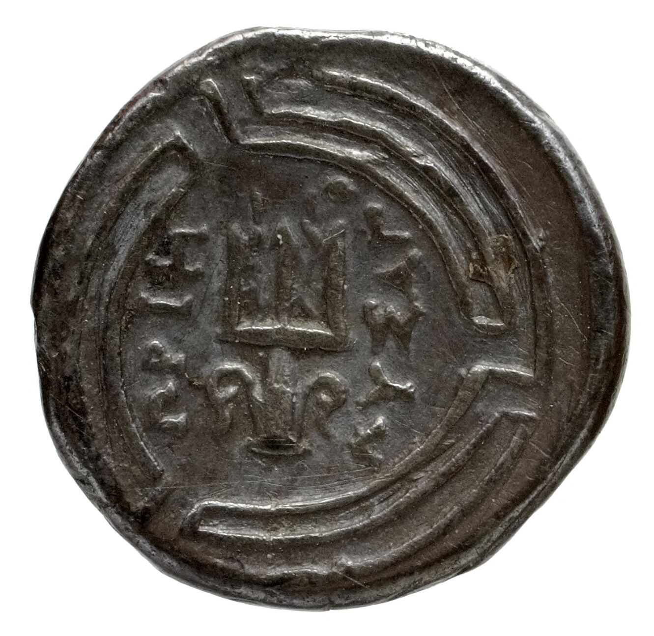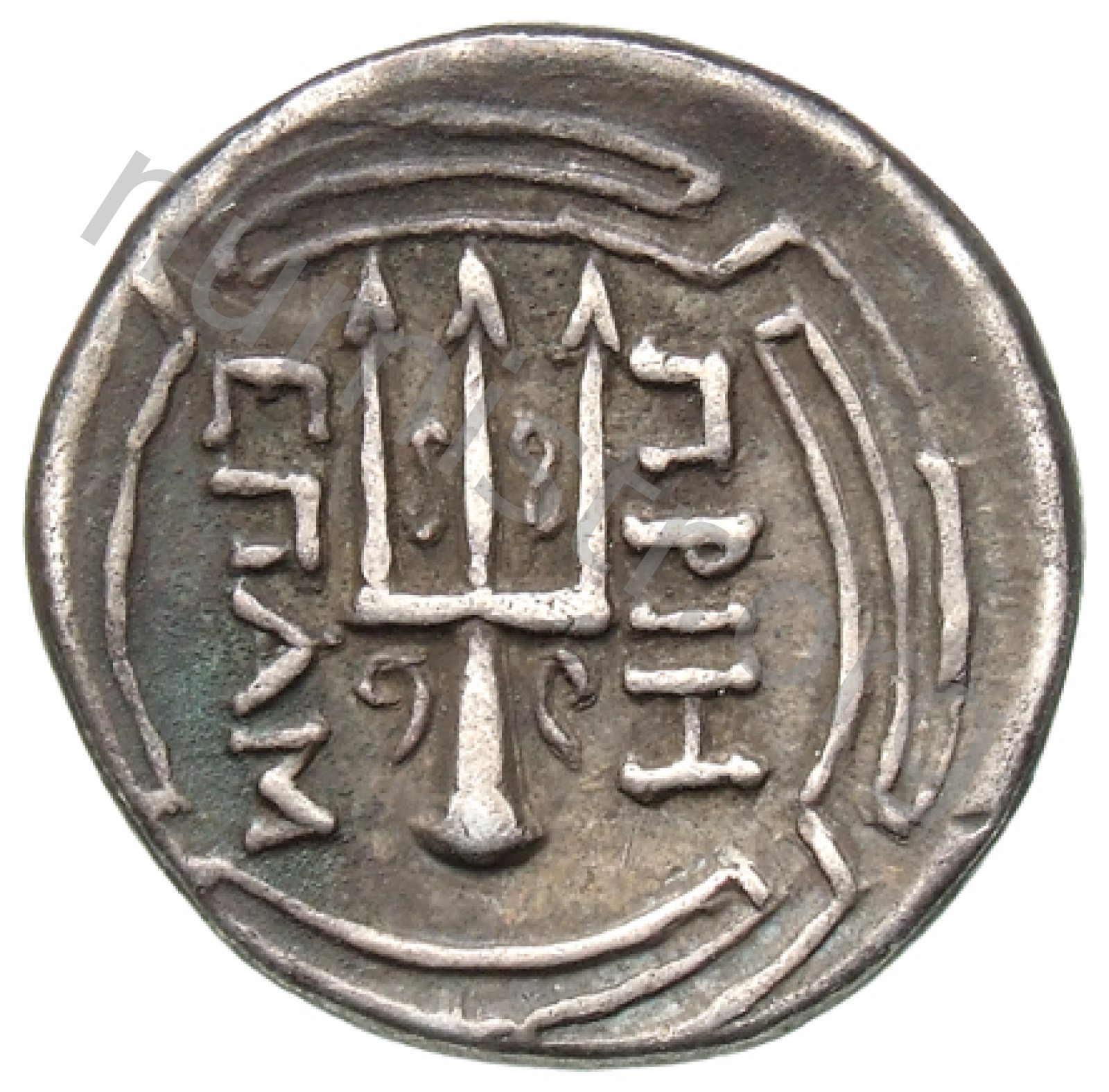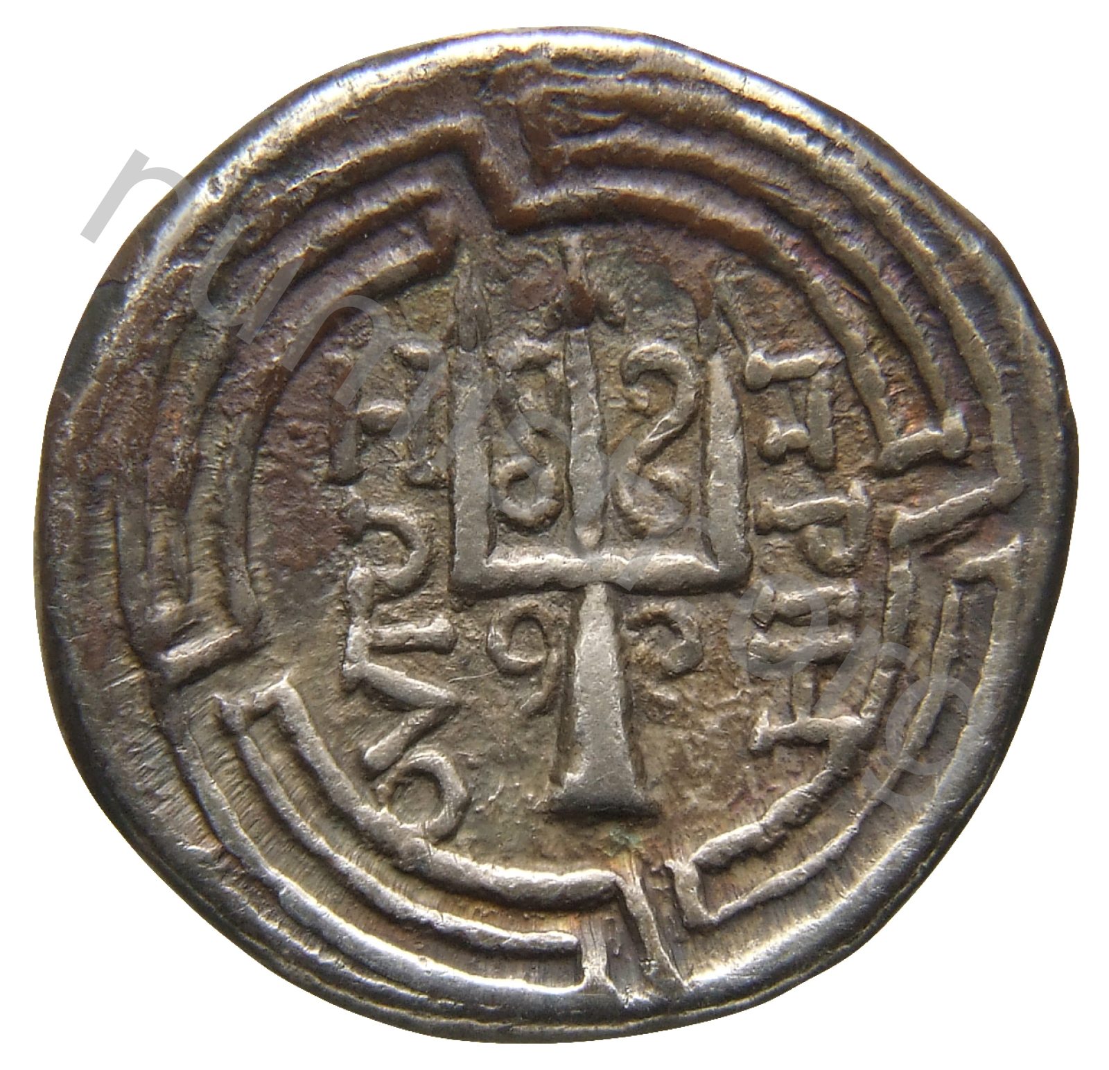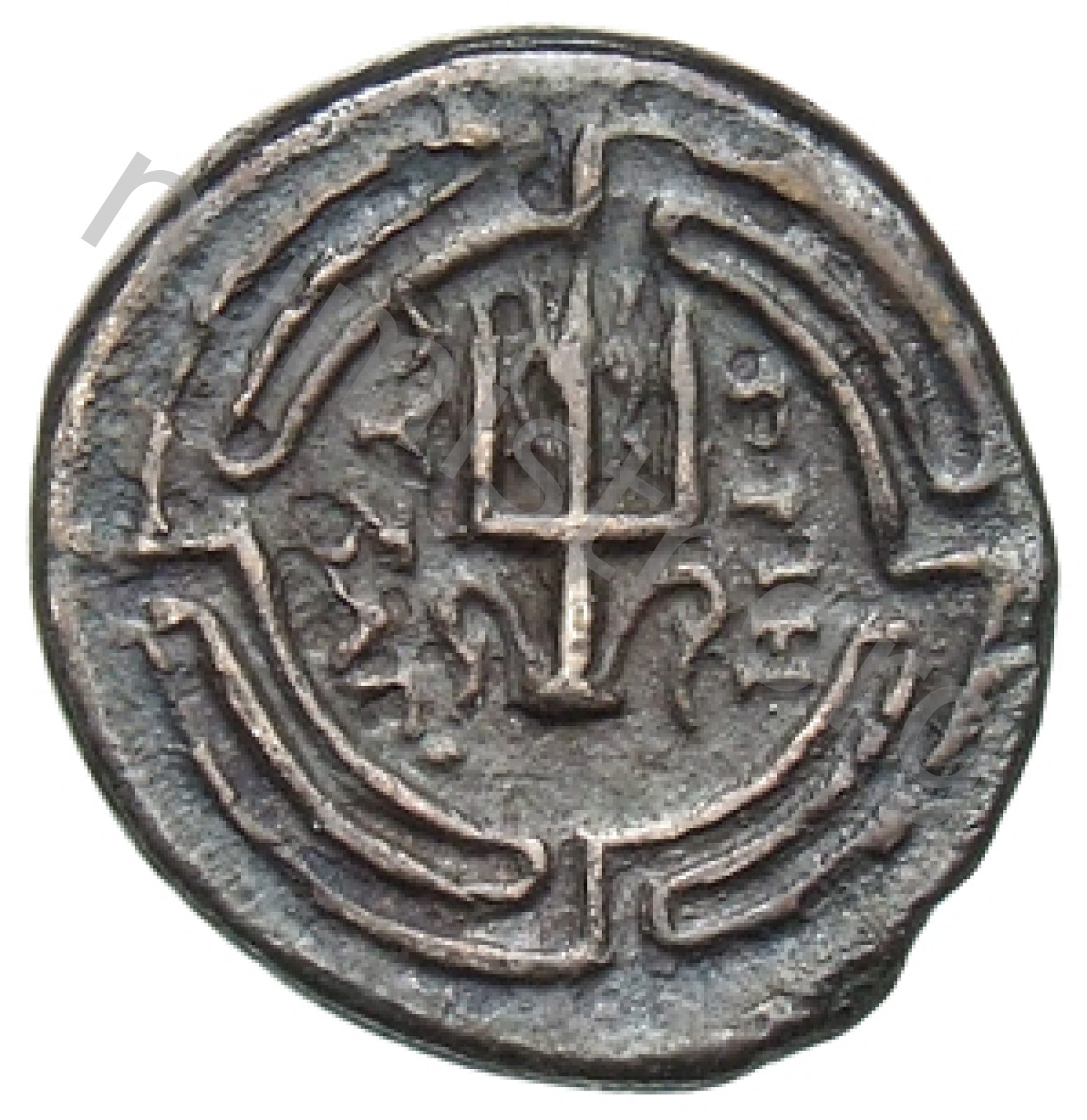 Dairesel bir kıvrım deseni içinde üç dişli ve efsane