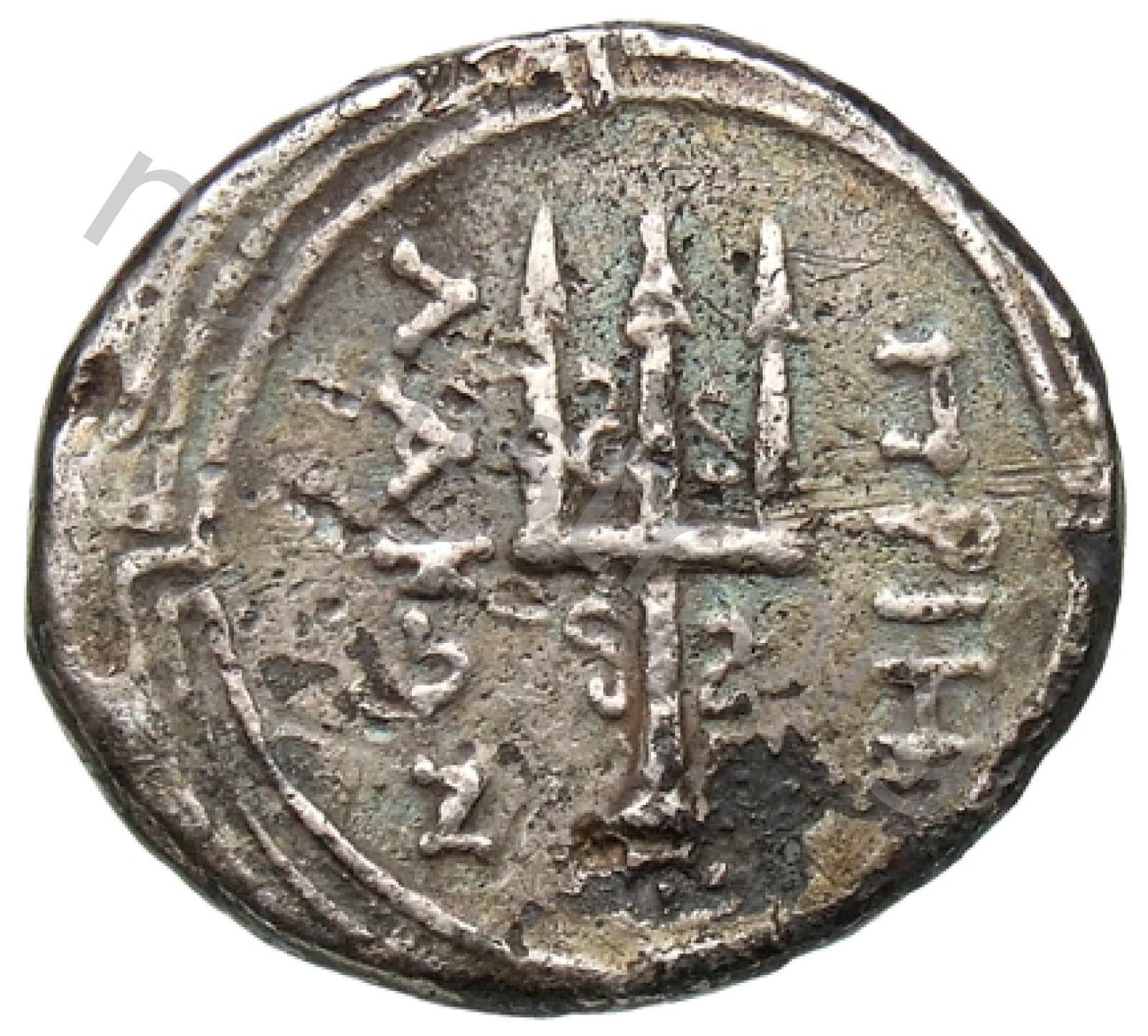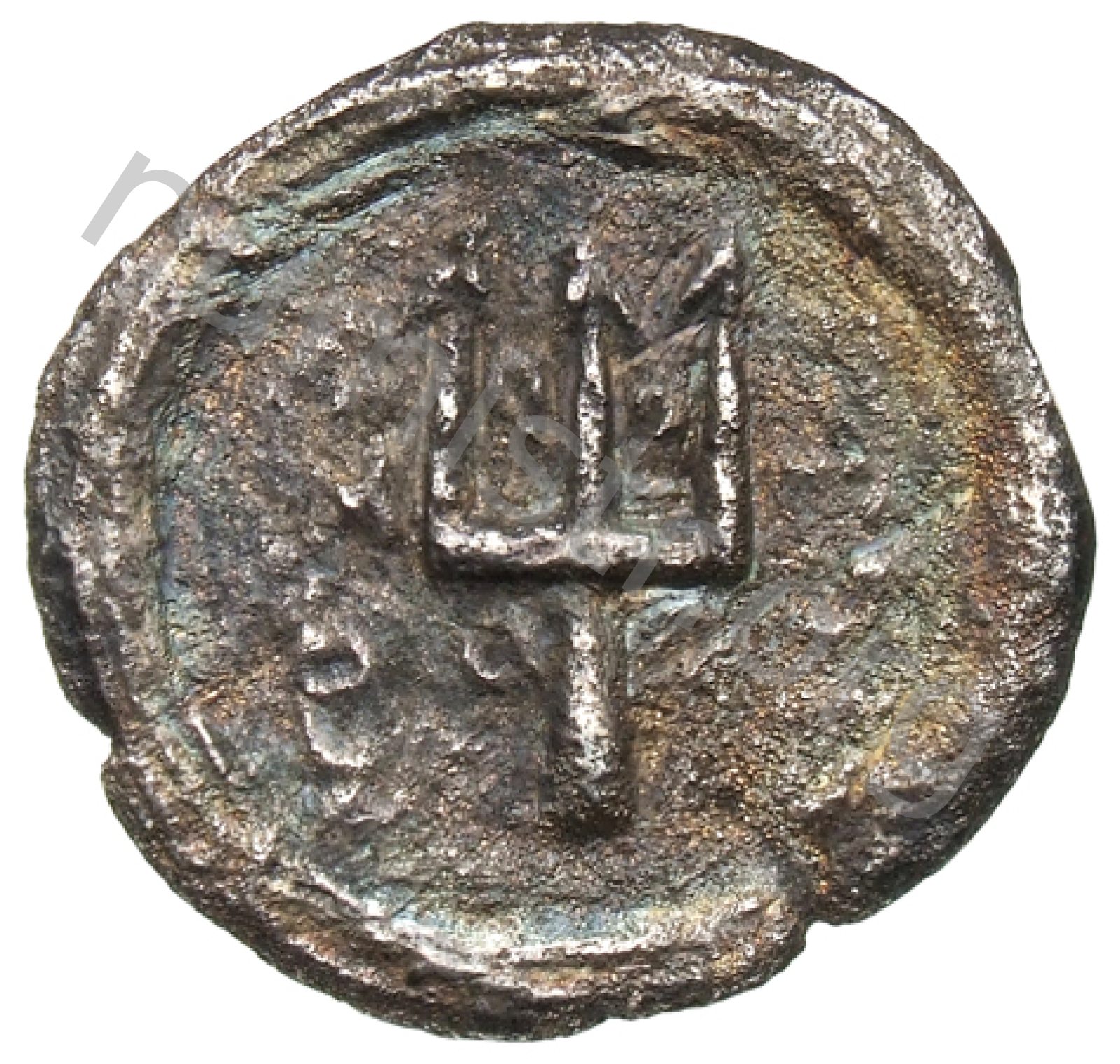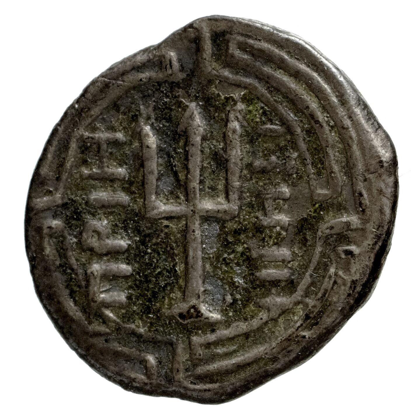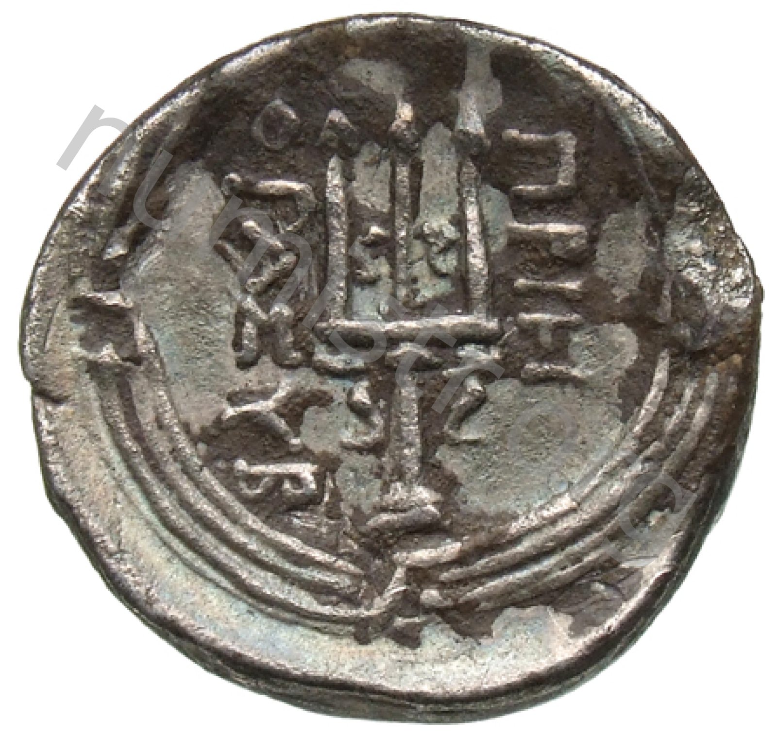 Dairesel bir kıvrım deseni içinde üç dişli ve efsane