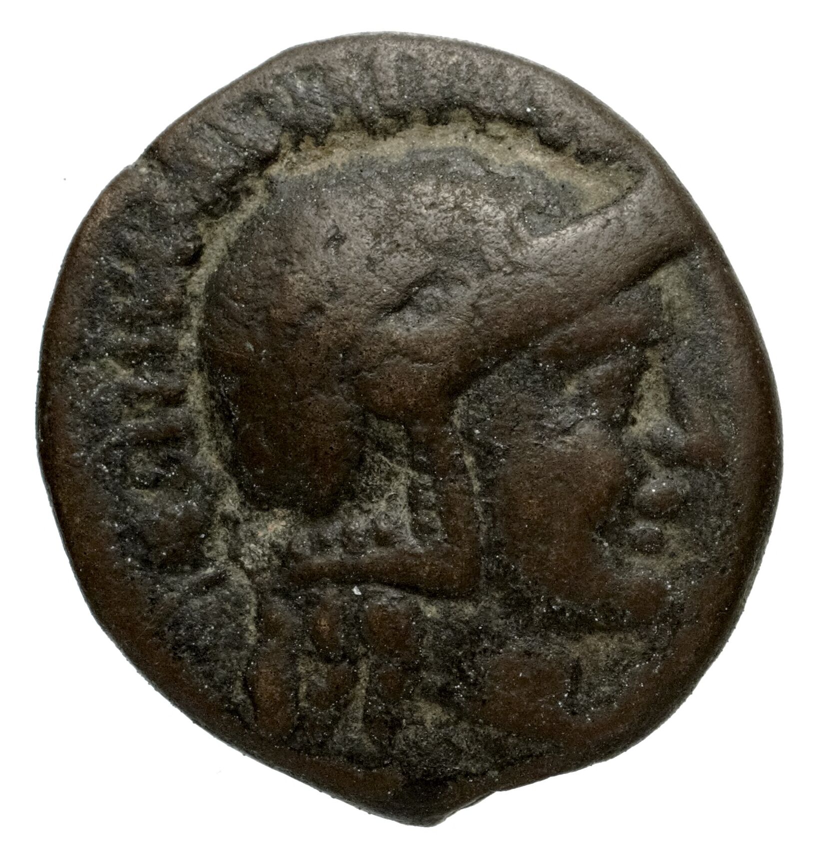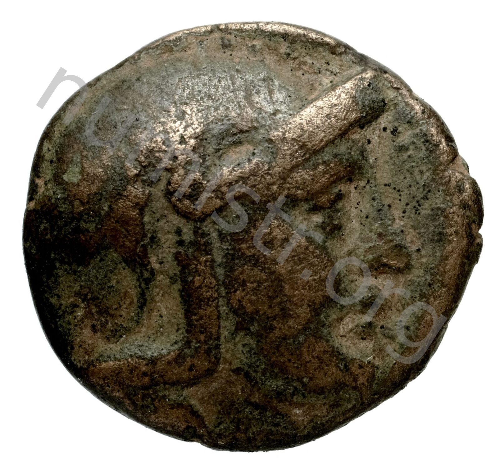 Tepeli bir Attika miğferi takan Athena'nın başı