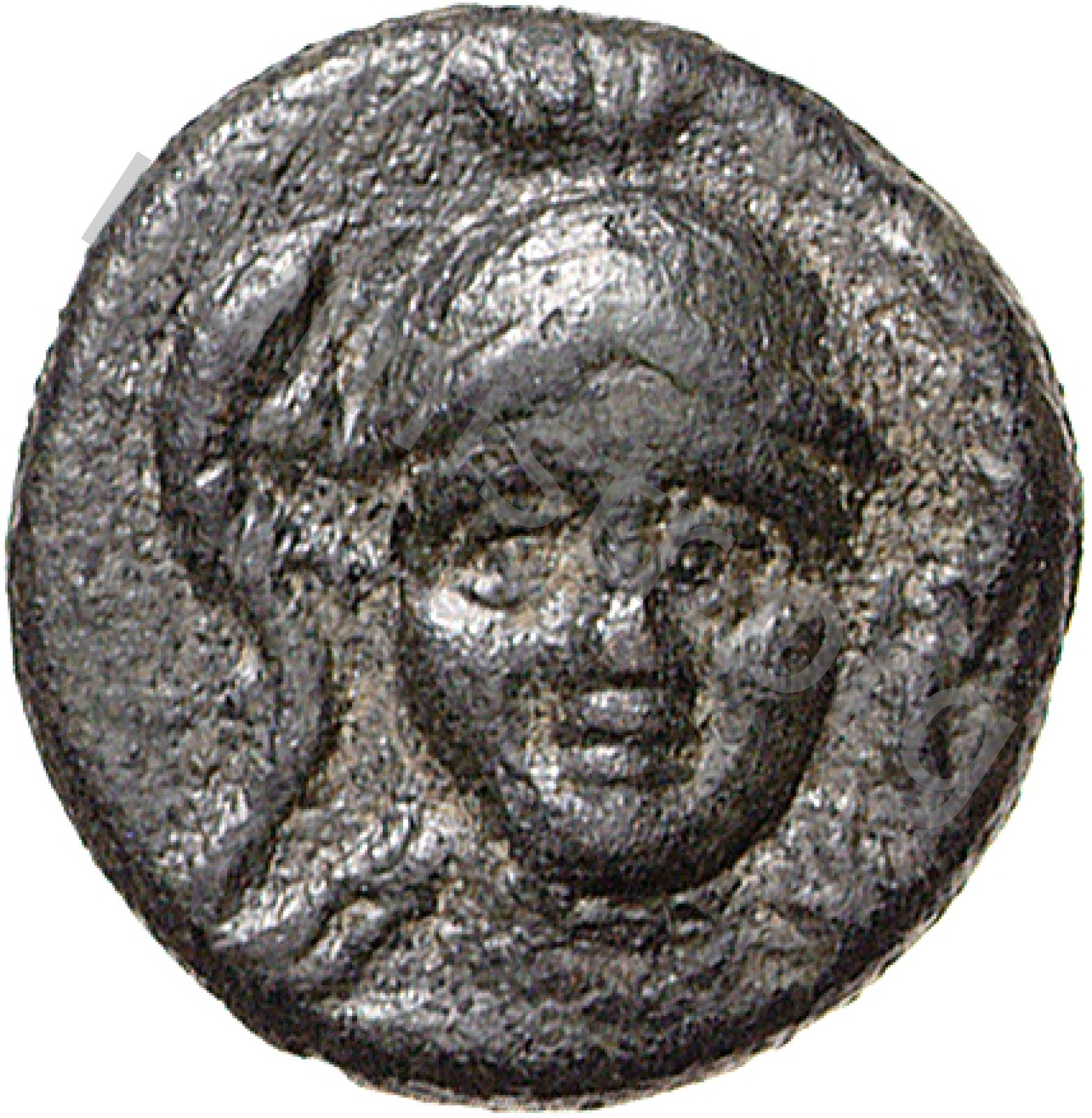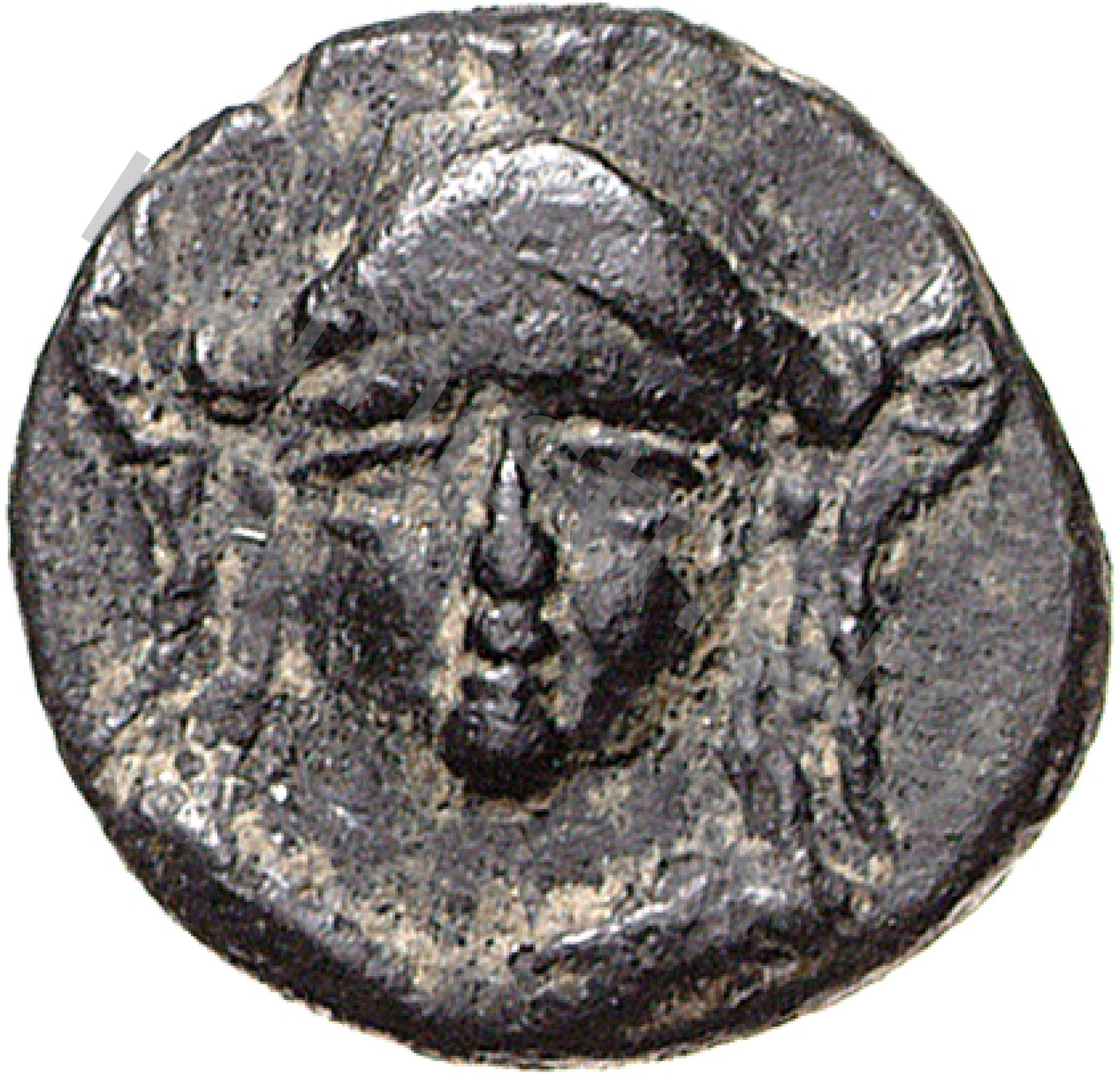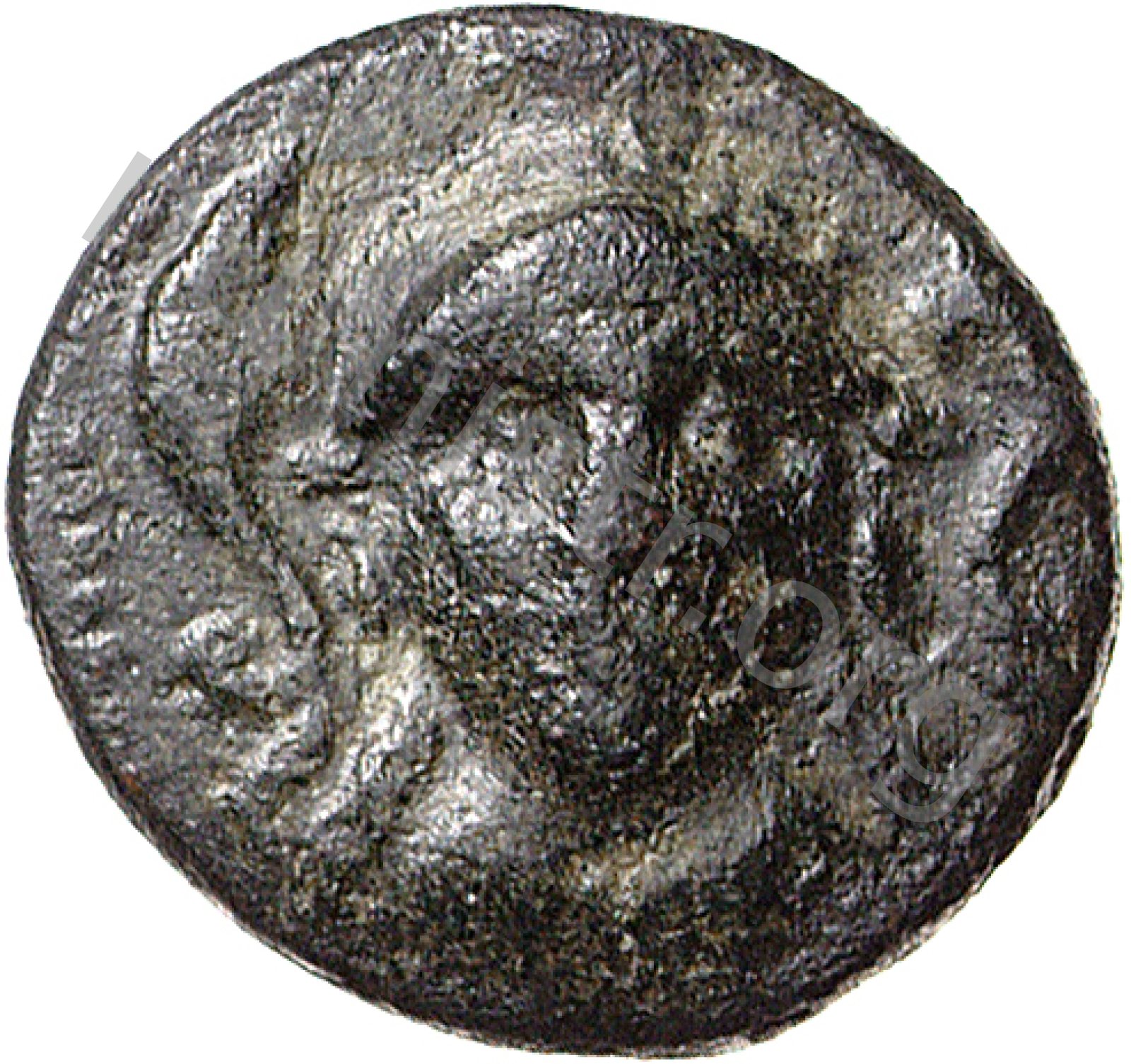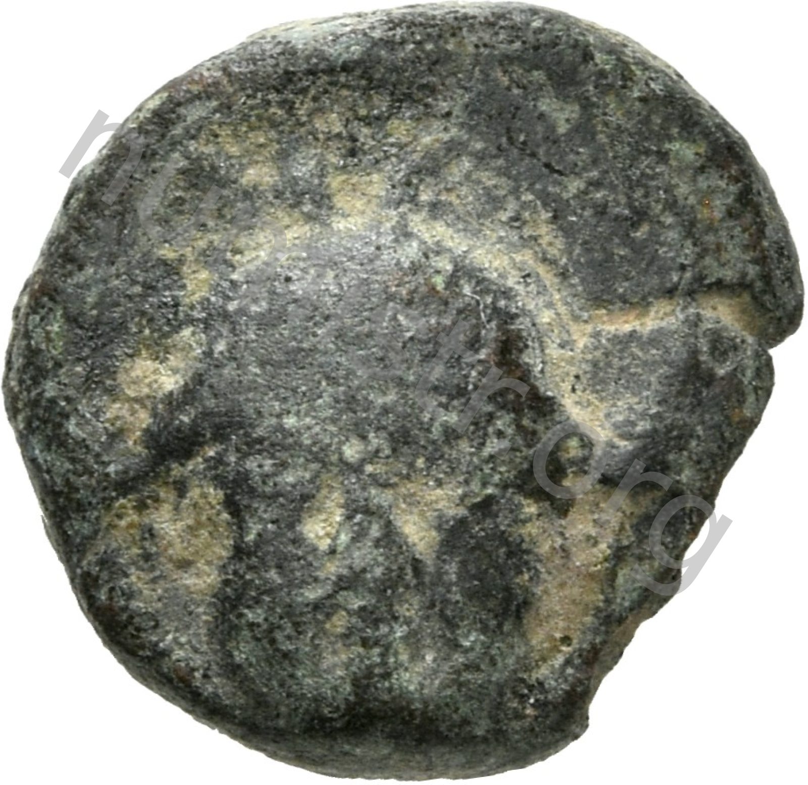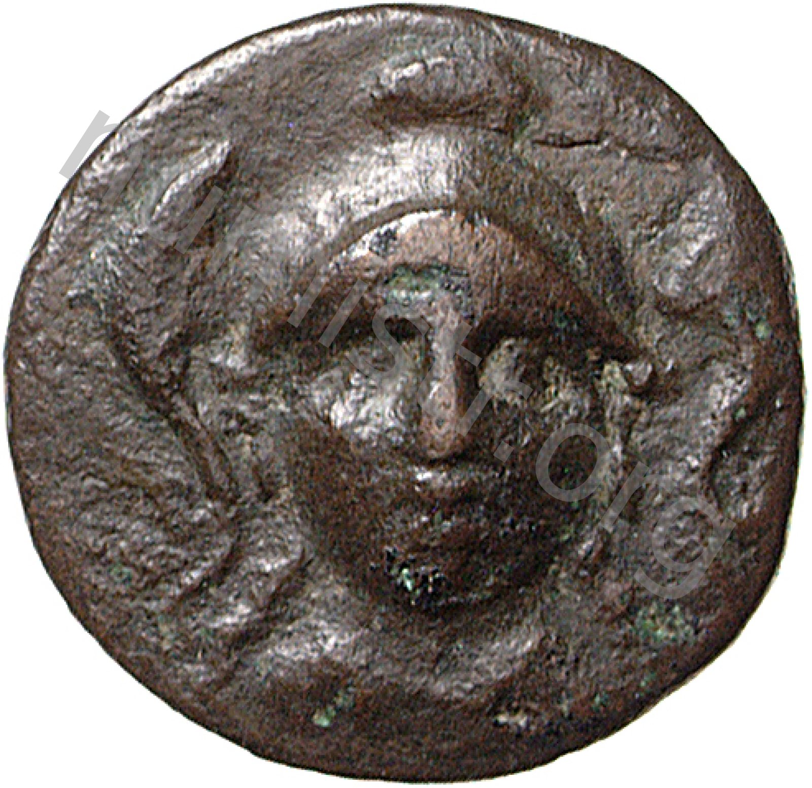 Head of Athena facing wearing a triple-crested helmet -[en]