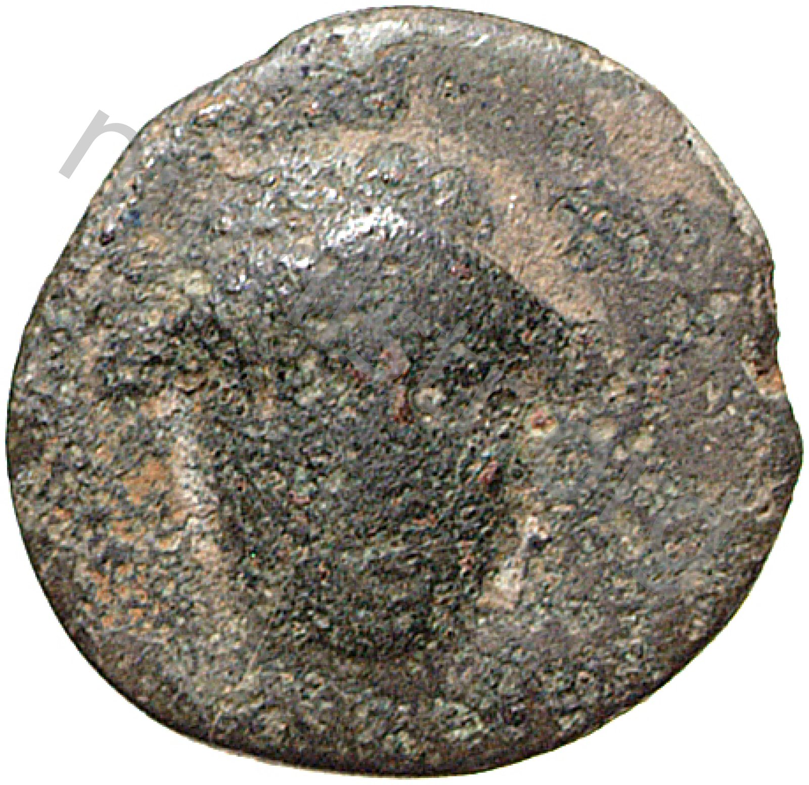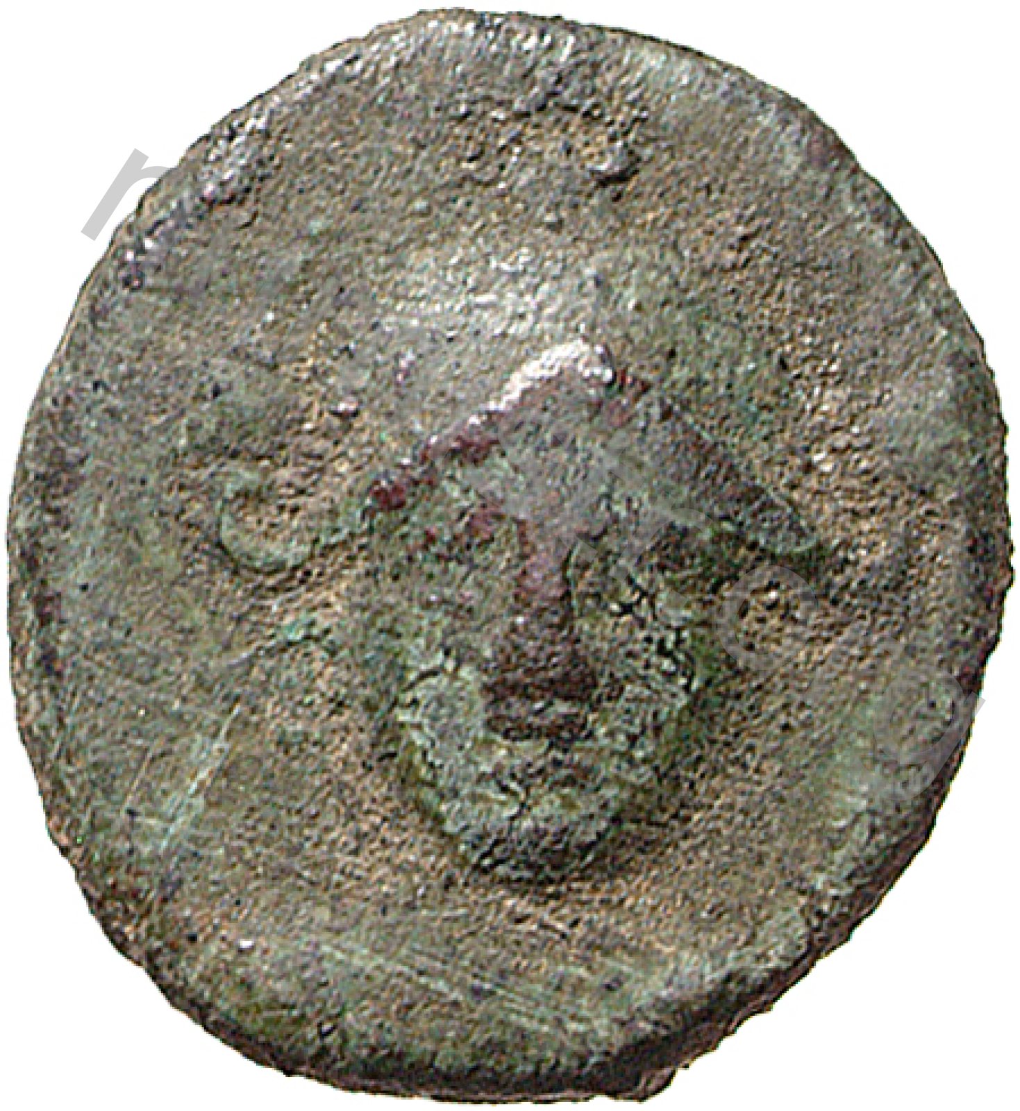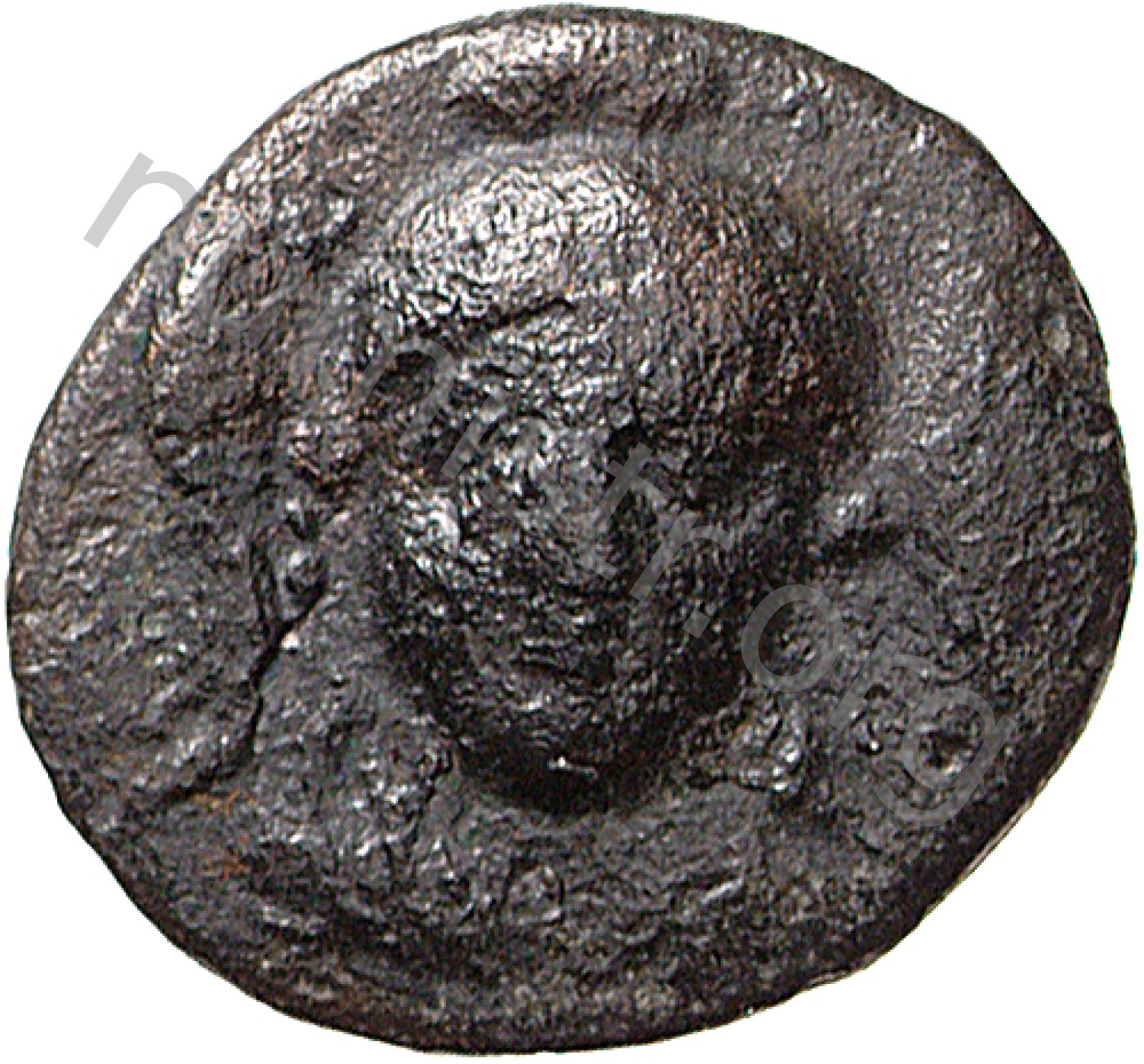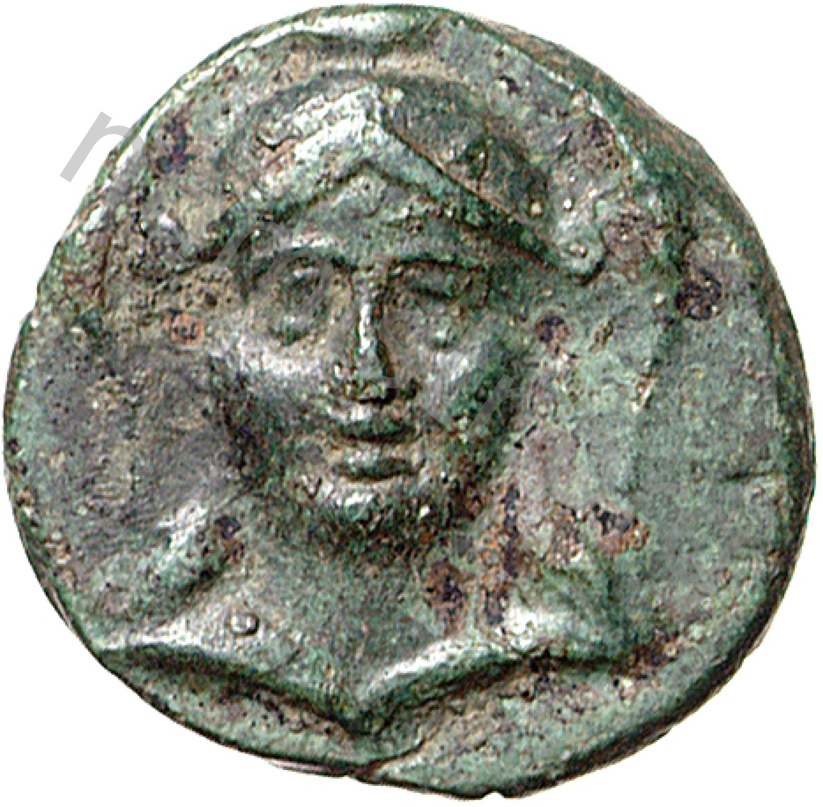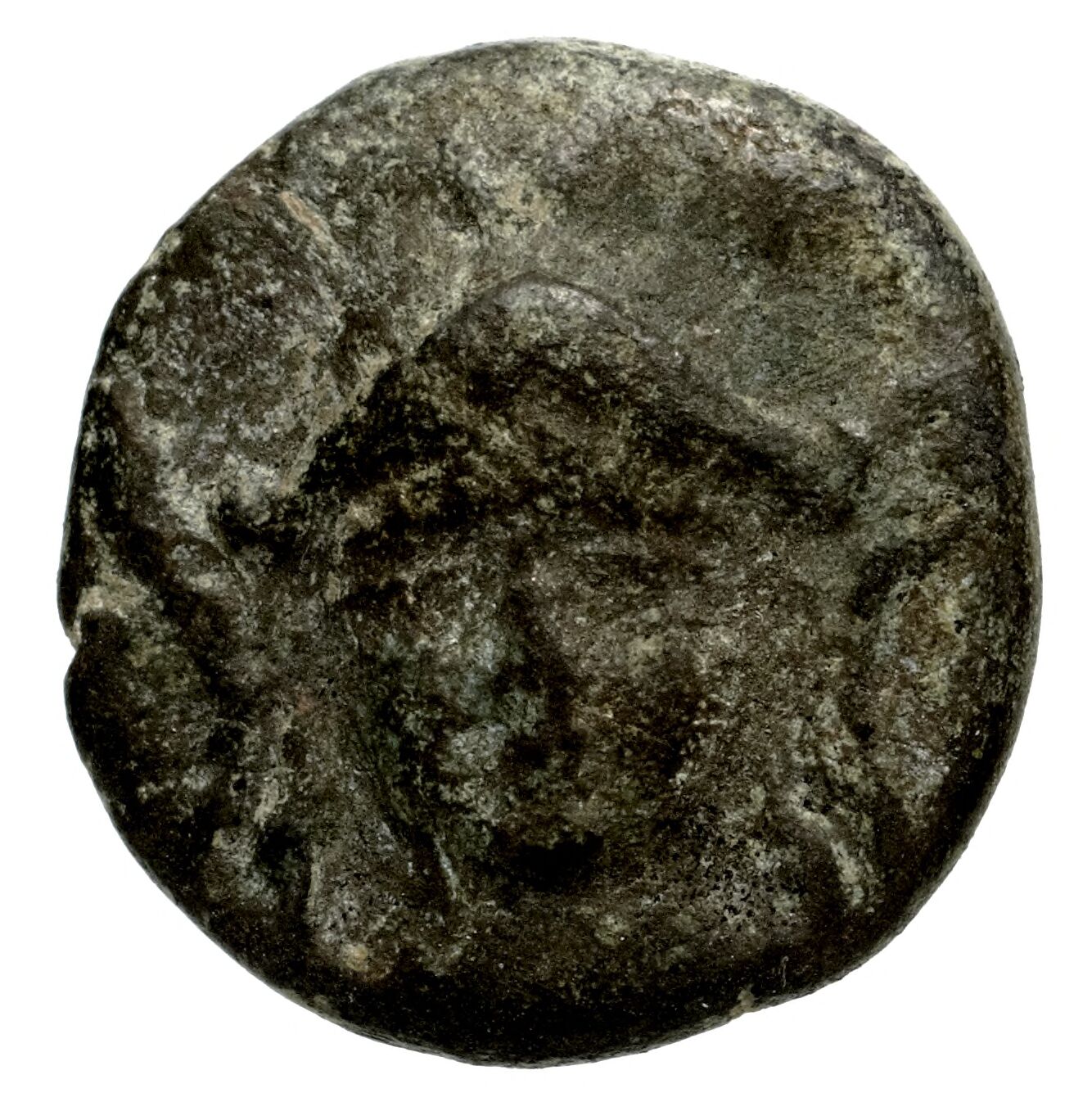 Head of Athena facing wearing a triple-crested helmet -[en]