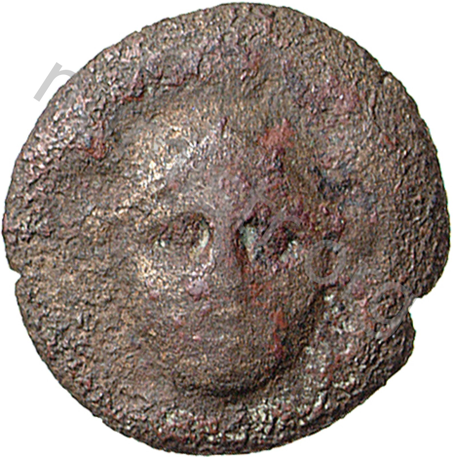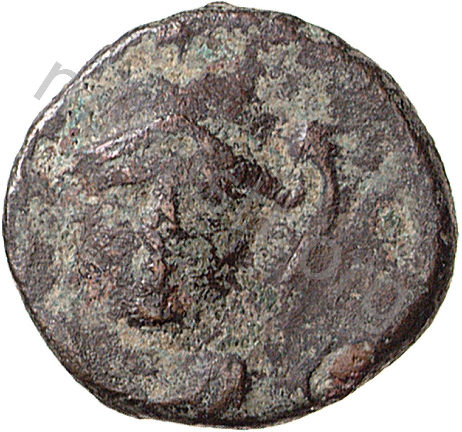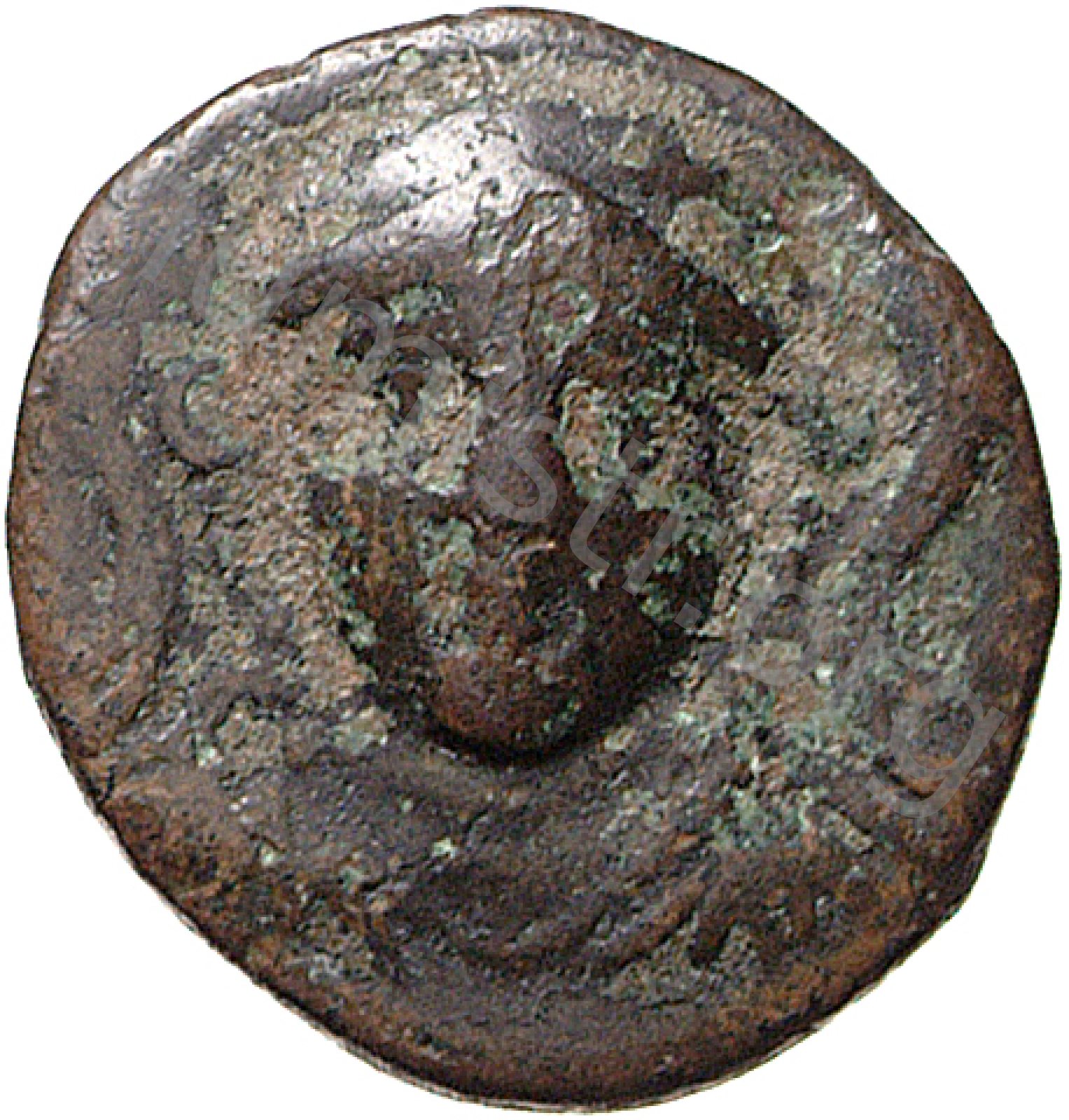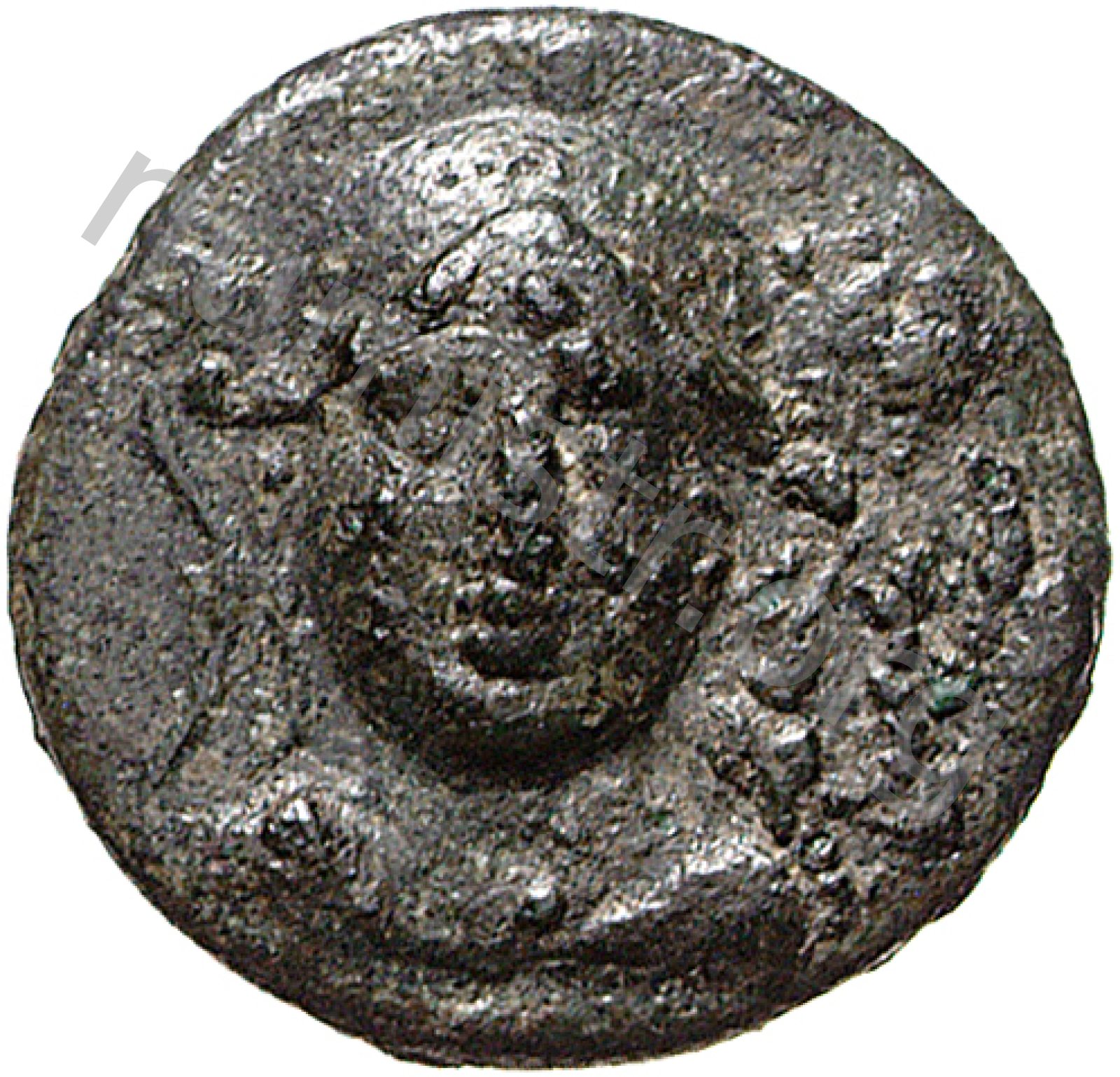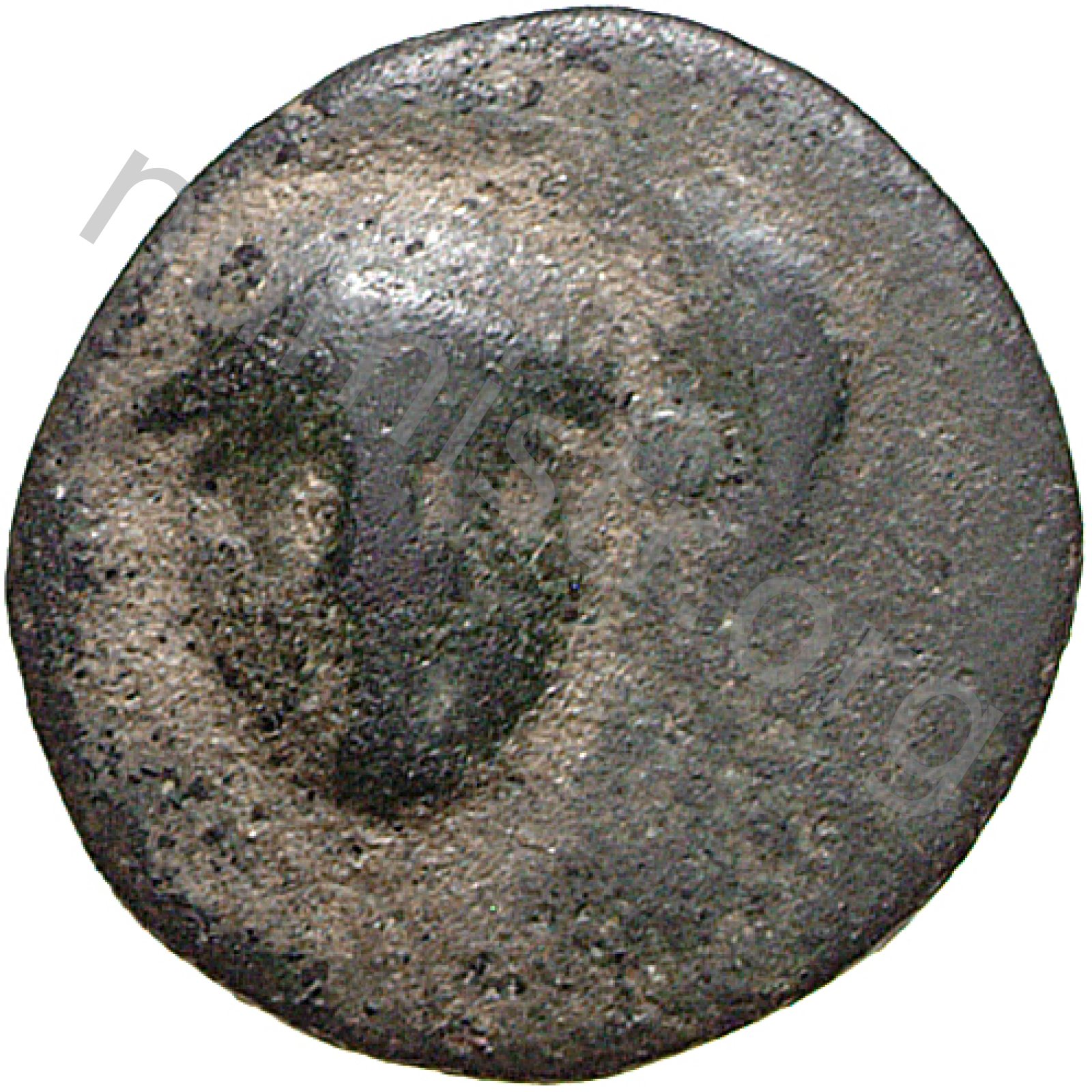 Head of Athena facing wearing a triple-crested helmet -[en]