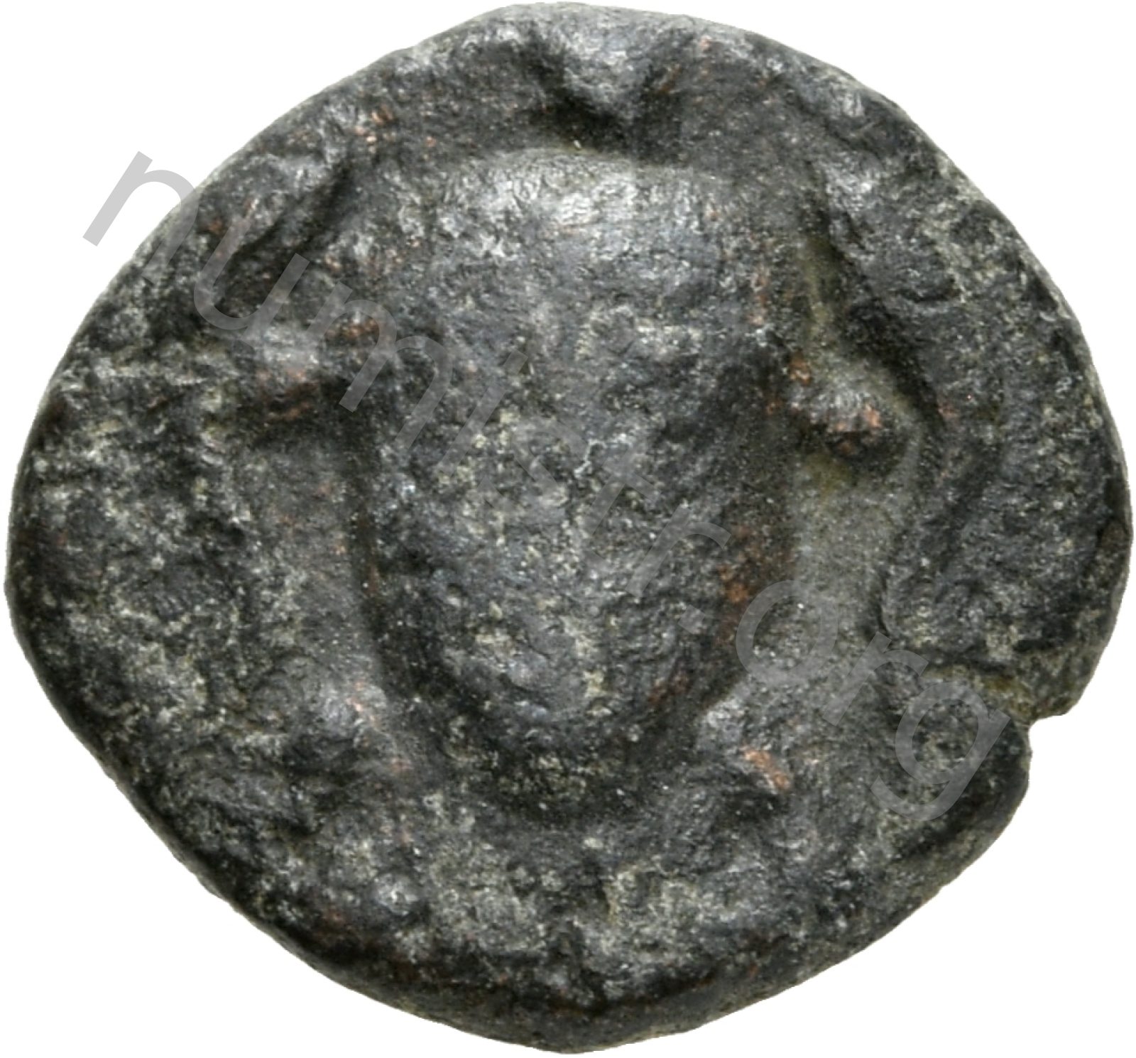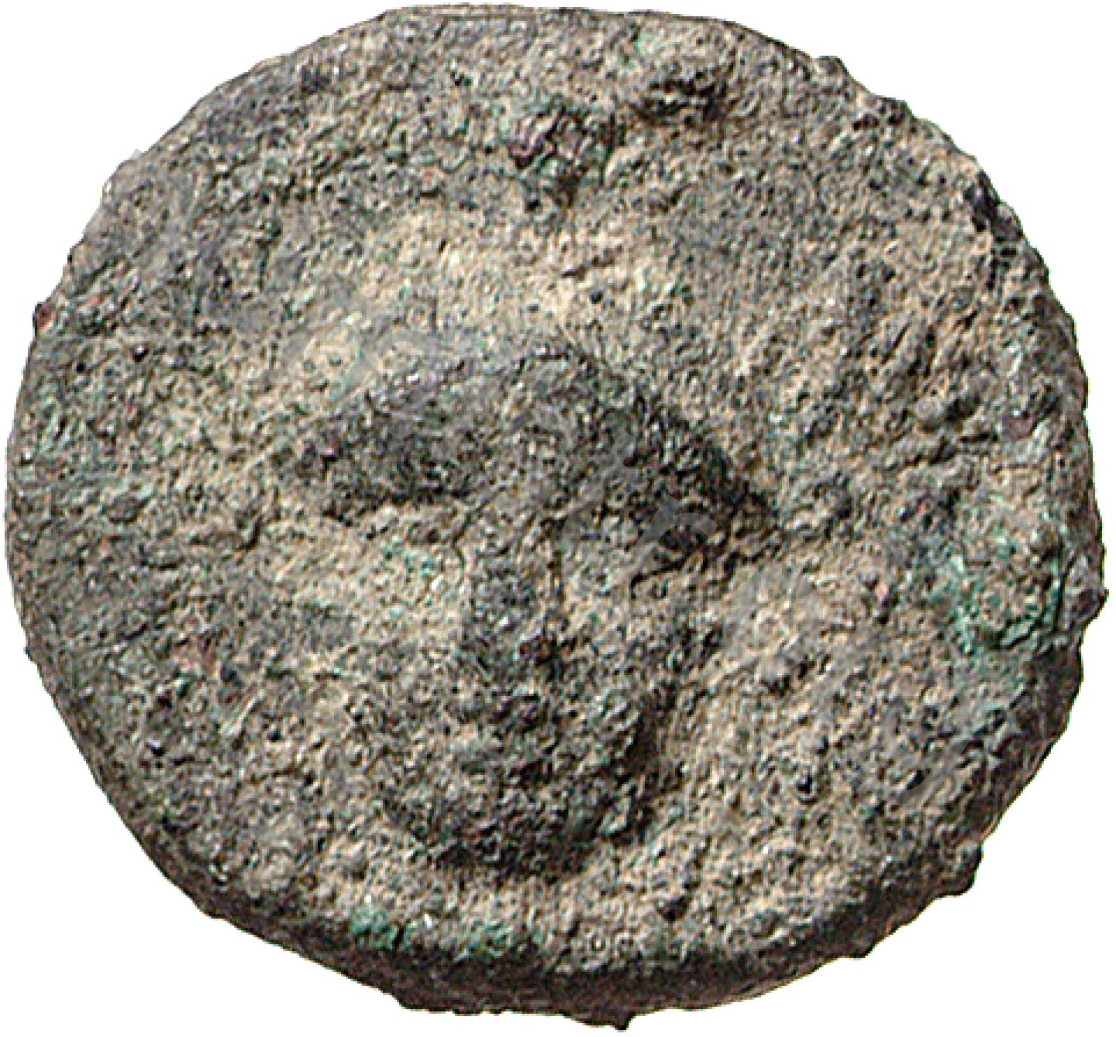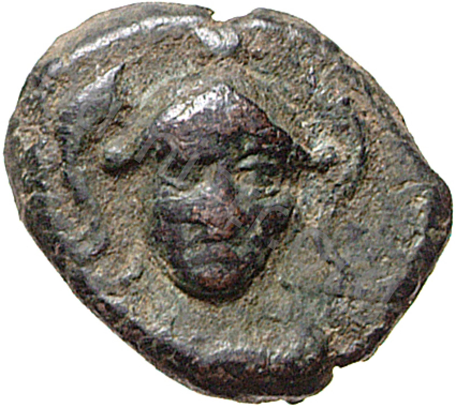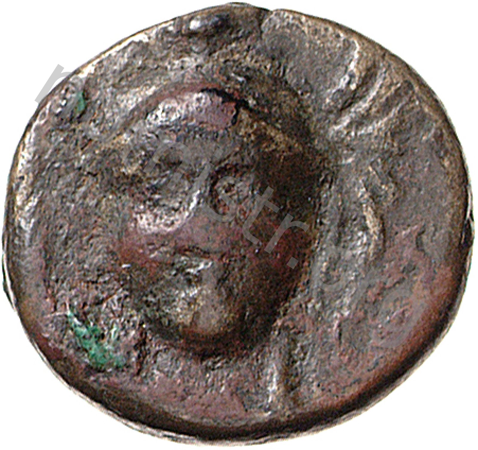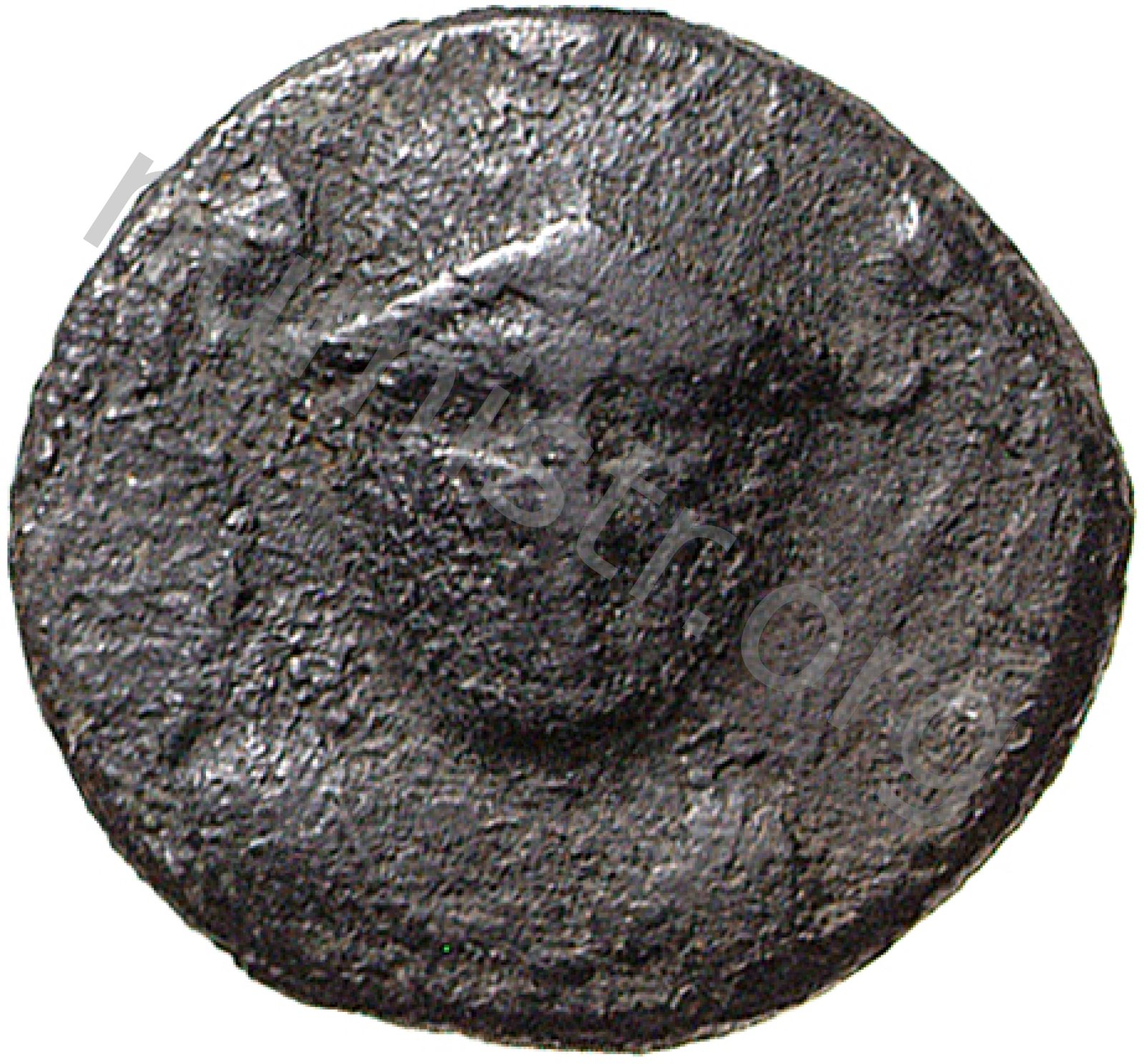 Head of Athena facing wearing a triple-crested helmet -[en]