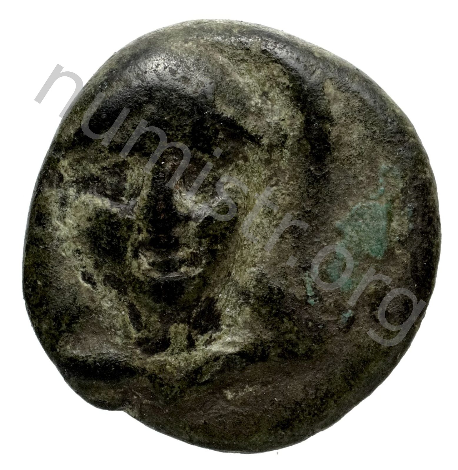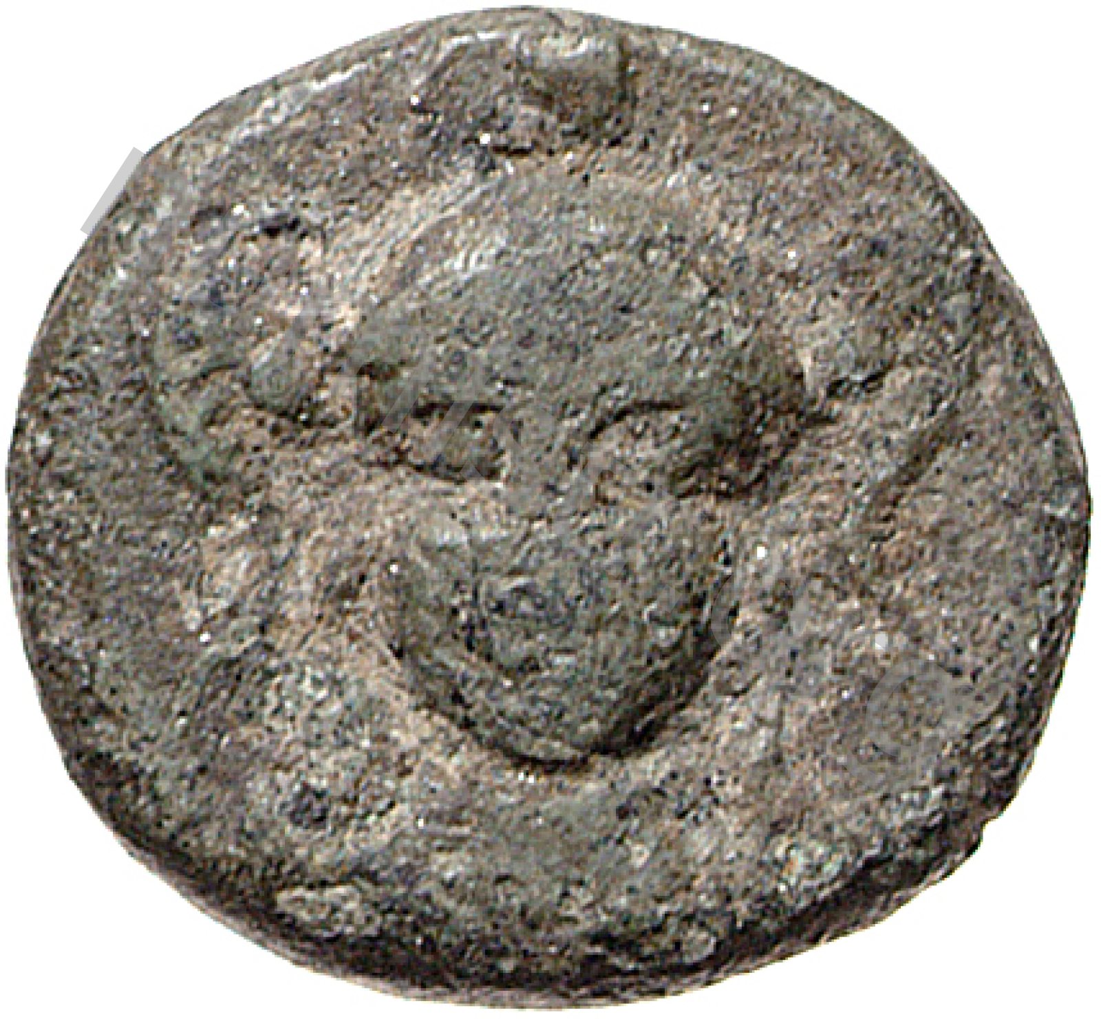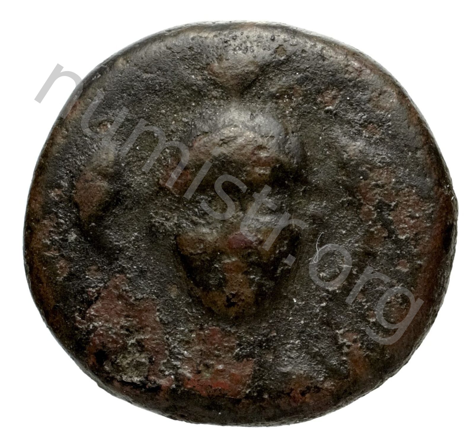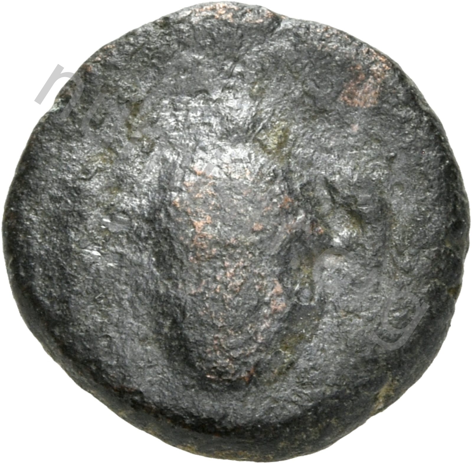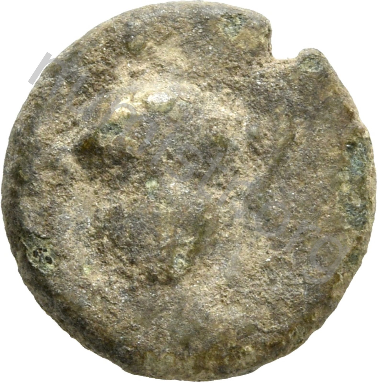 Head of Athena facing wearing a triple-crested helmet -[en]