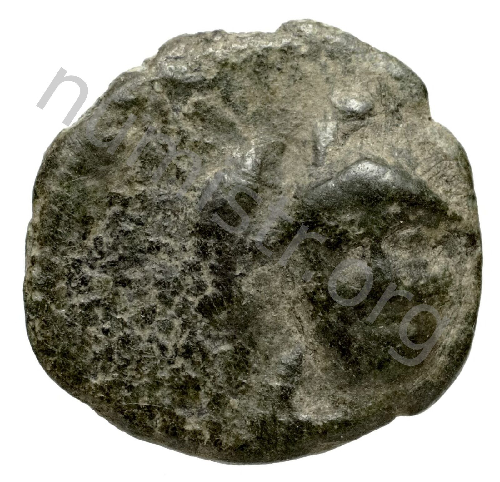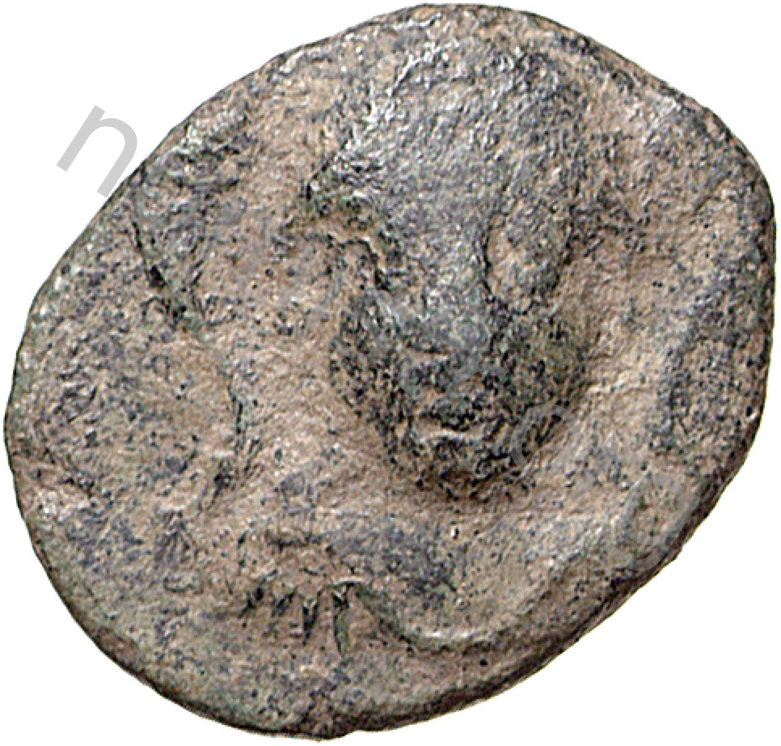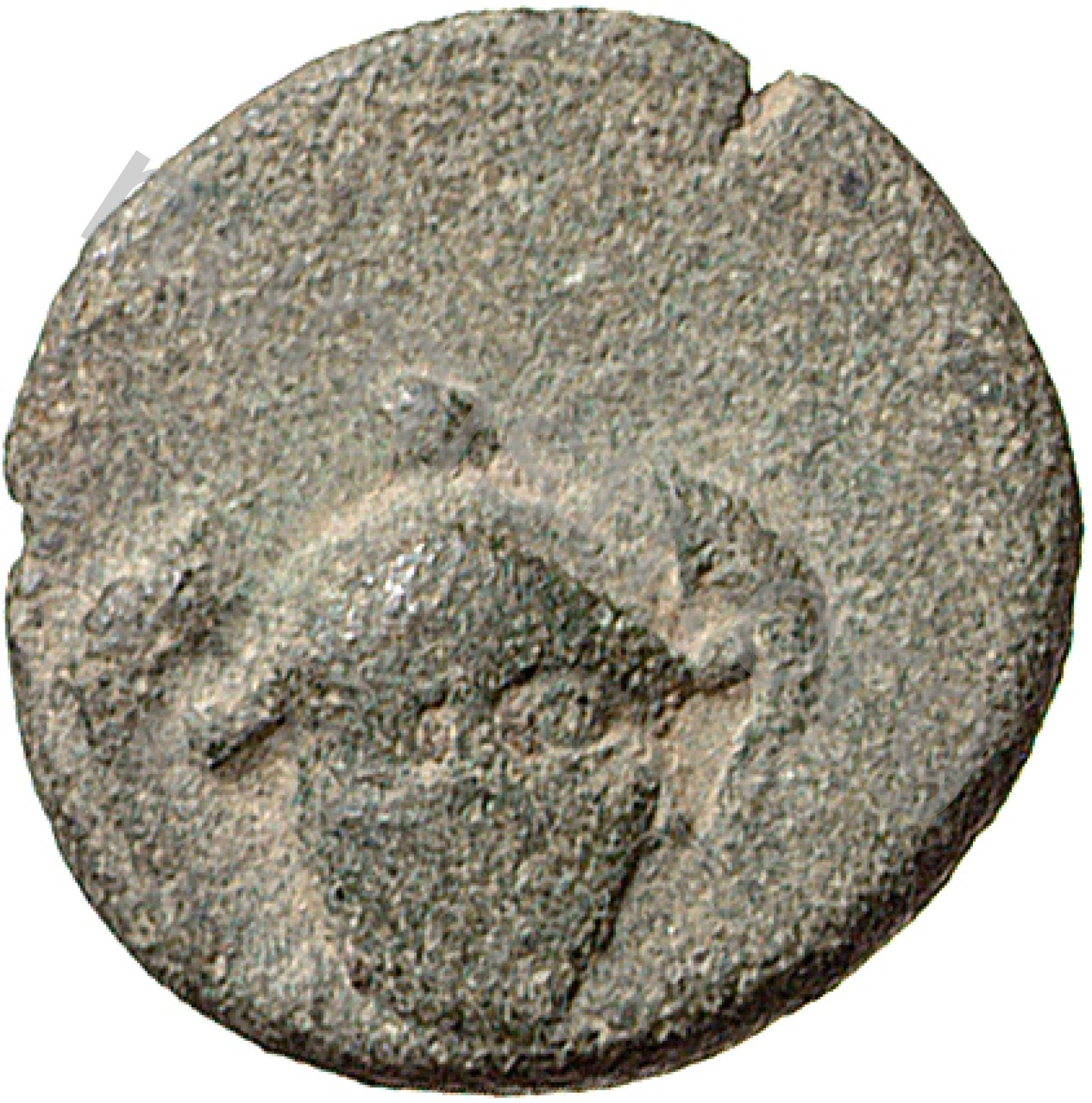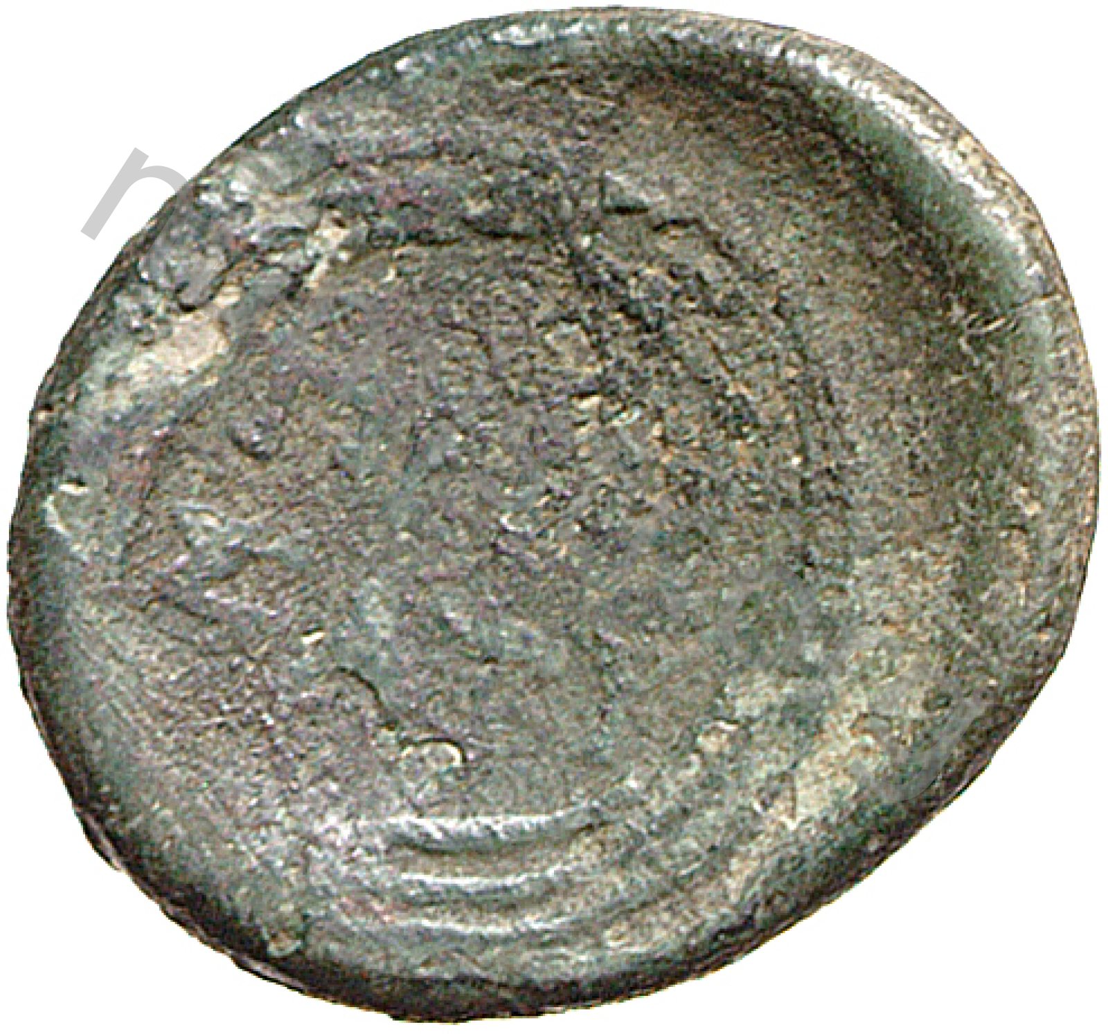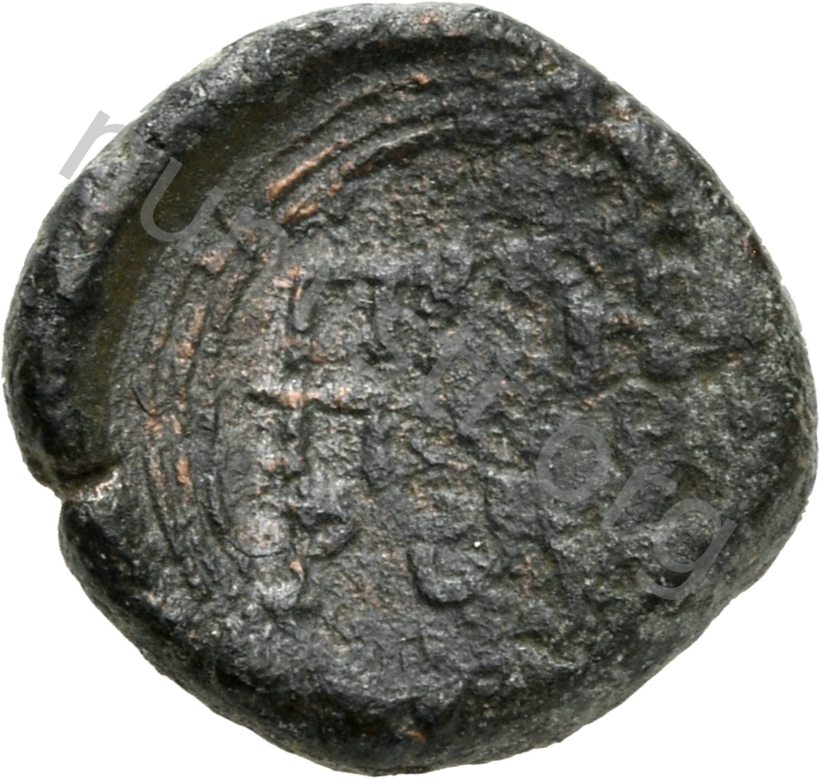 Head of Athena facing wearing a triple-crested helmet -[en]