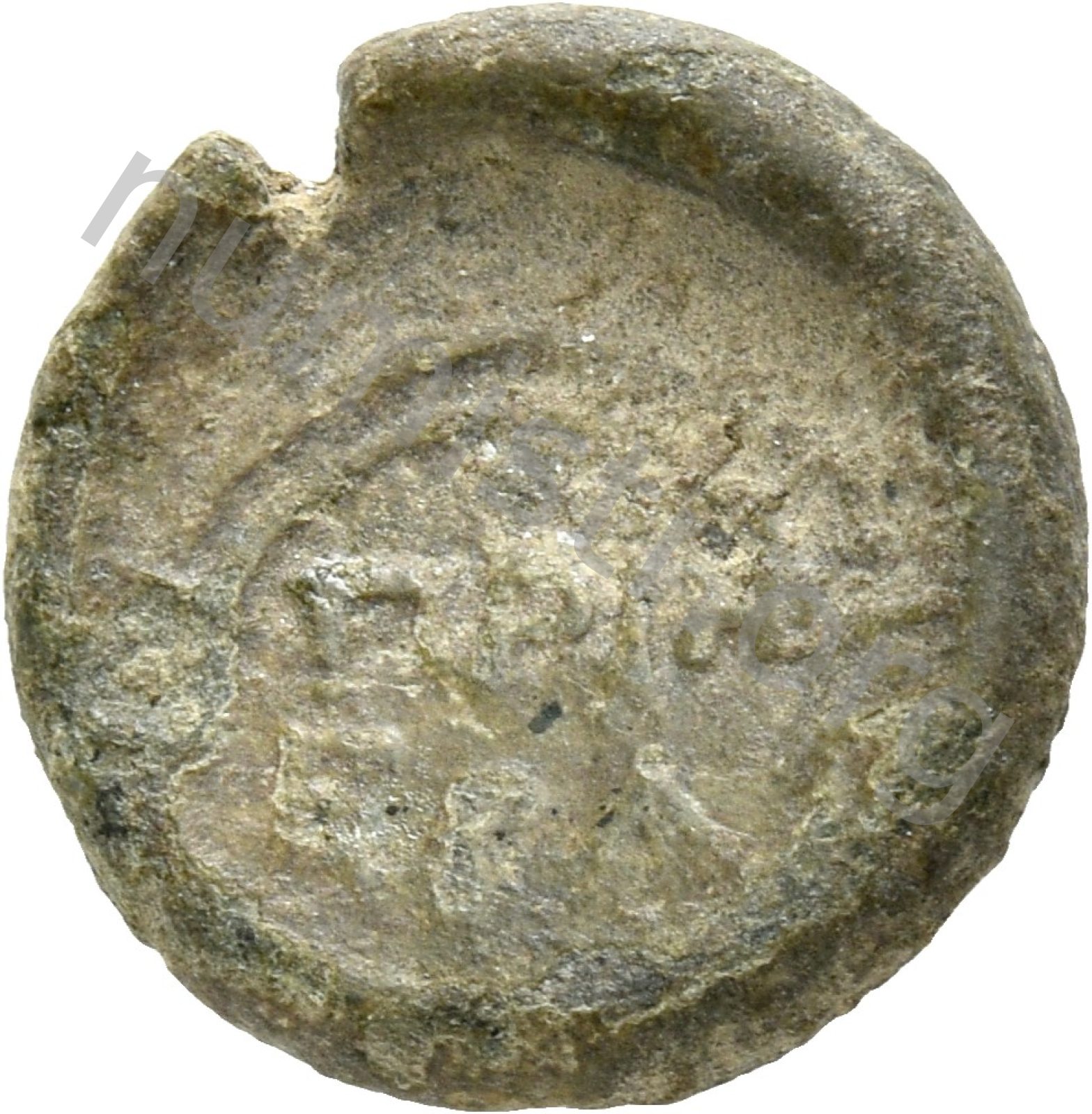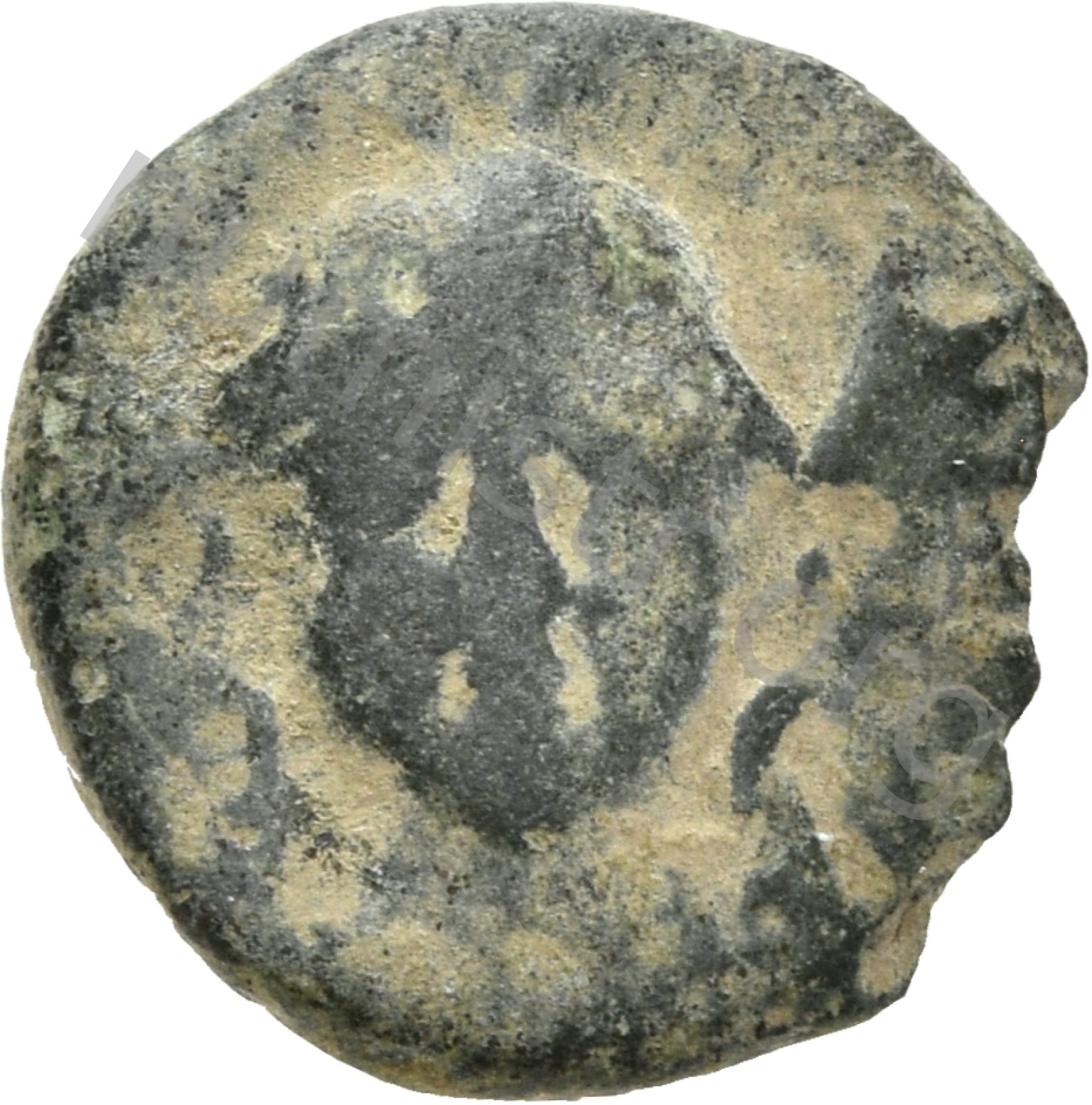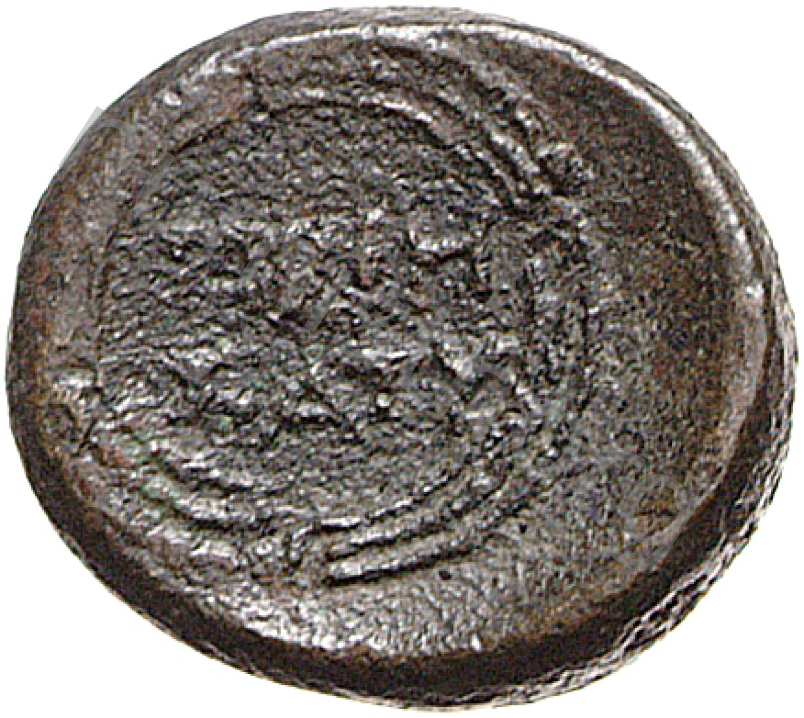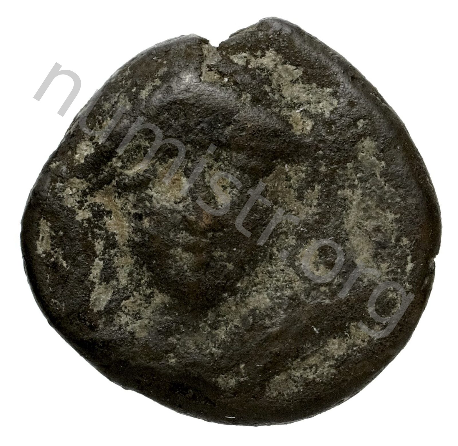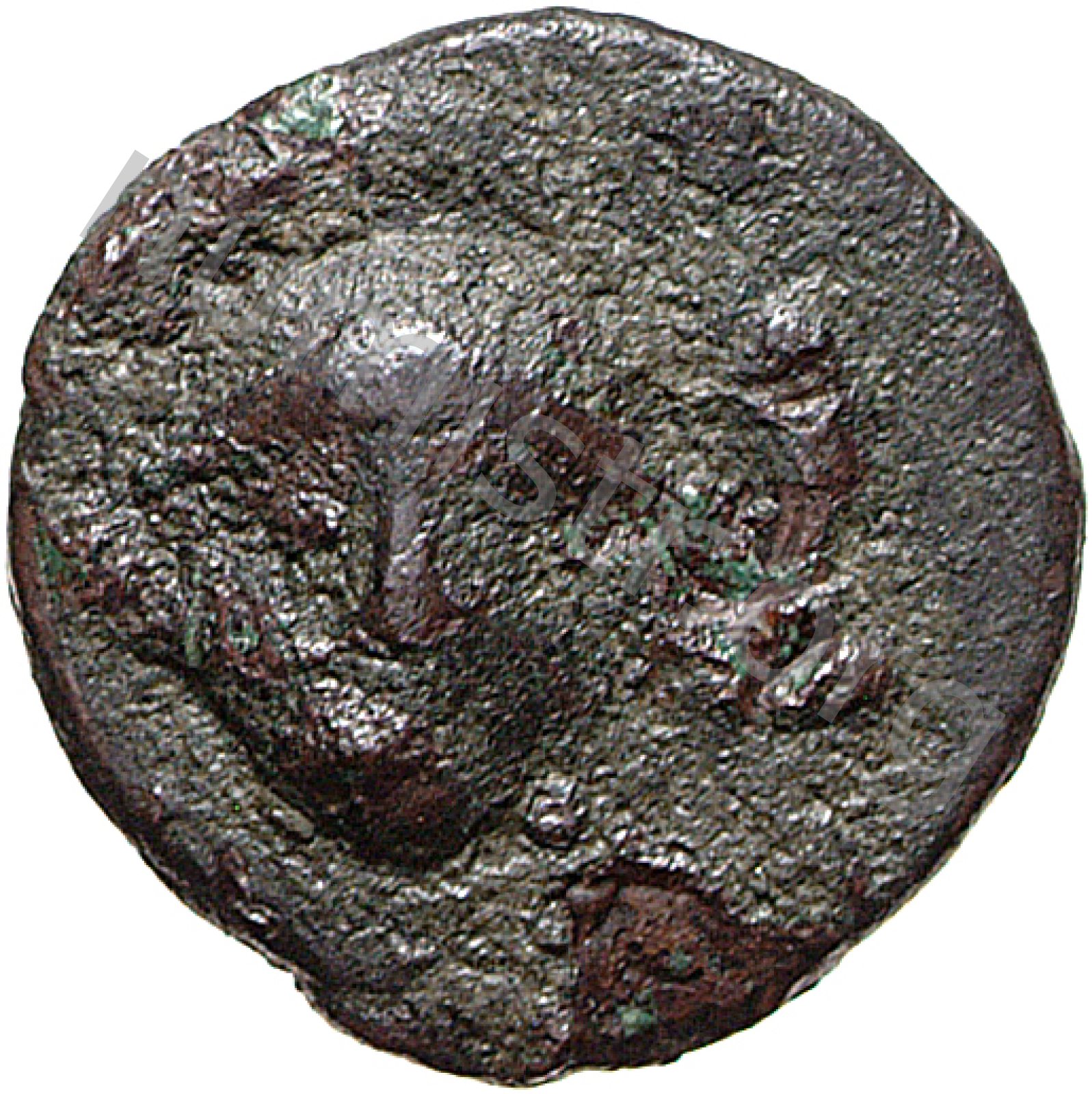 Head of Athena facing wearing a triple-crested helmet -[en]
