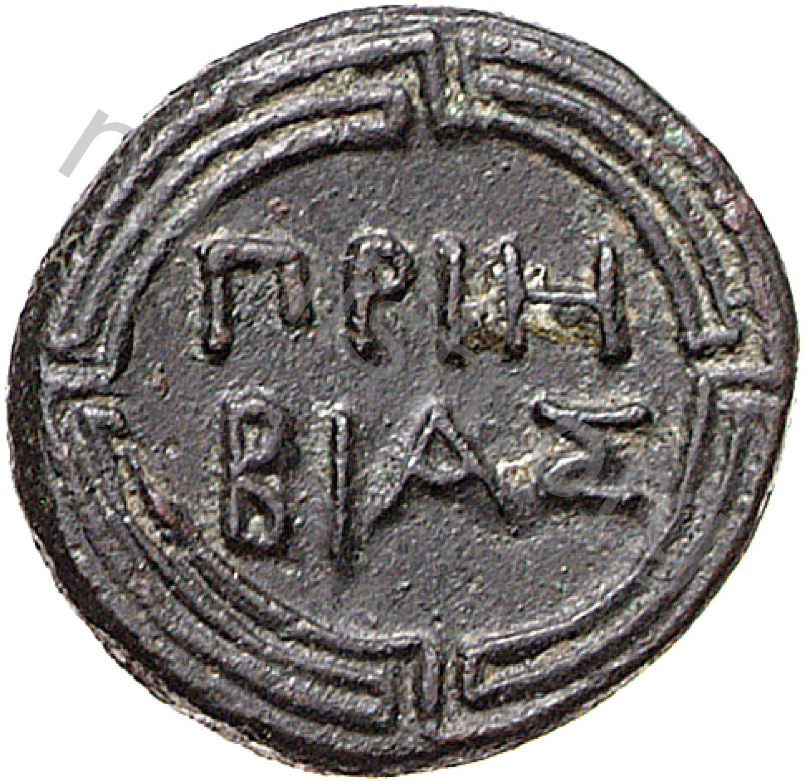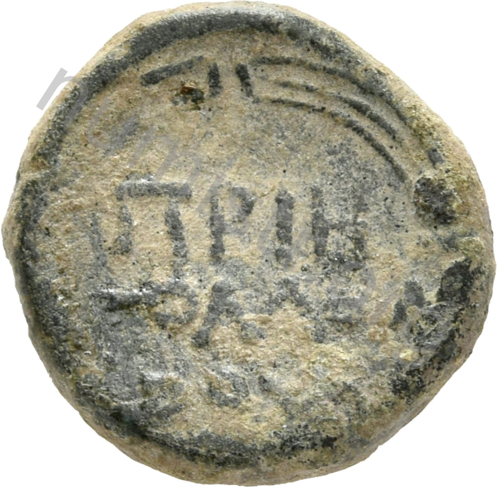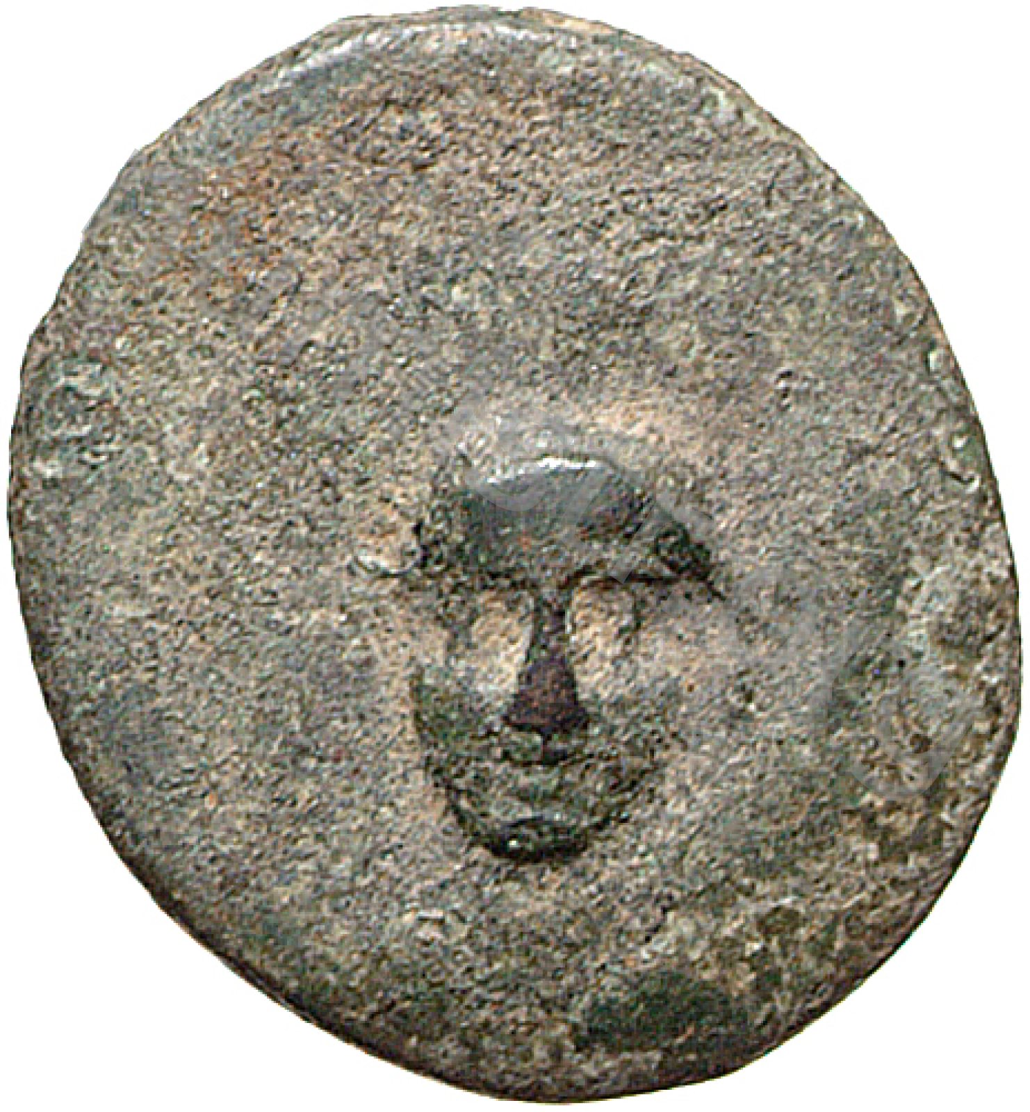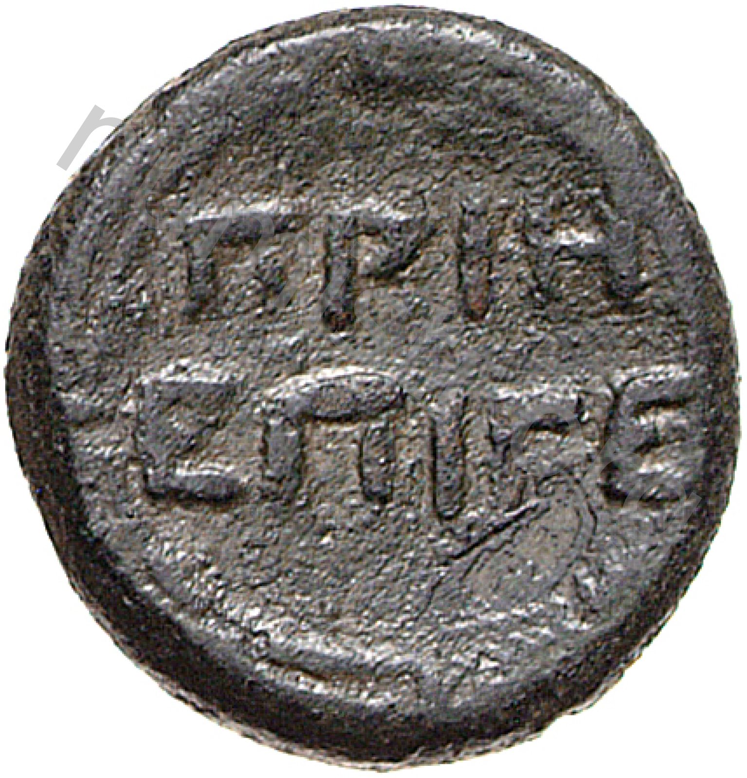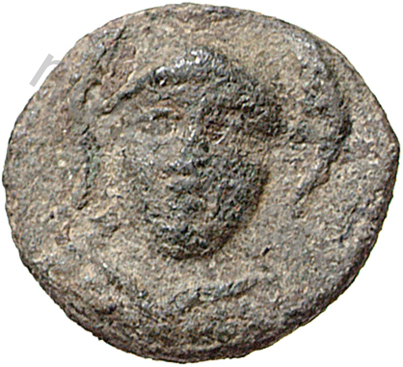 Head of Athena facing wearing a triple-crested helmet -[en]