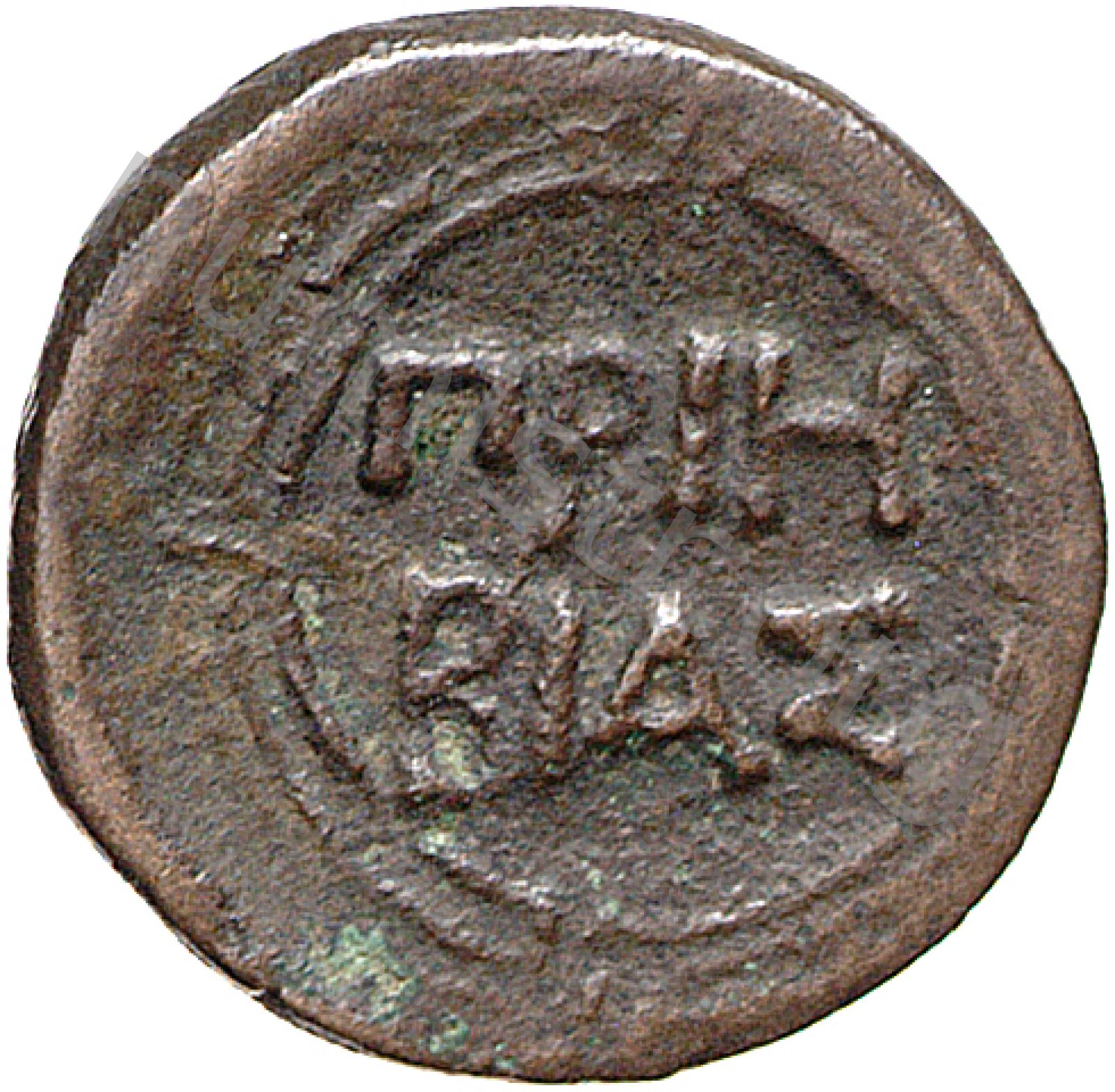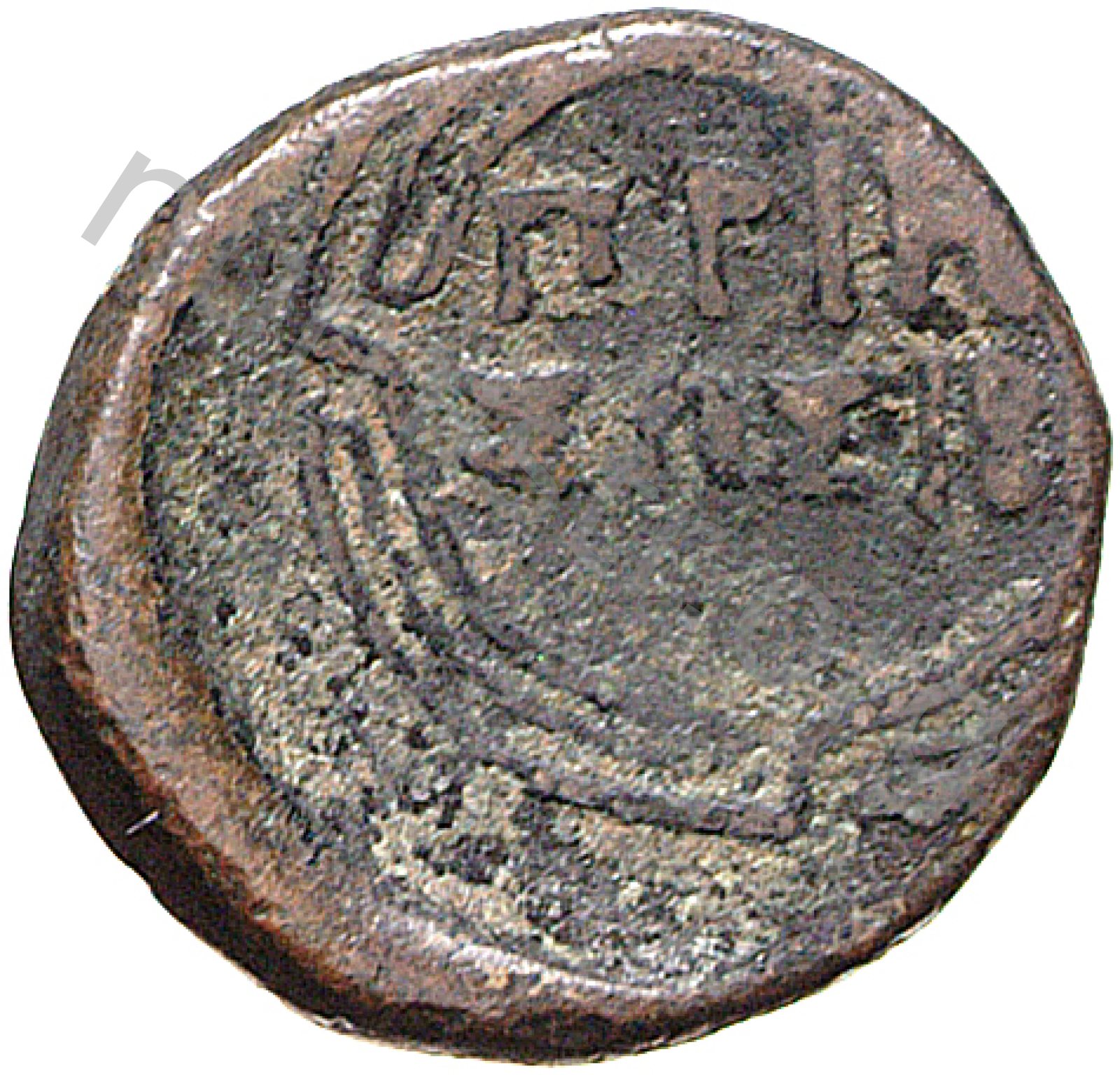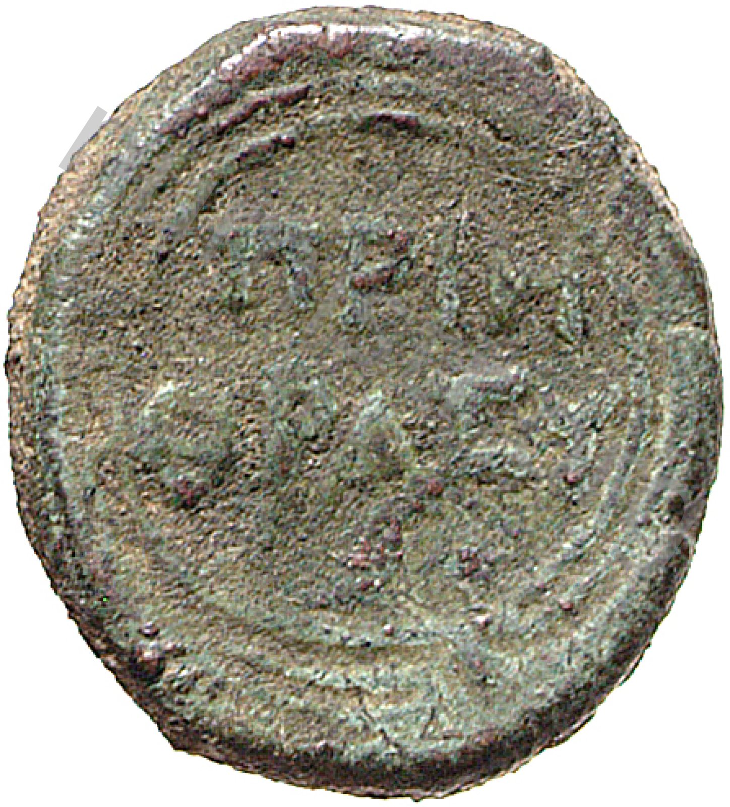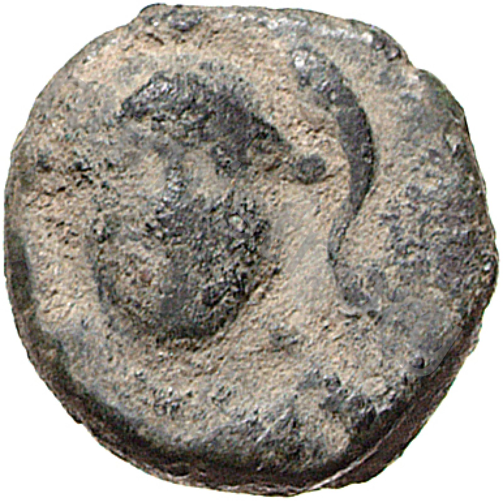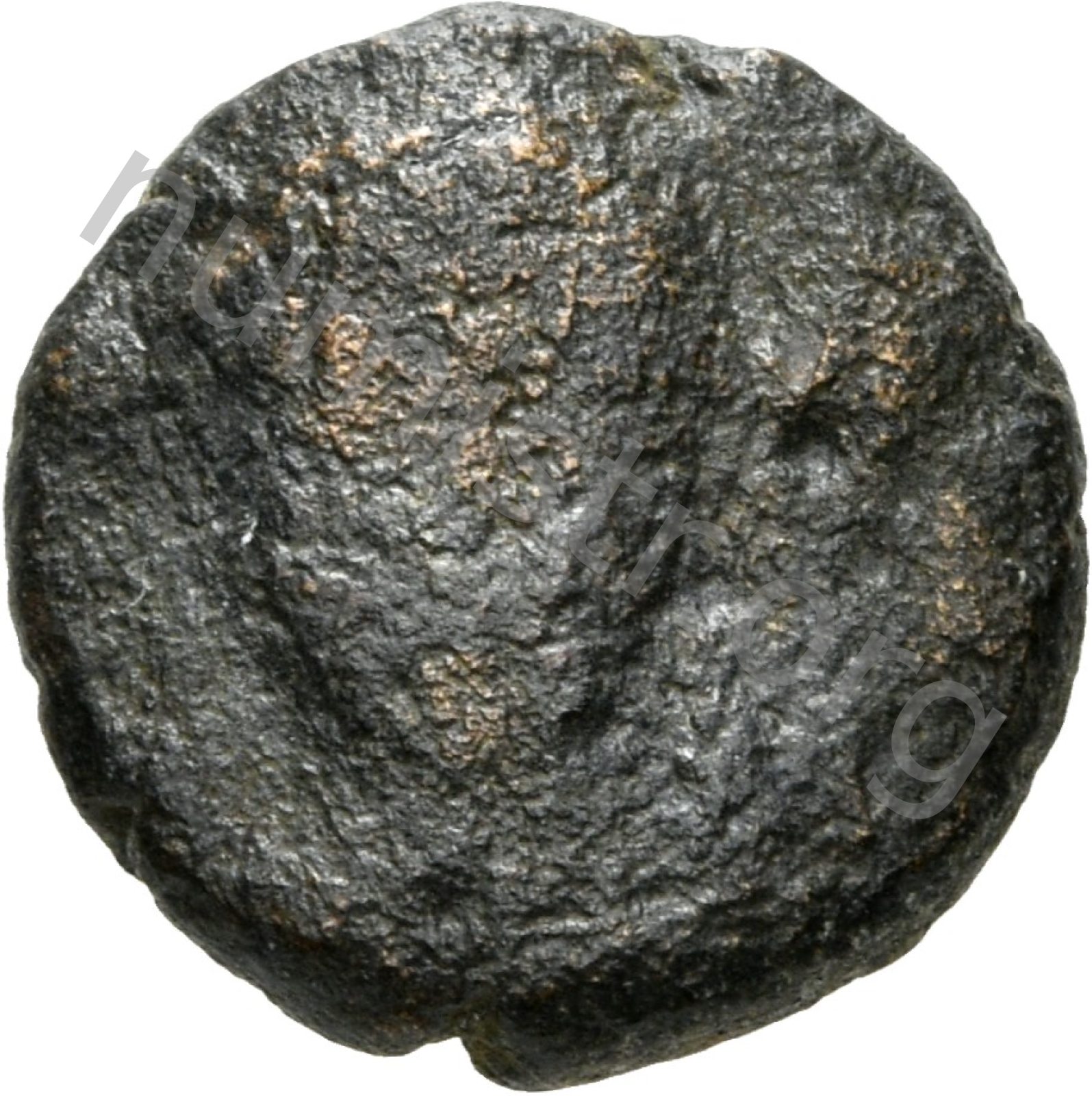 Head of Athena facing wearing a triple-crested helmet -[en]
