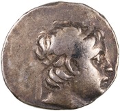 Sağda Antiochus Hierax'ın (ya da Antiochus II'nin?) diademli başı
