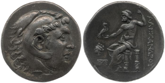 Head of beardless Heracles right wearing lion skin headdress -[en]