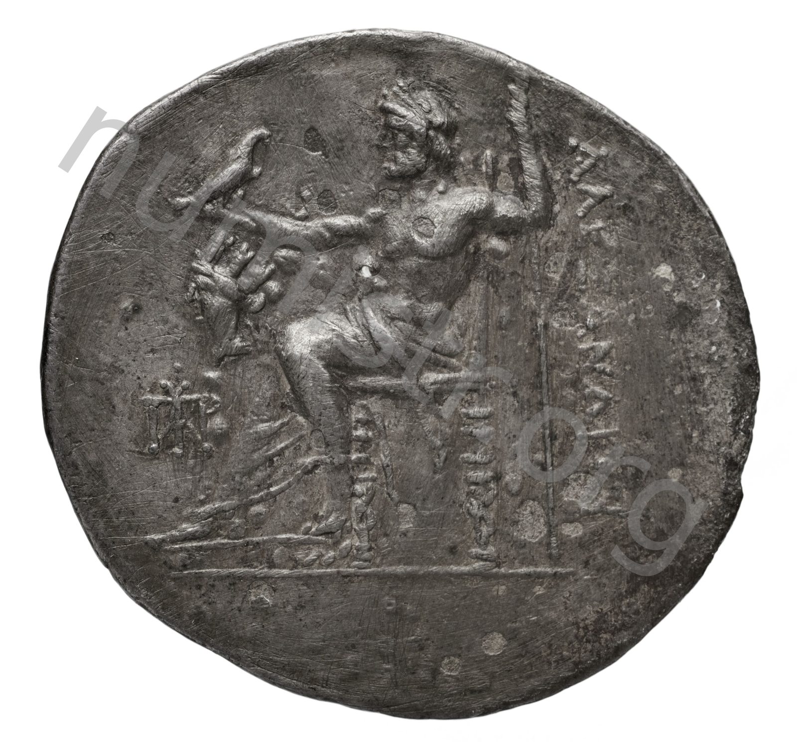Zeus tabure-tahtta oturuyor sol elinde kartal sağ elinde asa var.