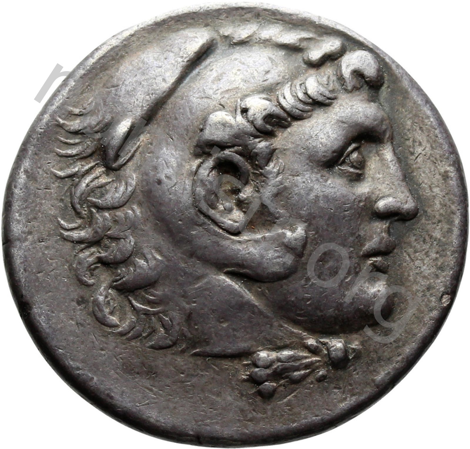 Head of beardless Heracles right wearing lion skin headdress -[en]