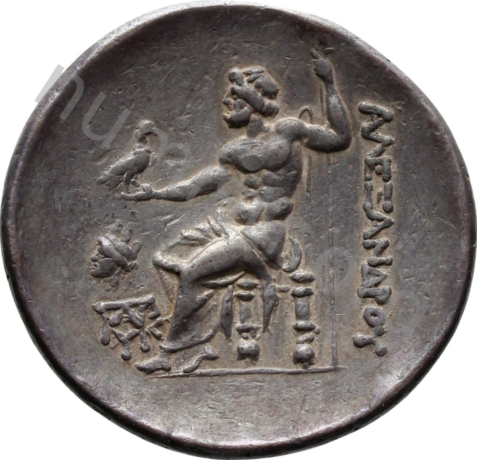 Zeus tabure-tahtta oturuyor sol elinde kartal sağ elinde asa var.