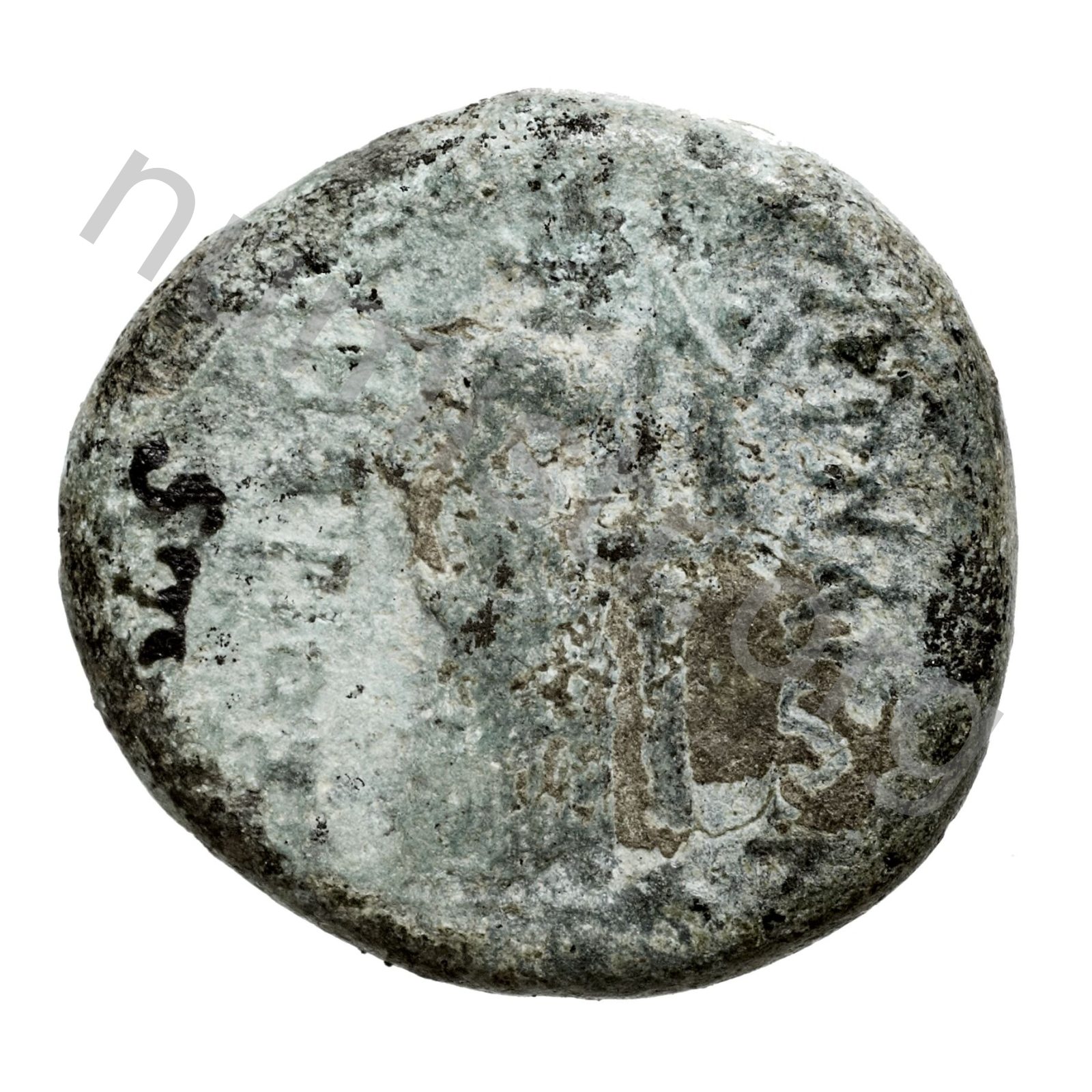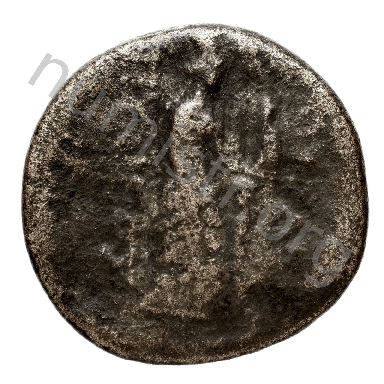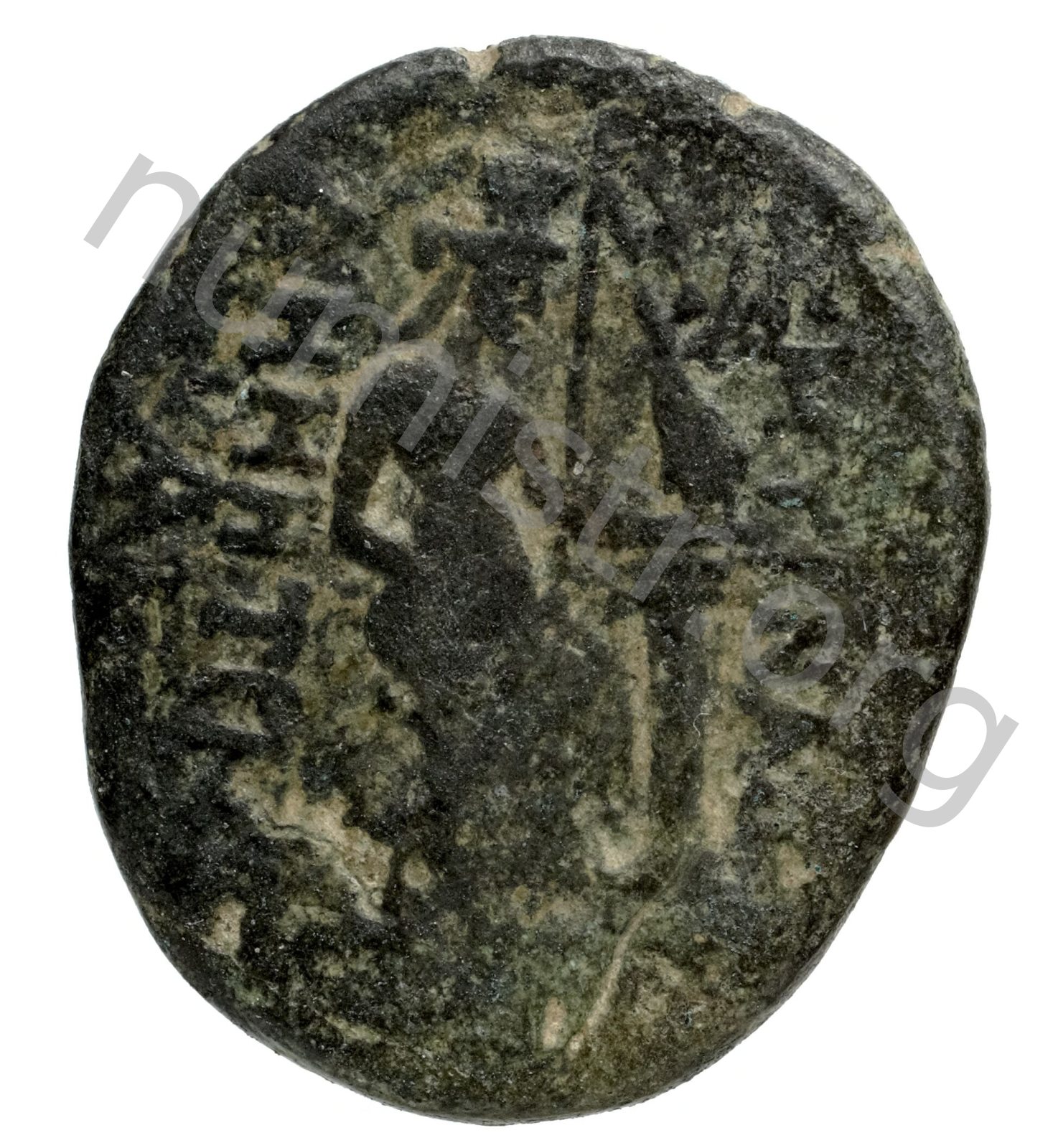 Aphrodite Stratonikis wearing a bun and a long peplos facing; over a column a victory holding a crown -[en]