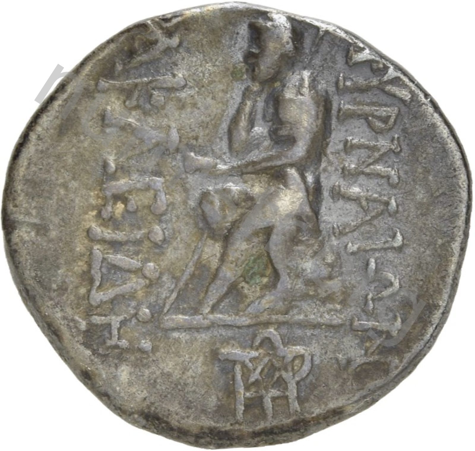 Head of Apollo wearing a laurel wreath and a bun locks on the back of the neck -[en]