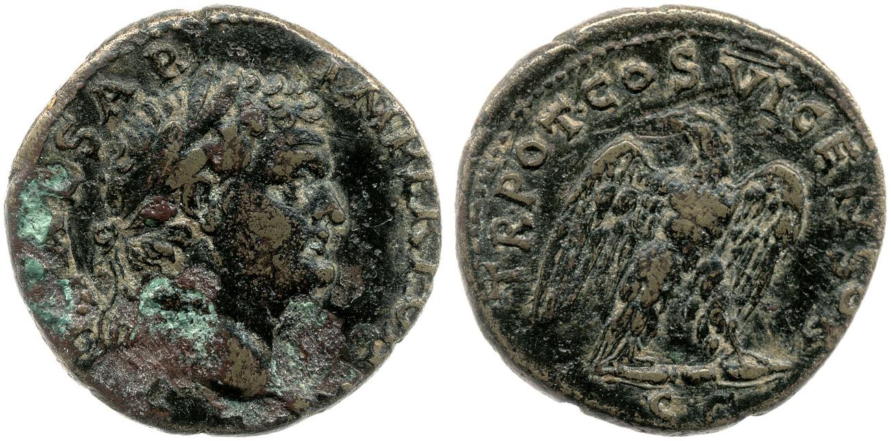 Eagle standing right on thunderbolt wings spread head left -[en]