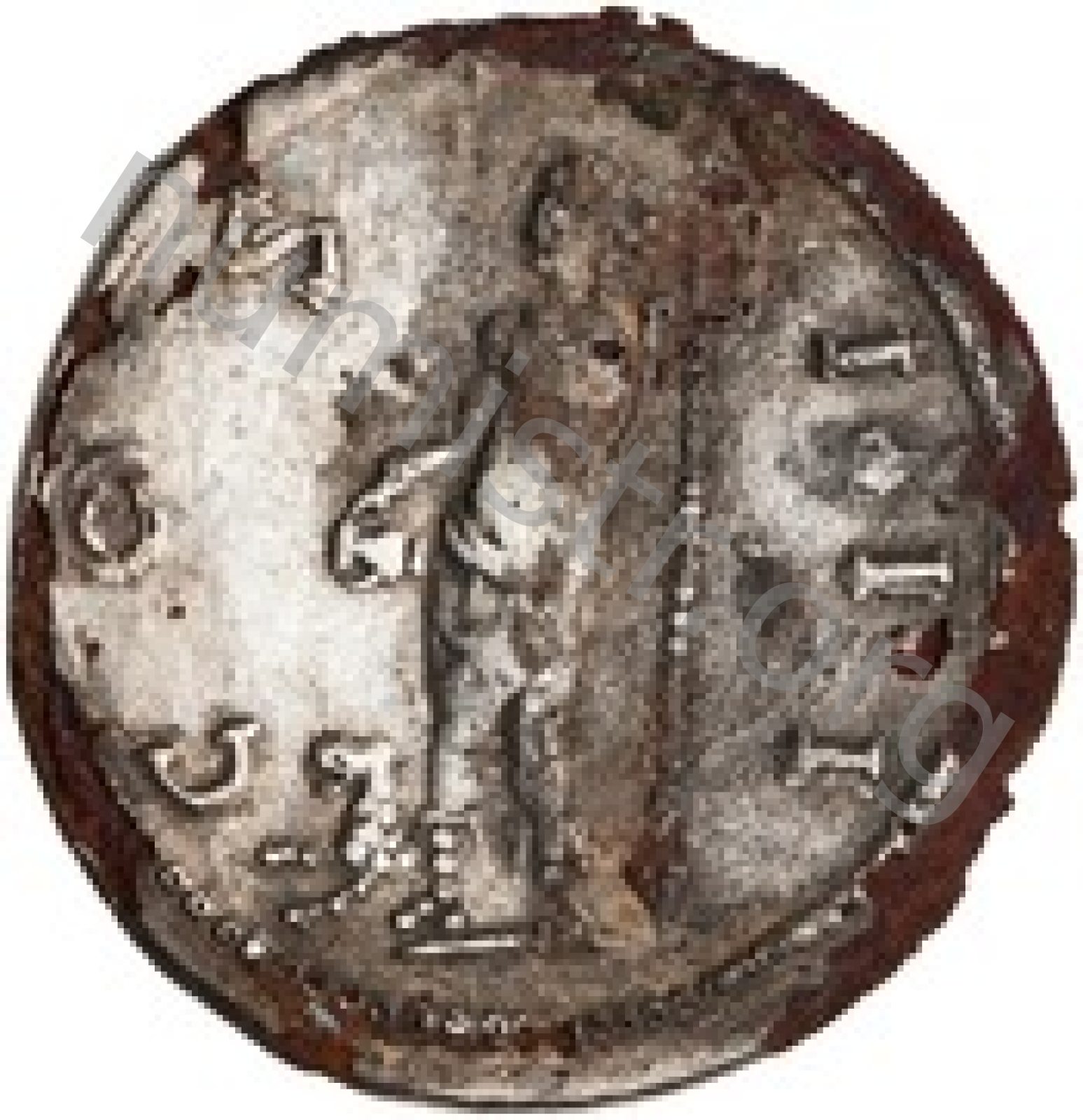 Bacchus standing left pouring liquid over a panther left out of an oenochoe and holding a thyrsus -[en]