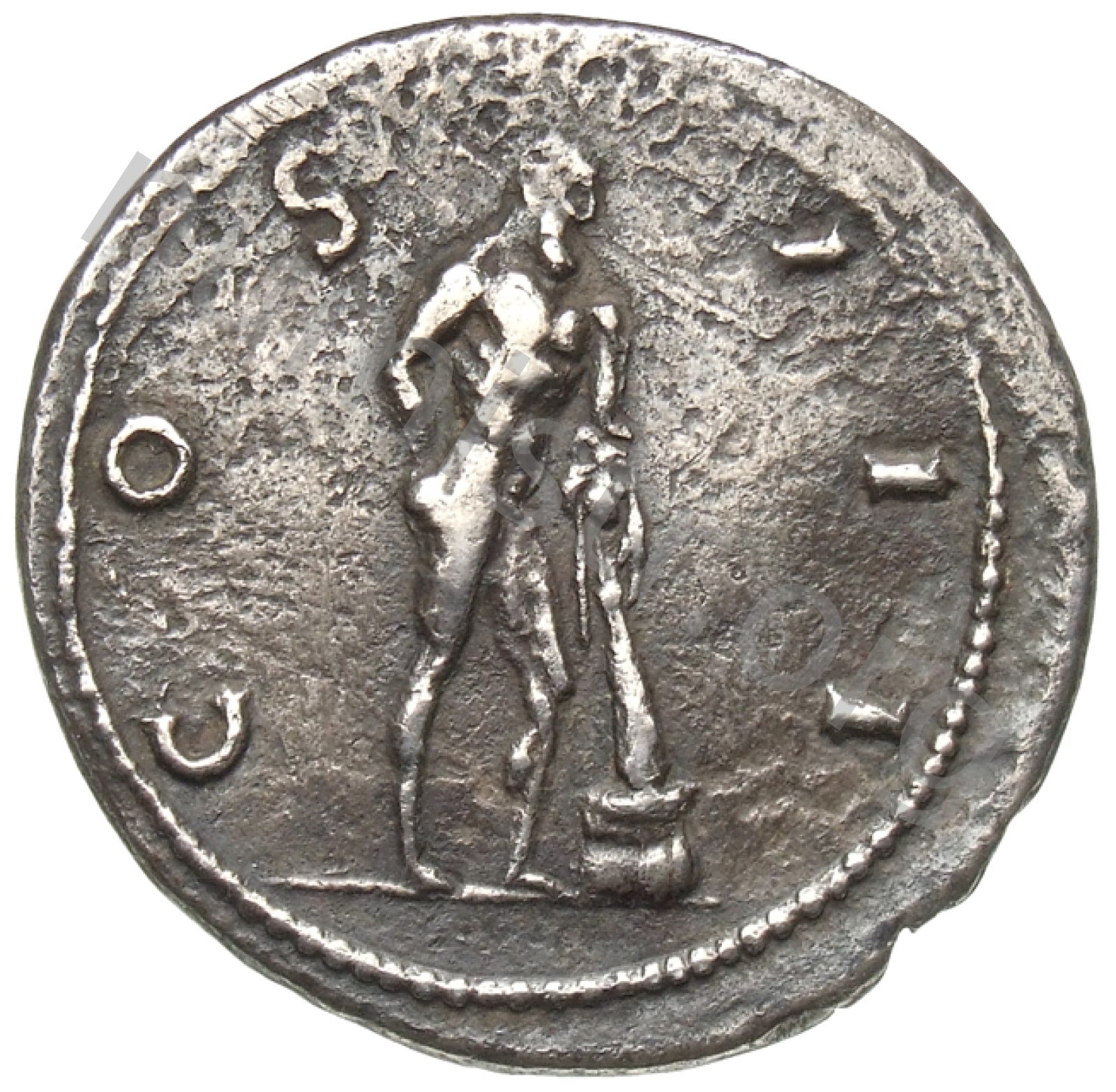 Hercules naked standing right holding right hand behind back and resting left hand on club with lion skin set on rock -[en]