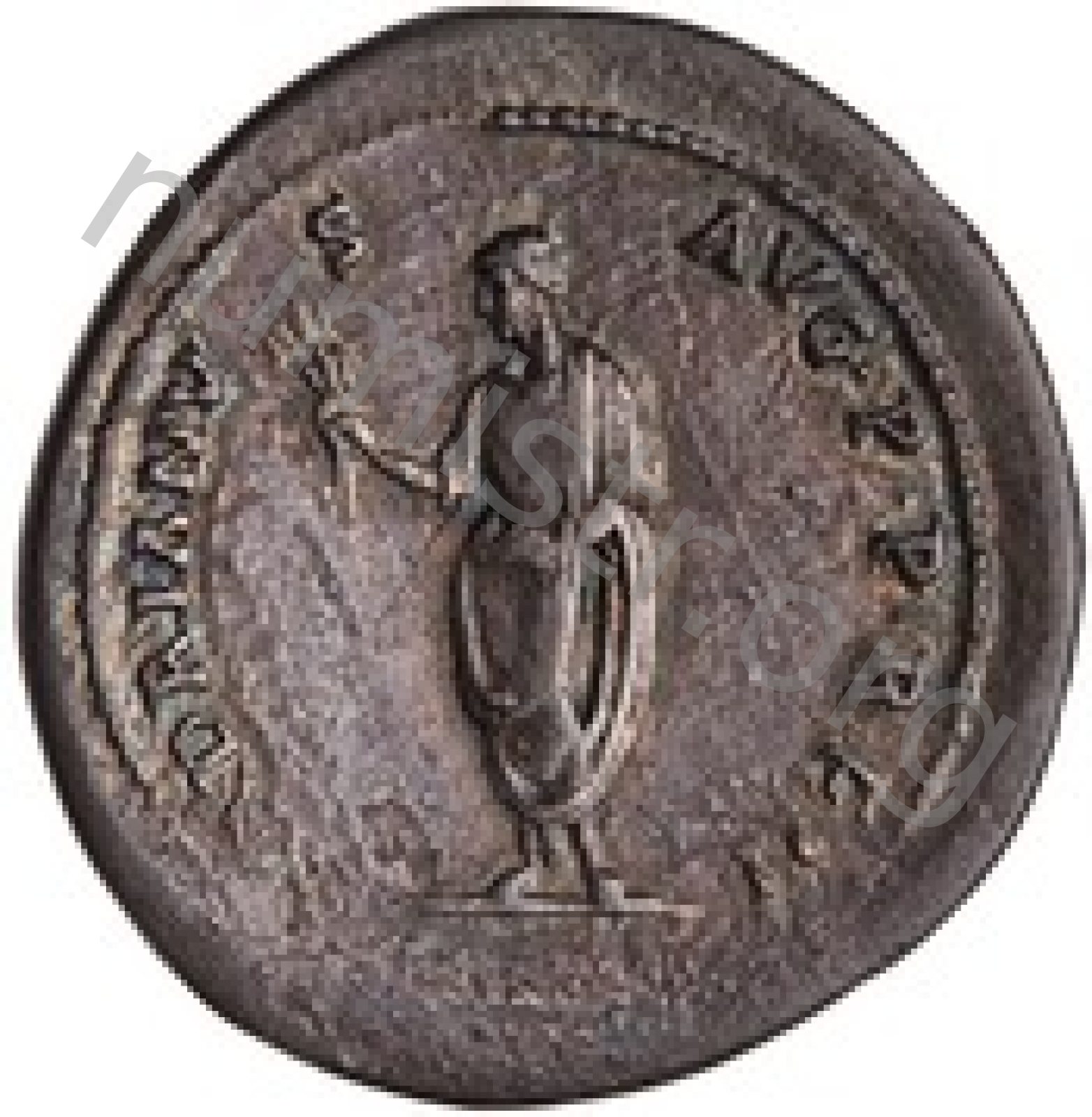 Hadrian örtülü togate ayakta duruyor solda duruyor sağ elinde mısır koçanları tutuyor ve sol elinde katlıyor