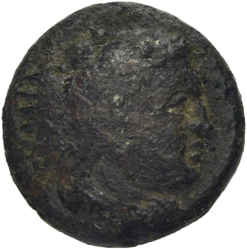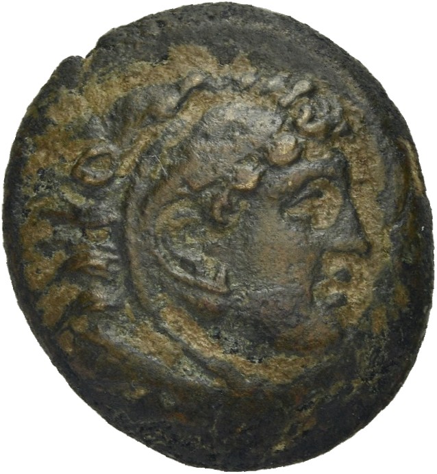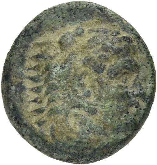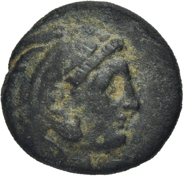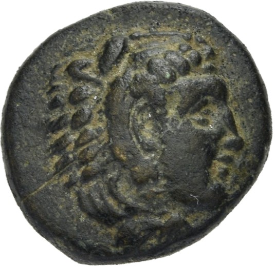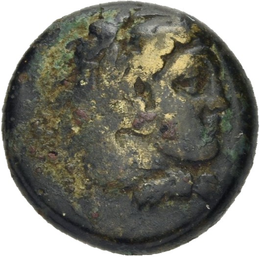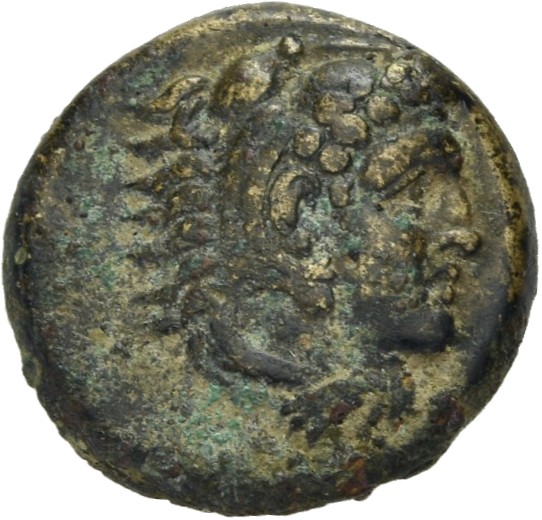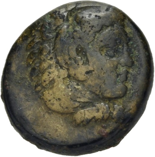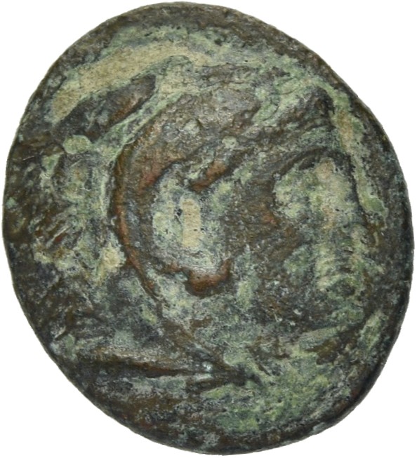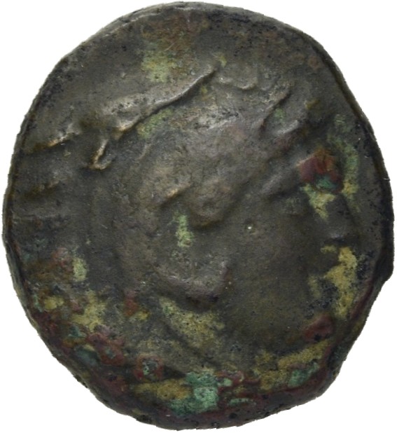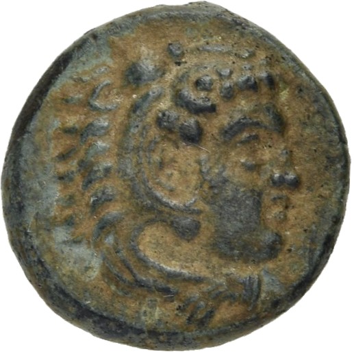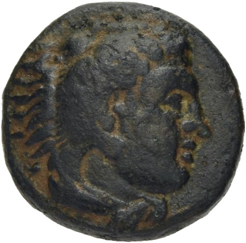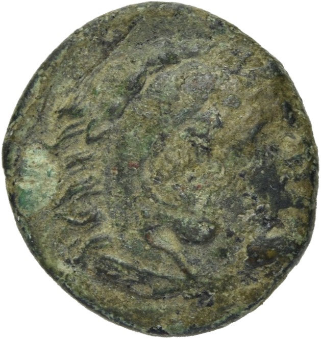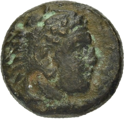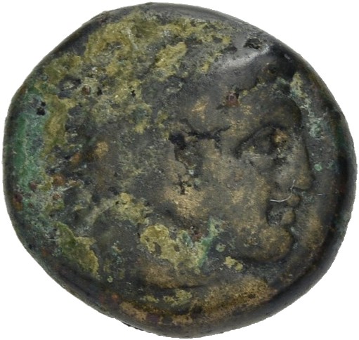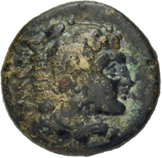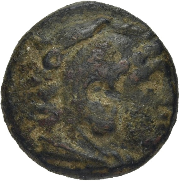 Head of Heracles beardless wearing a lion's skin right -[en]
