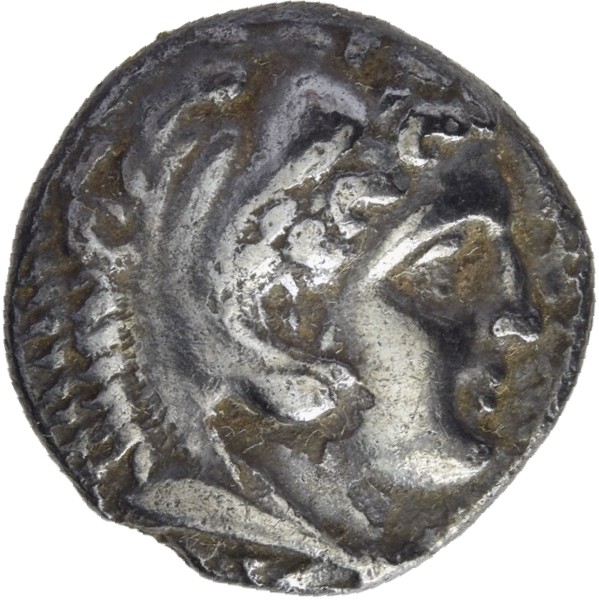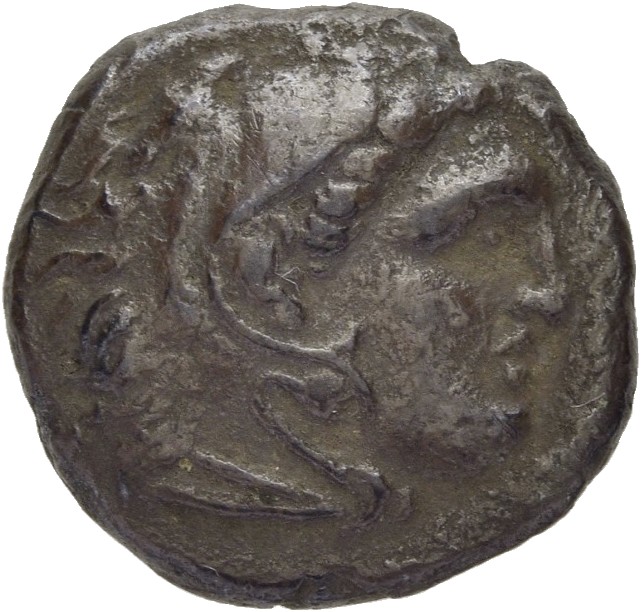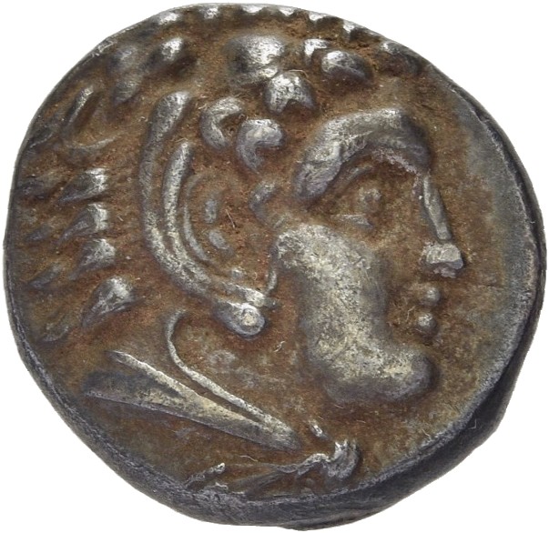 Head of Heracles beardless wearing a lion's skin right -[en]