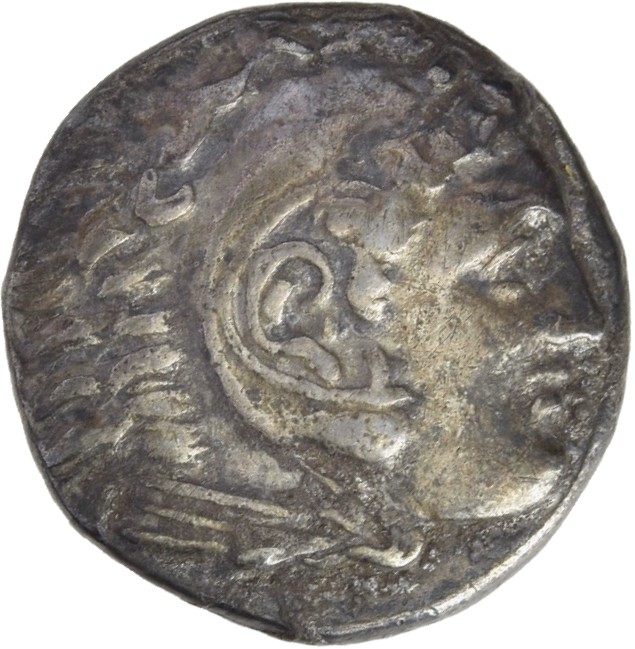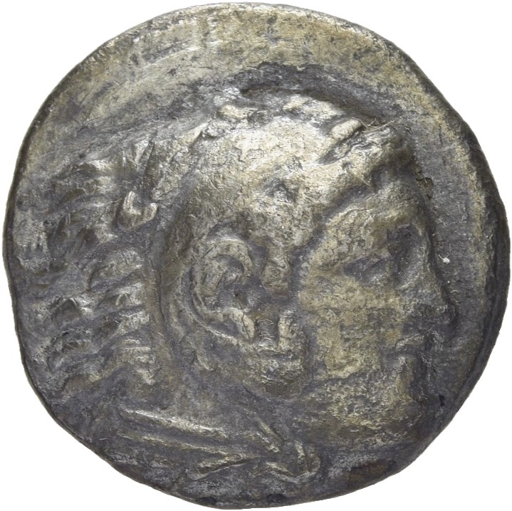 Head of Heracles beardless wearing a lion's skin right -[en]