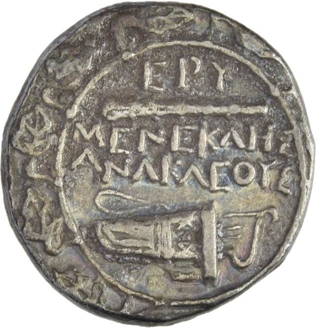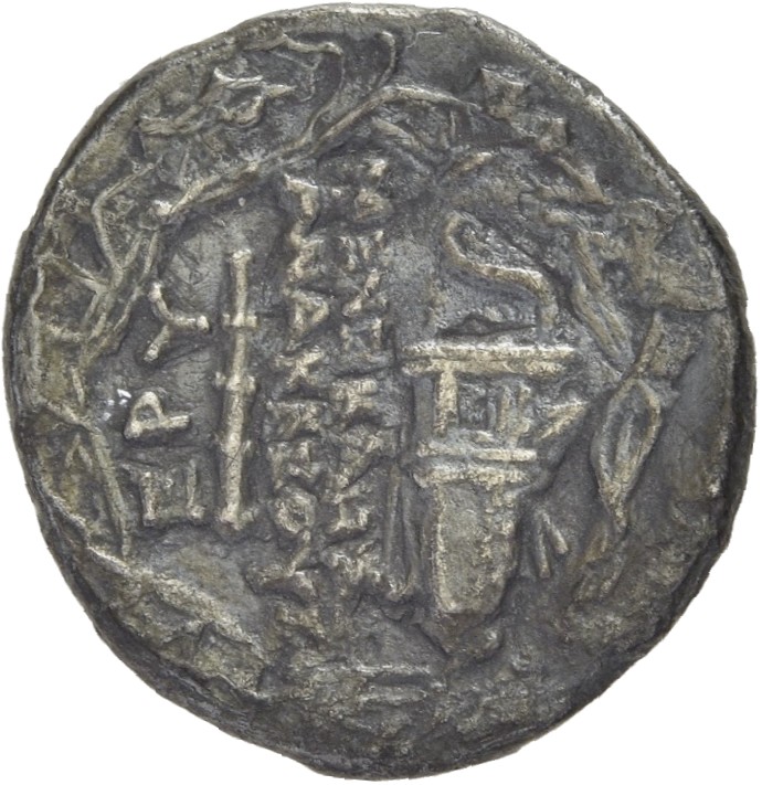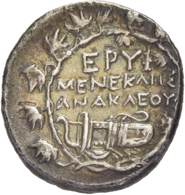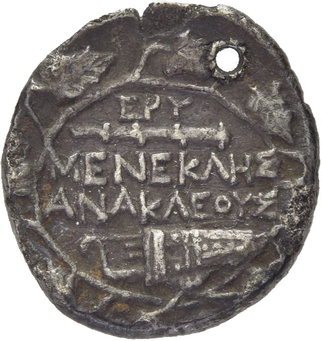 Club and bow in a gorytos (bow case); in a vine wreath -[en]