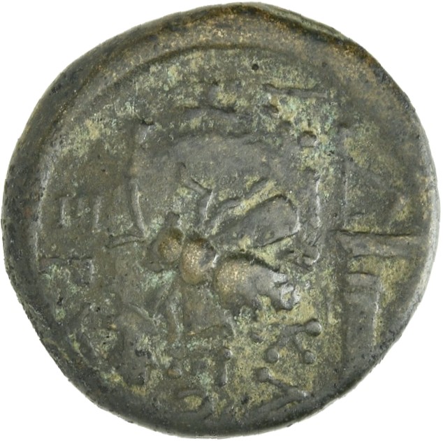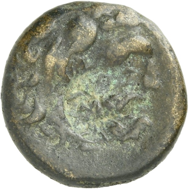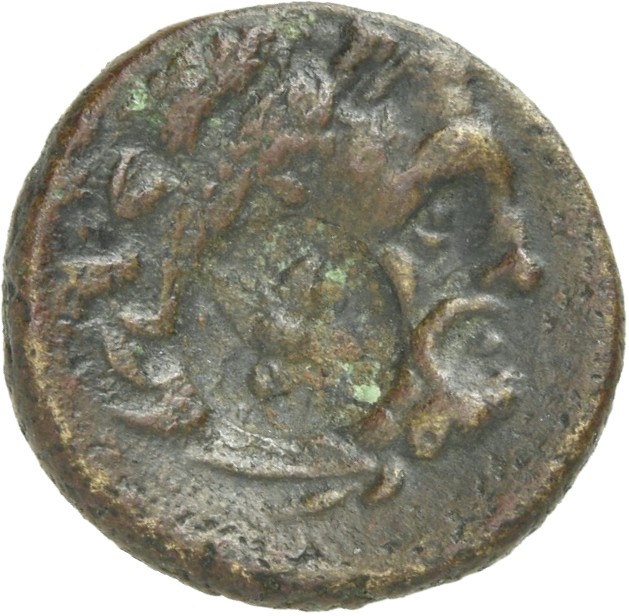 Head of Heracles bearded wearing a lion's skin right -[en]