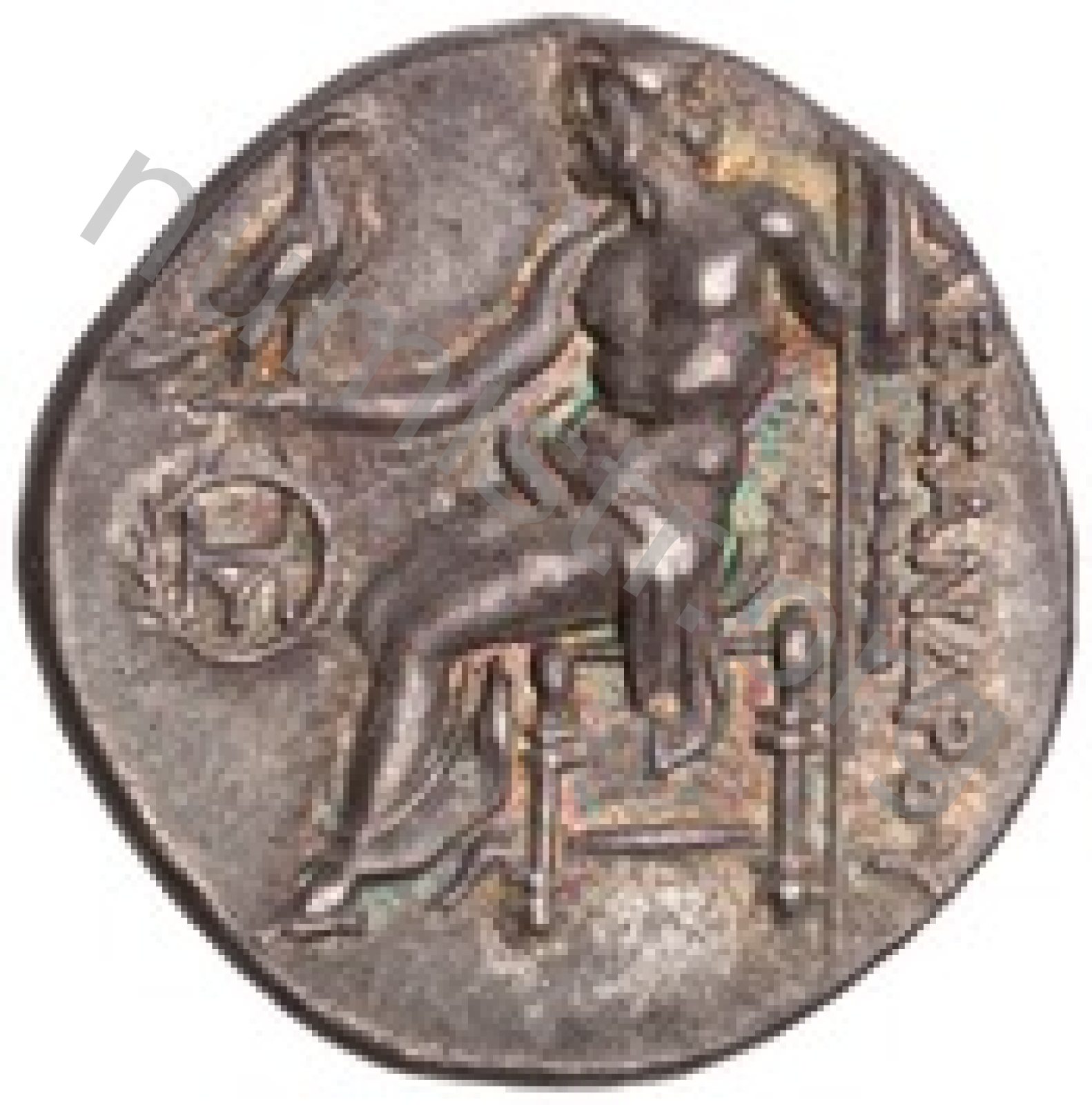 Zeus tabure-tahtta oturuyor sol elinde kartal sağ elinde asa var.