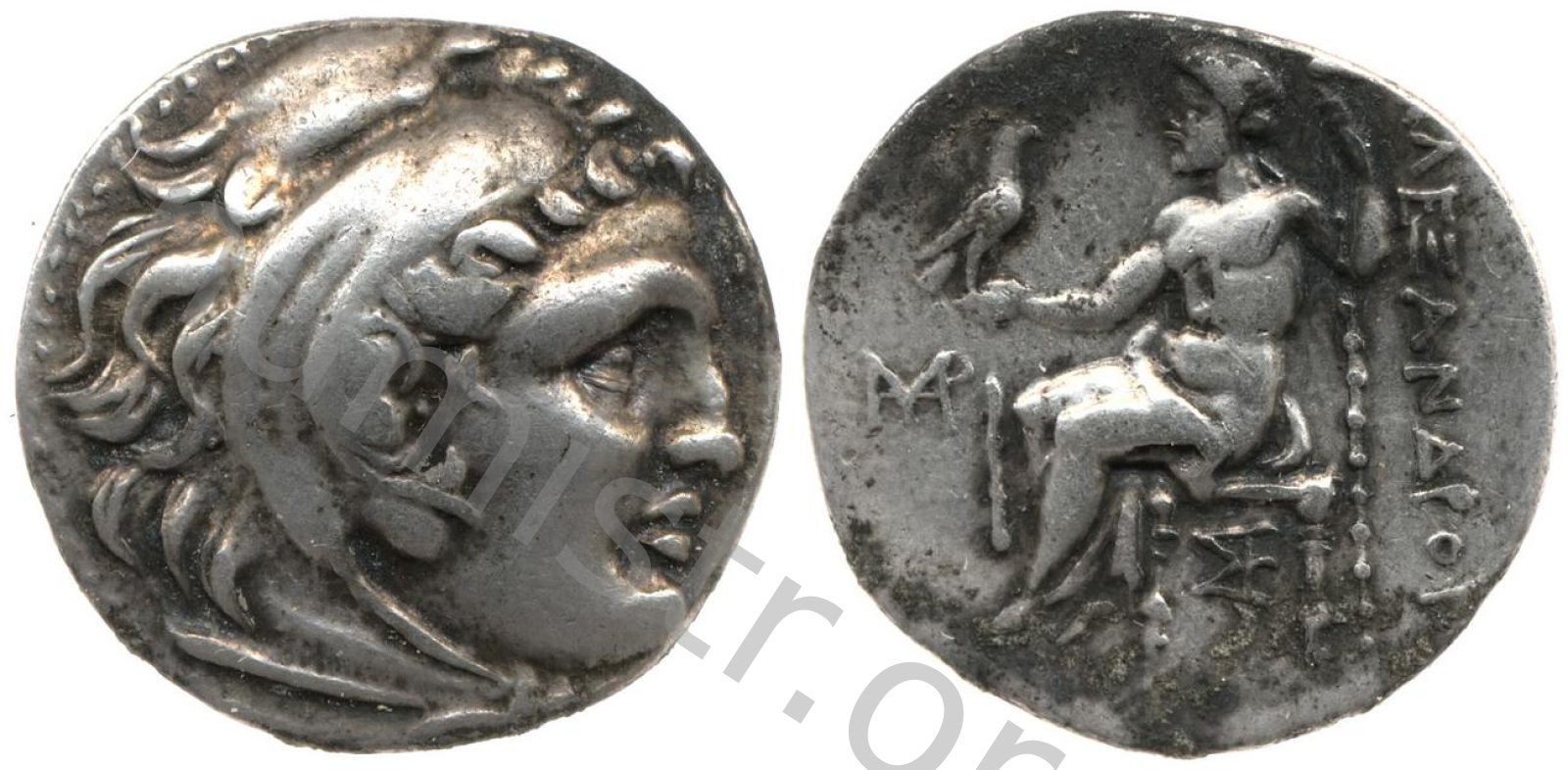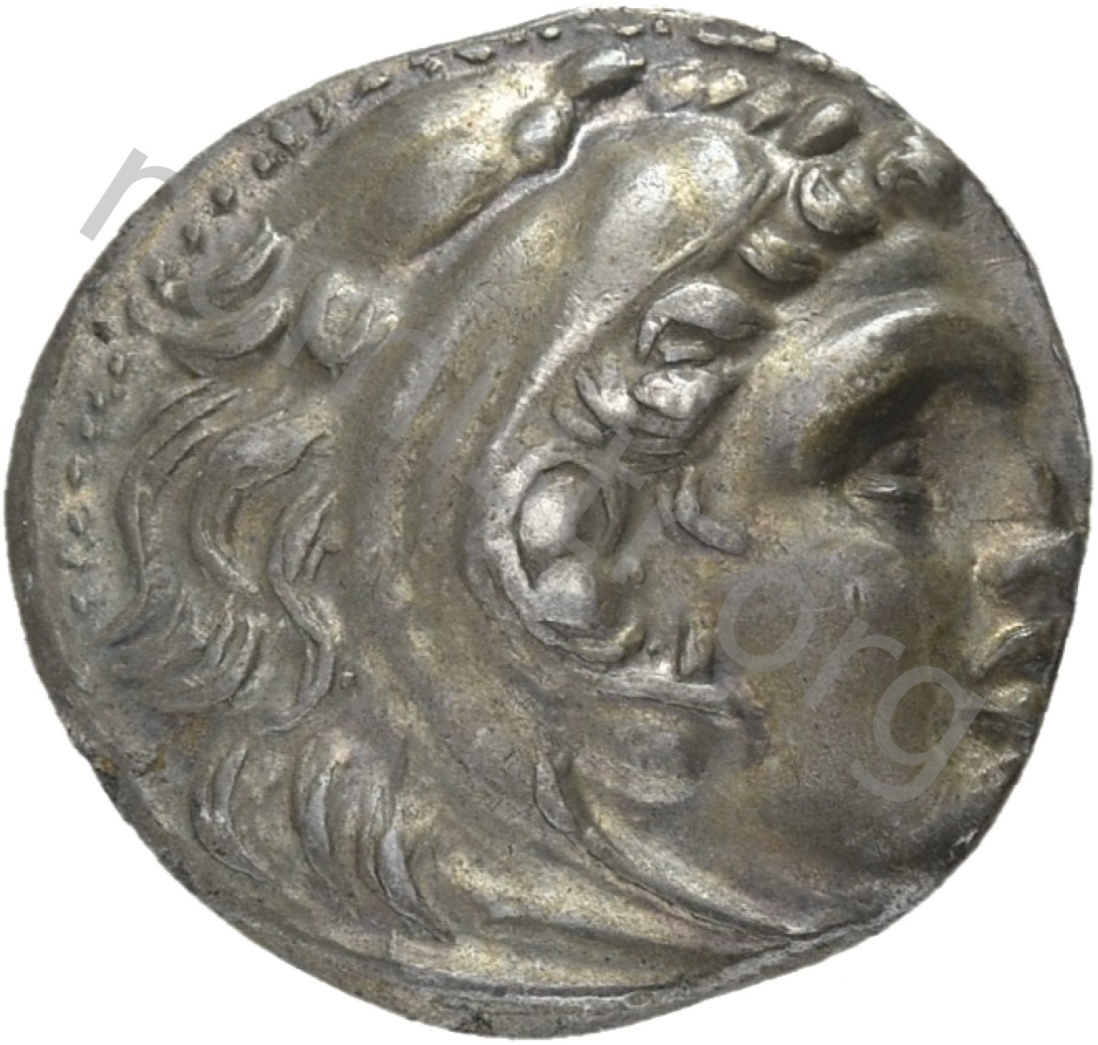 Head of beardless Heracles right wearing lion skin headdress -[en]