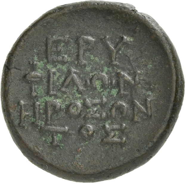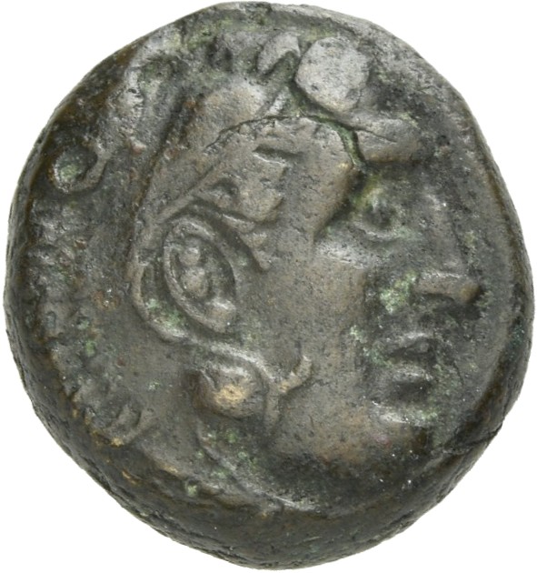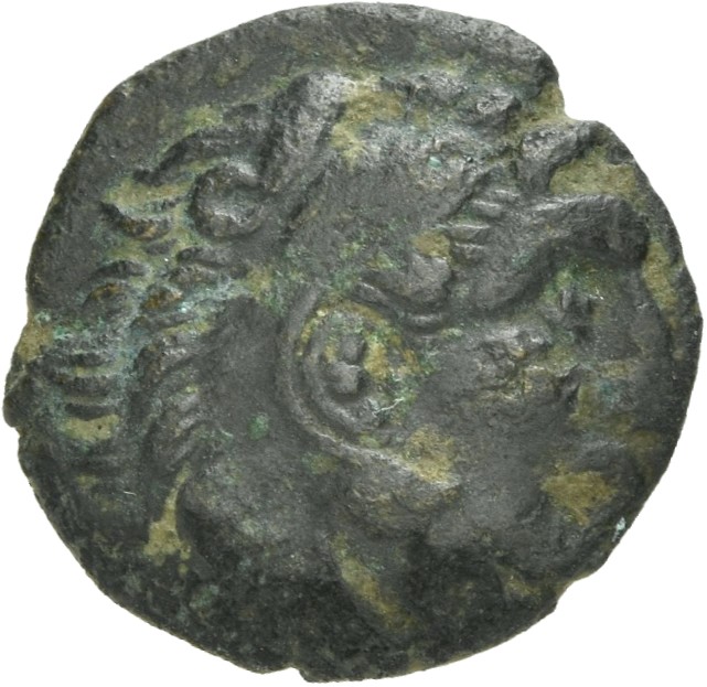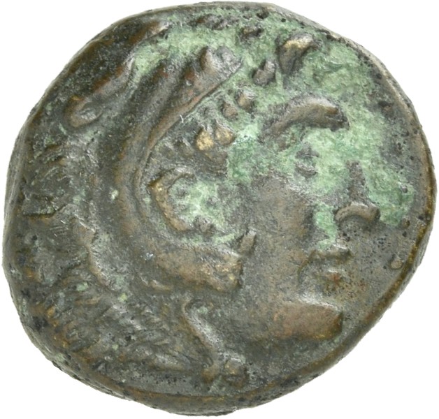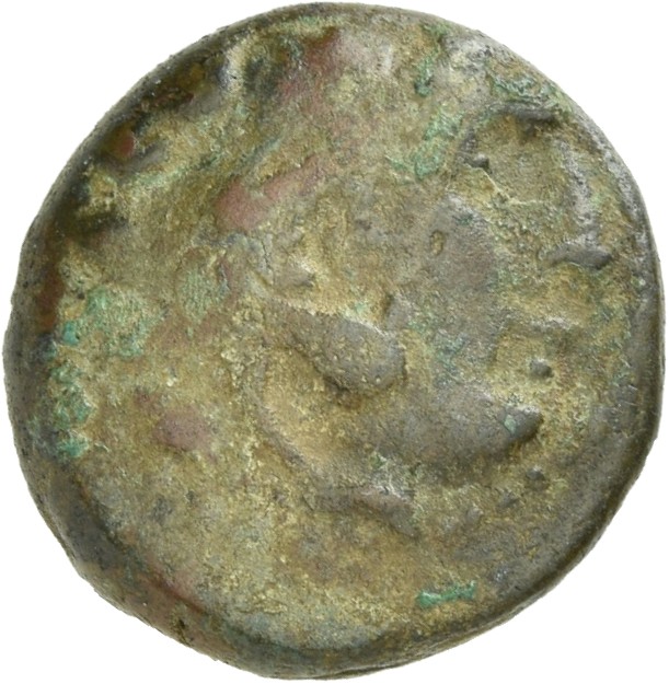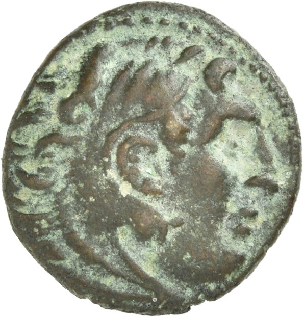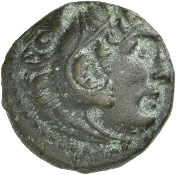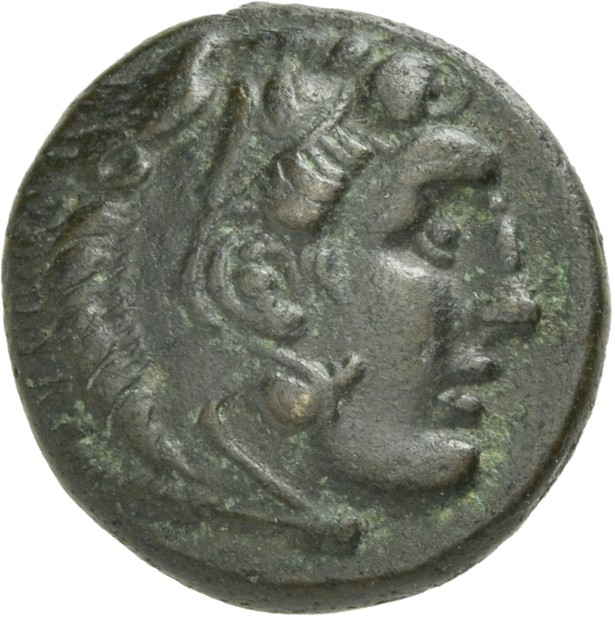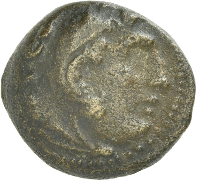 Head of Heracles beardless wearing a lion's skin right -[en]