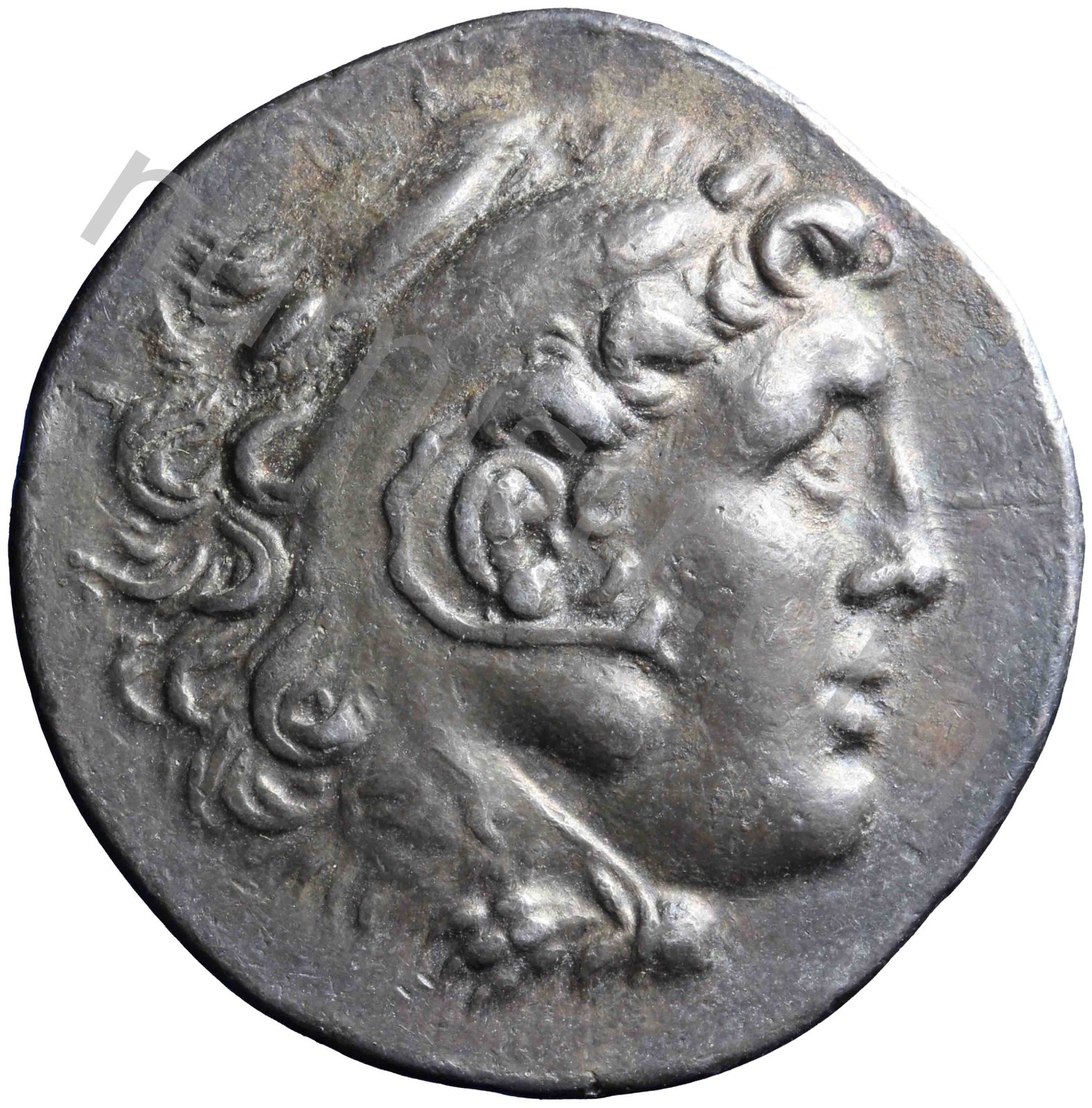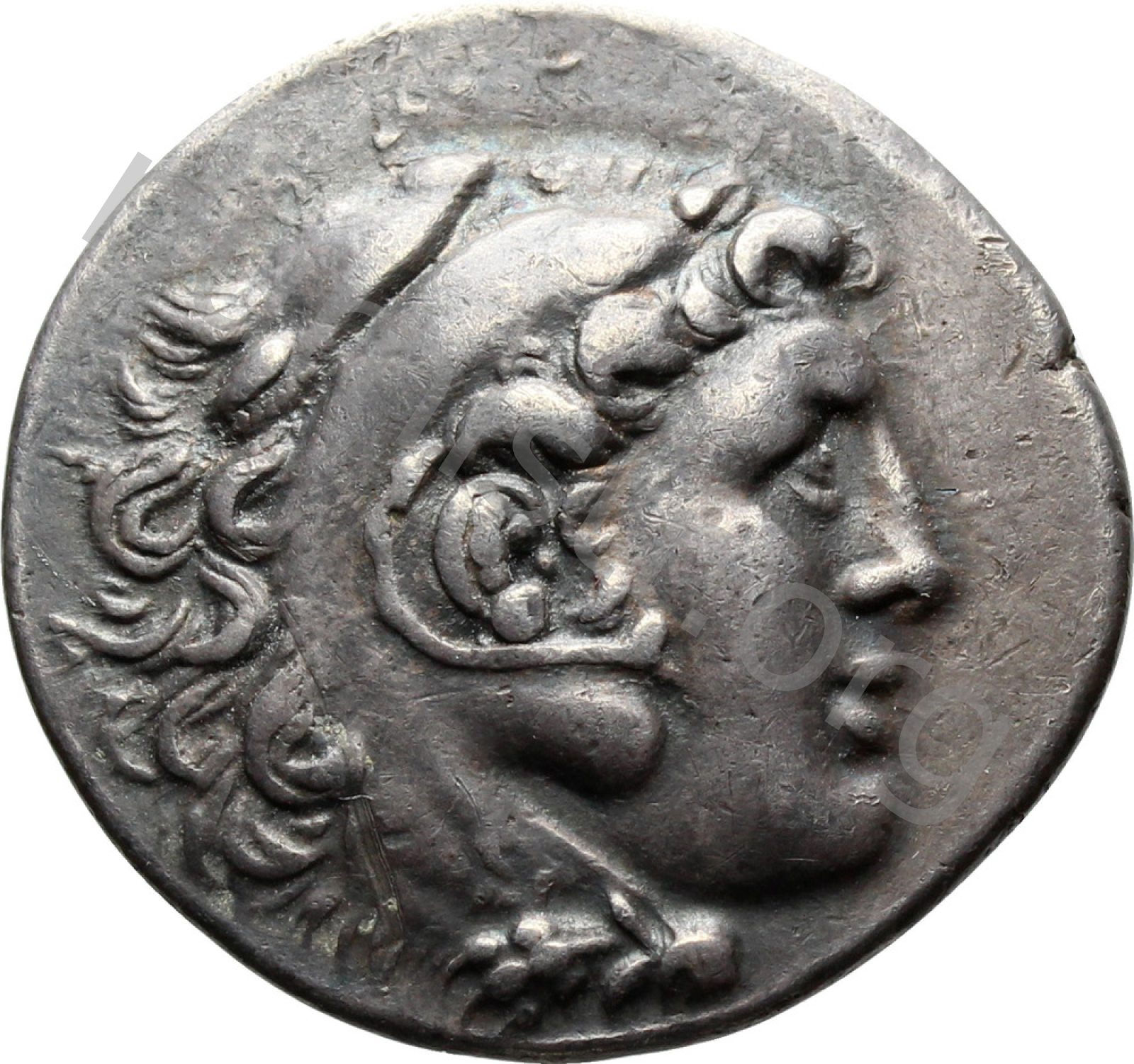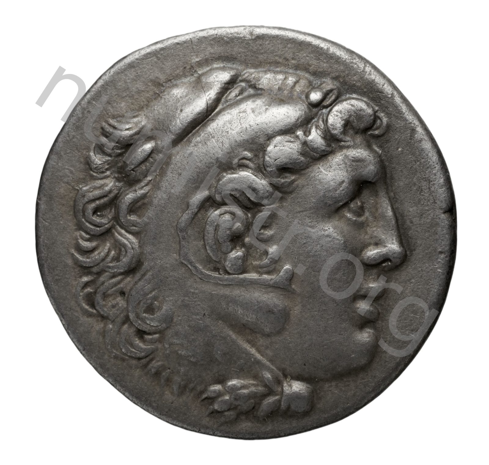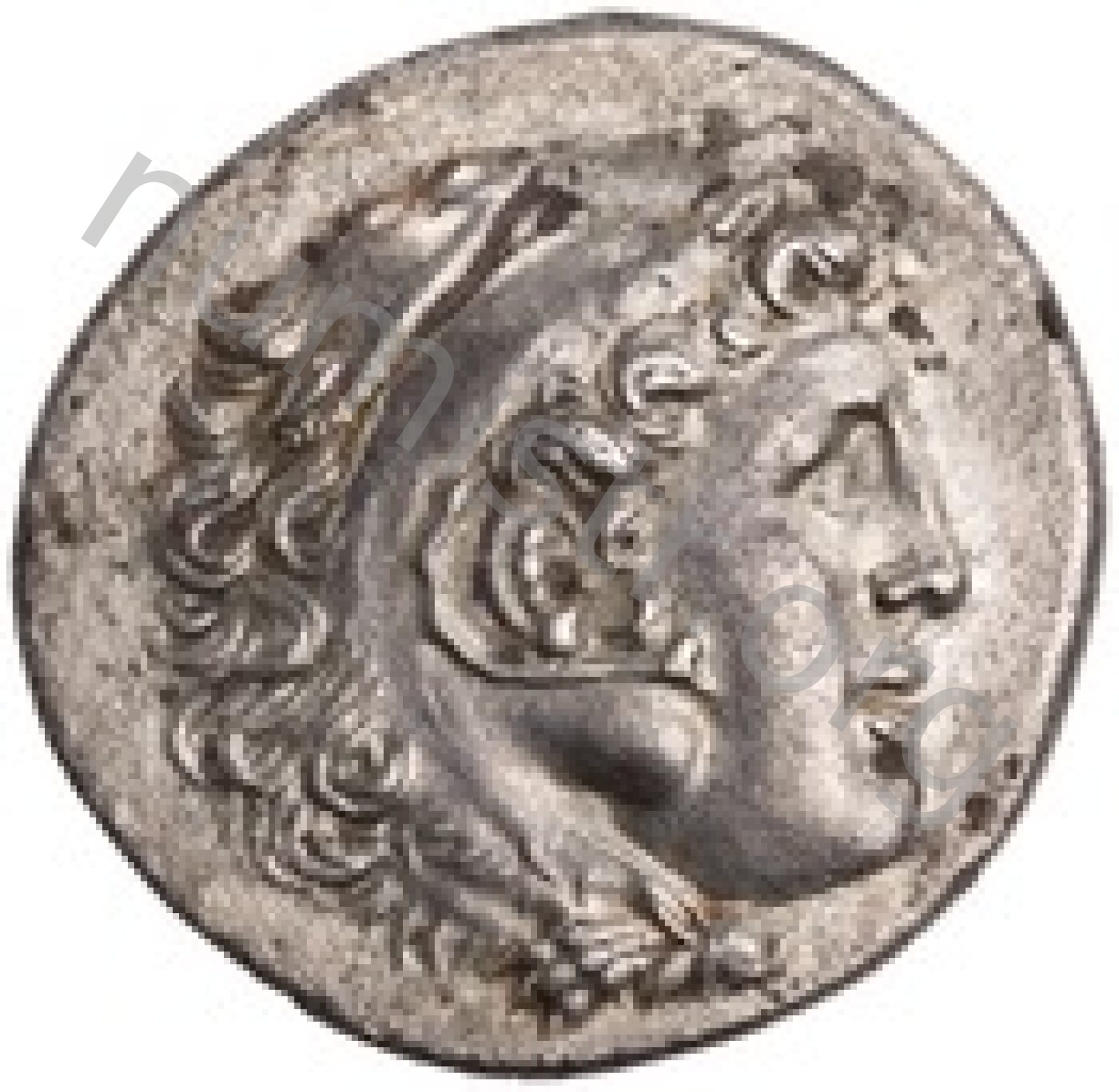 Head of beardless Heracles right wearing lion skin headdress -[en]