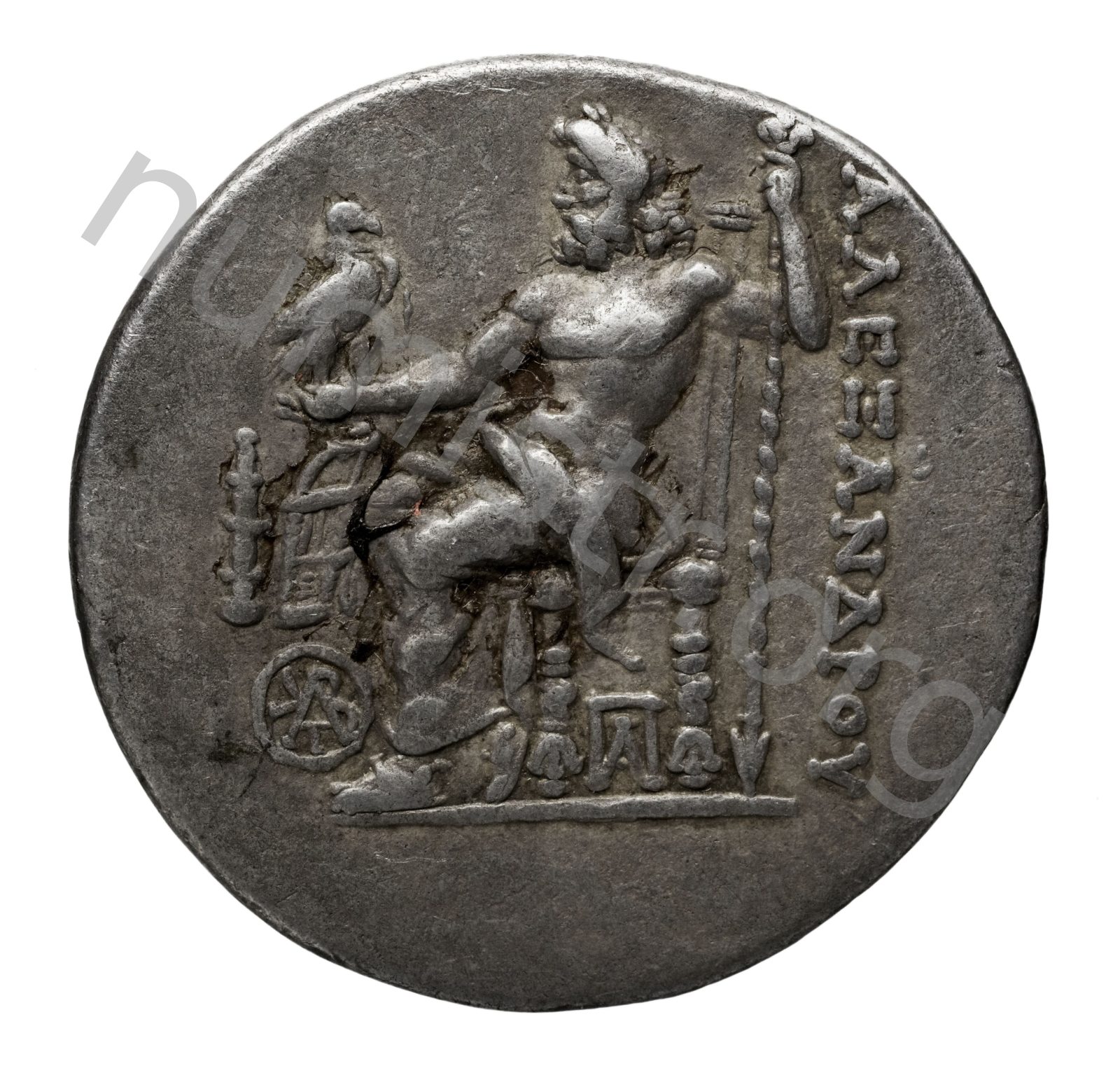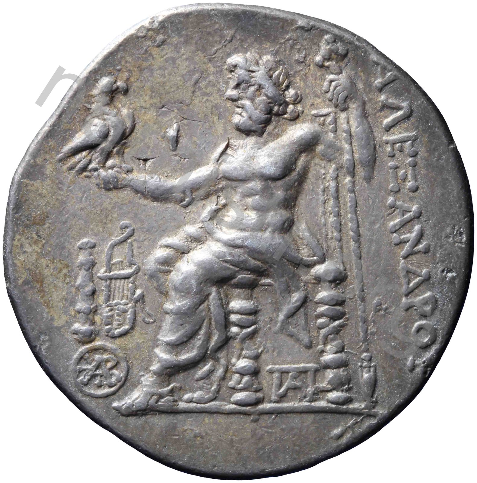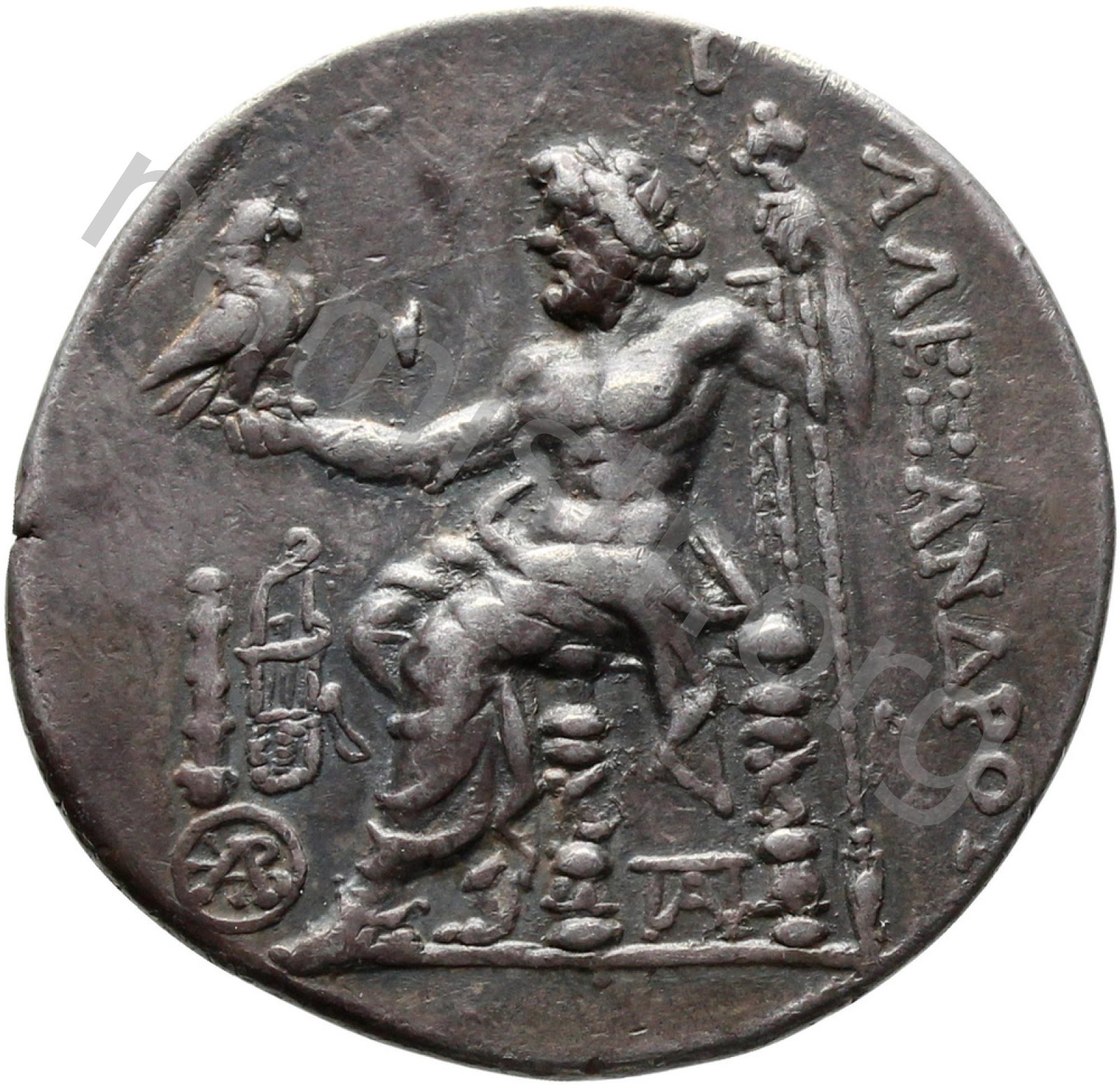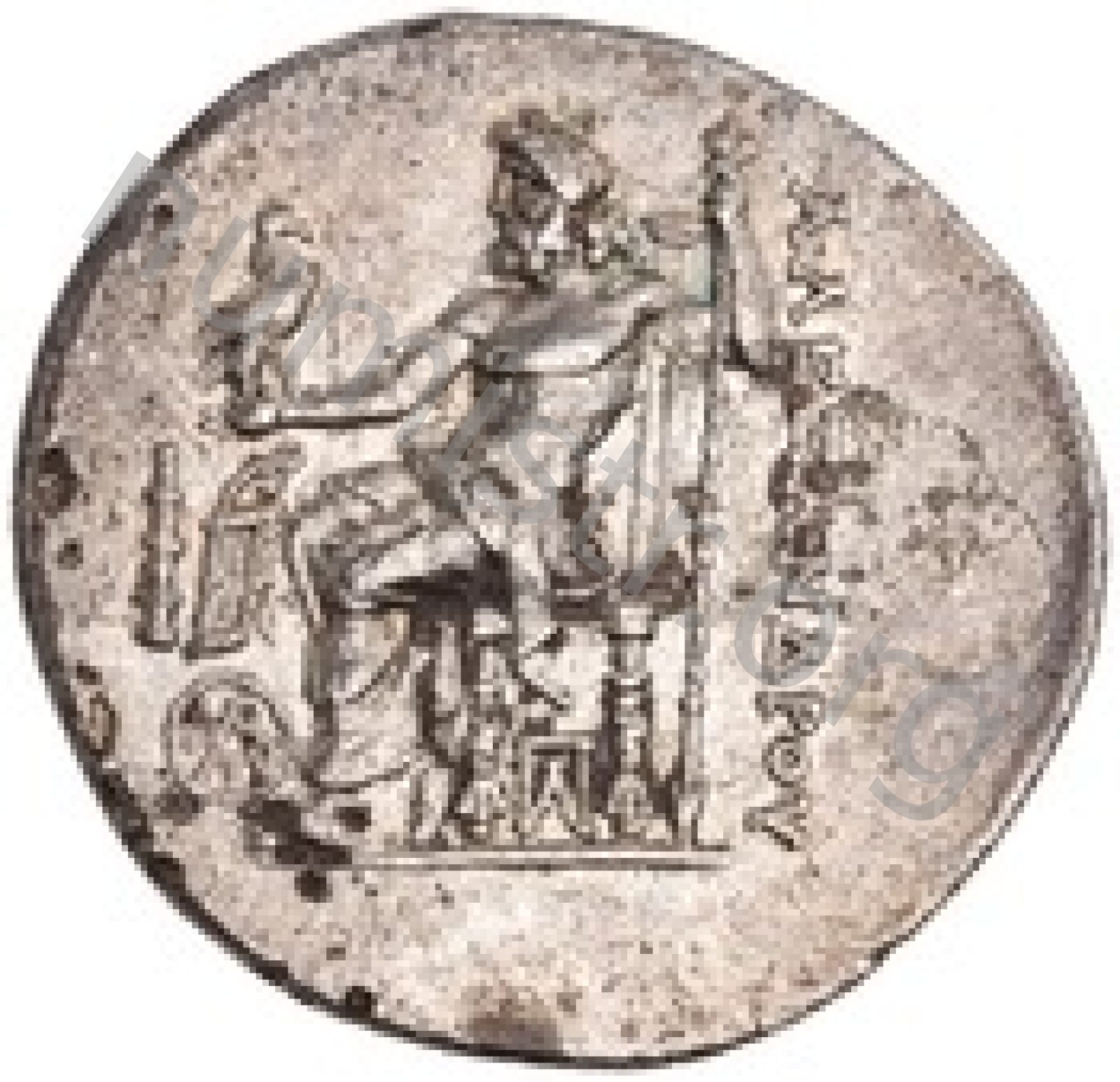 Zeus tabure-tahtta oturuyor sol elinde kartal sağ elinde asa var.