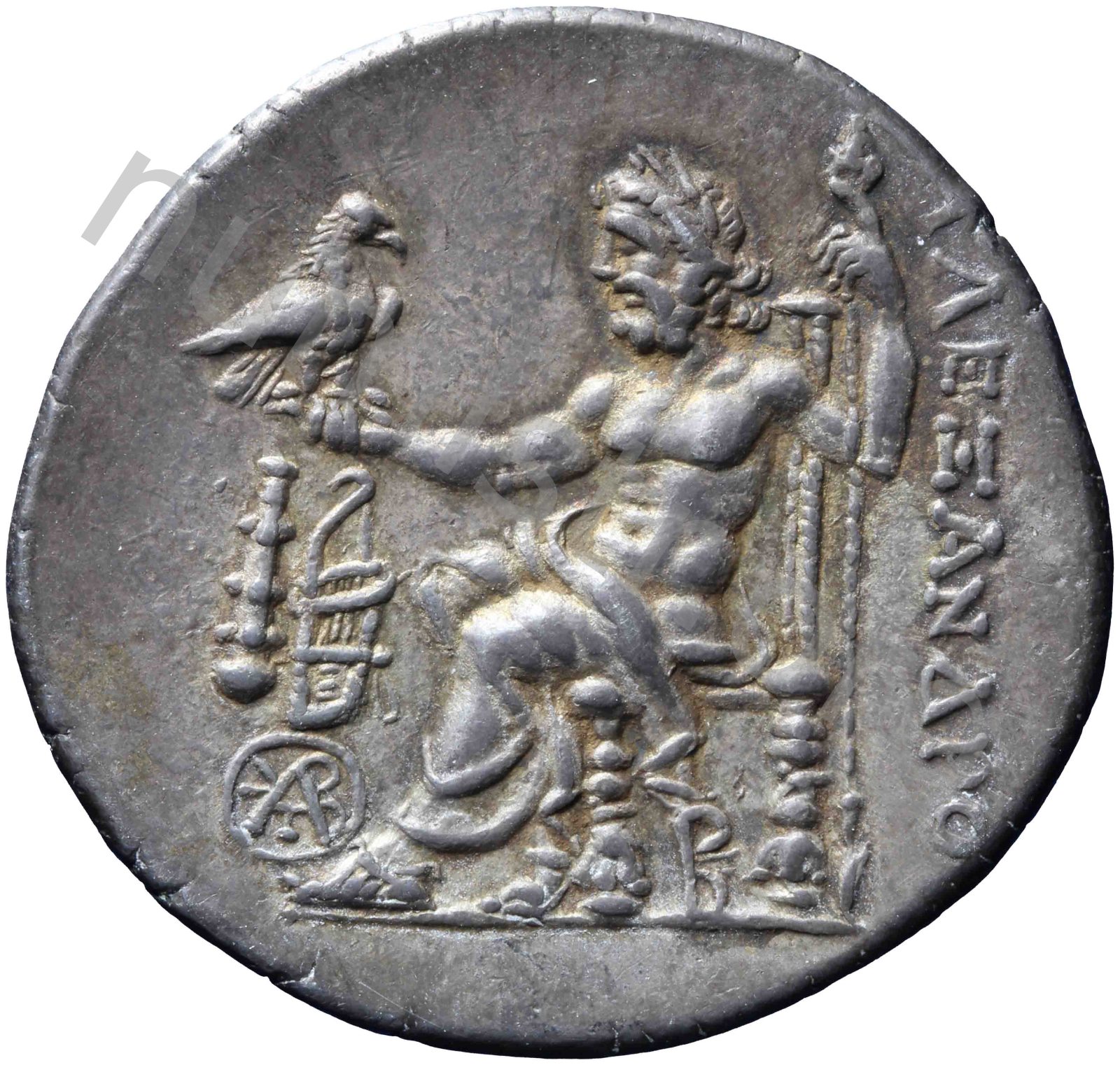 Zeus tabure-tahtta oturuyor sol elinde kartal sağ elinde asa var