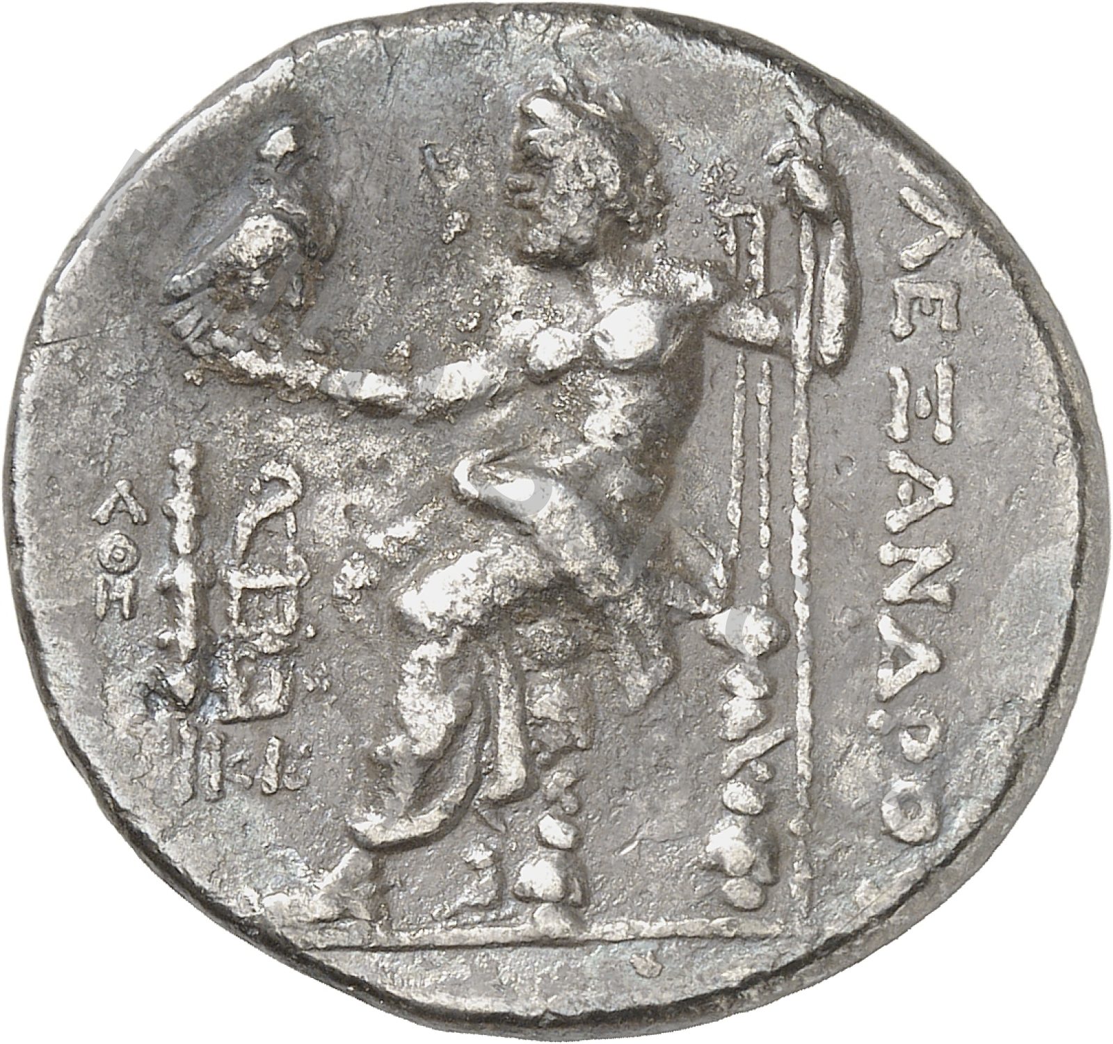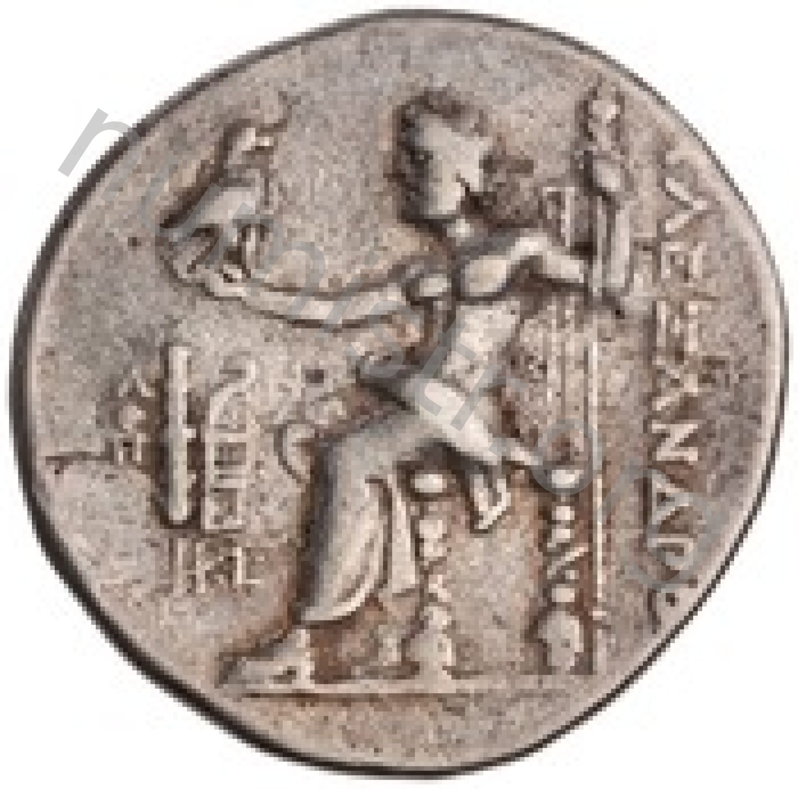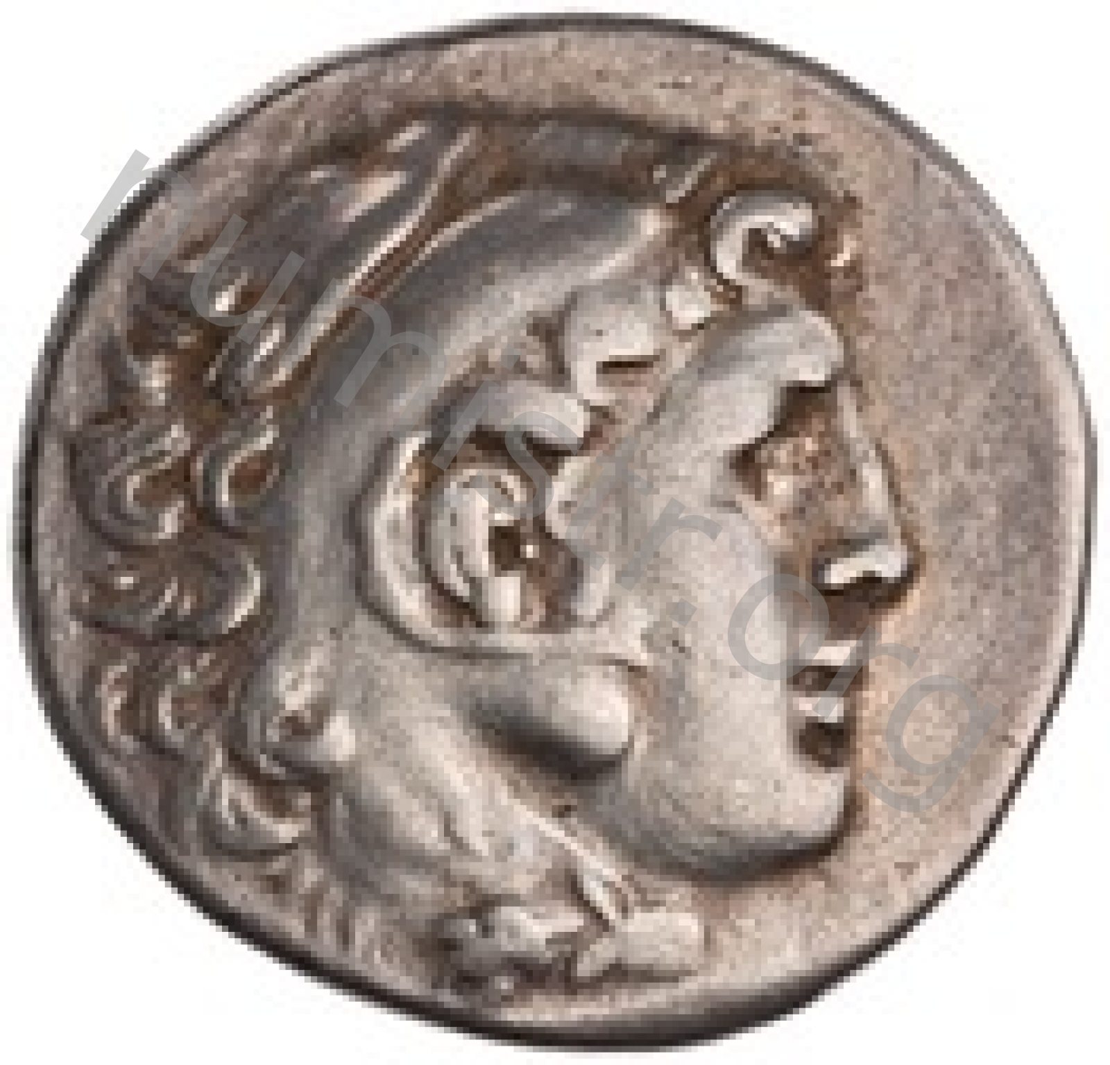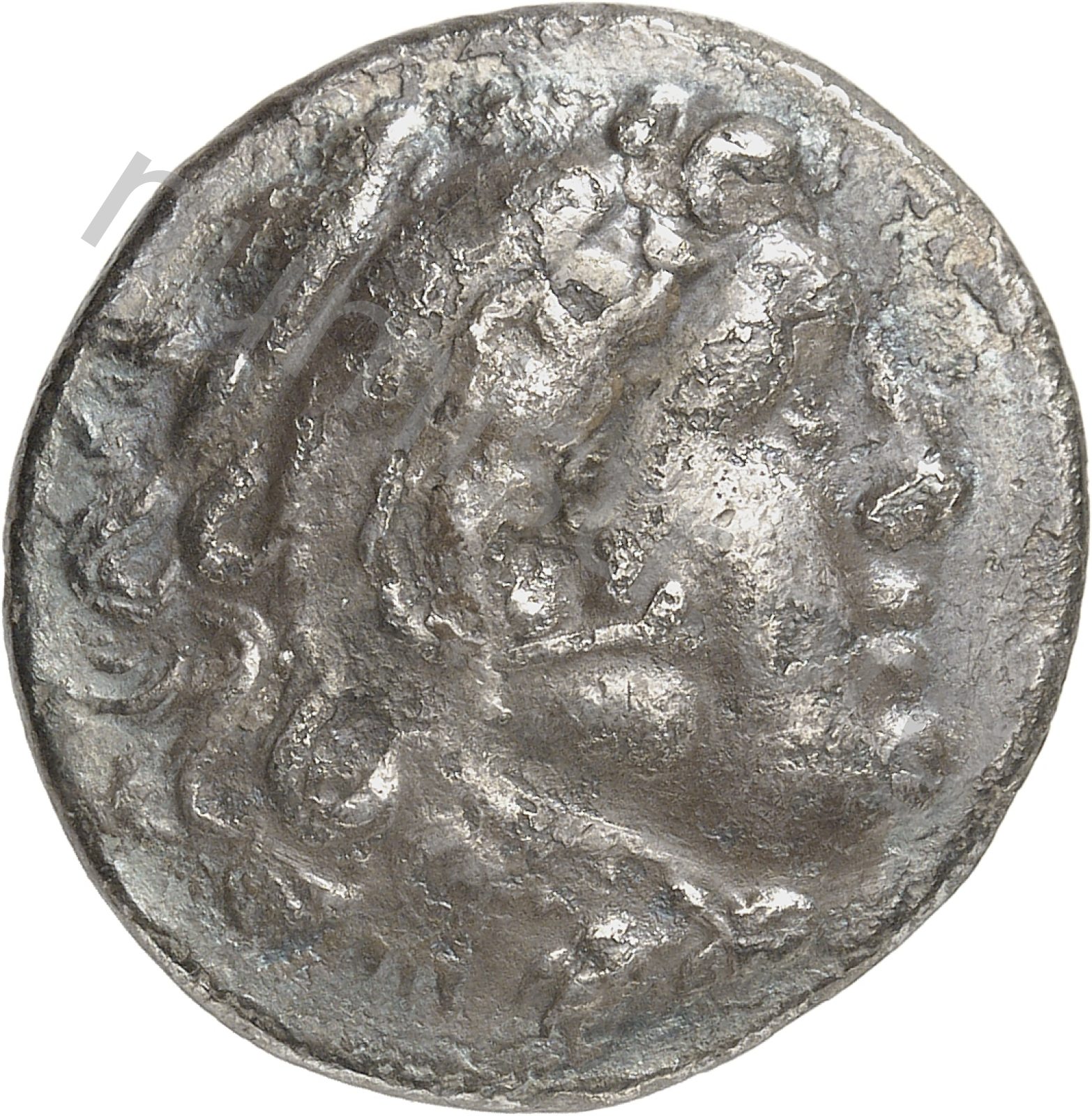 Head of beardless Heracles right wearing lion skin headdress -[en]
