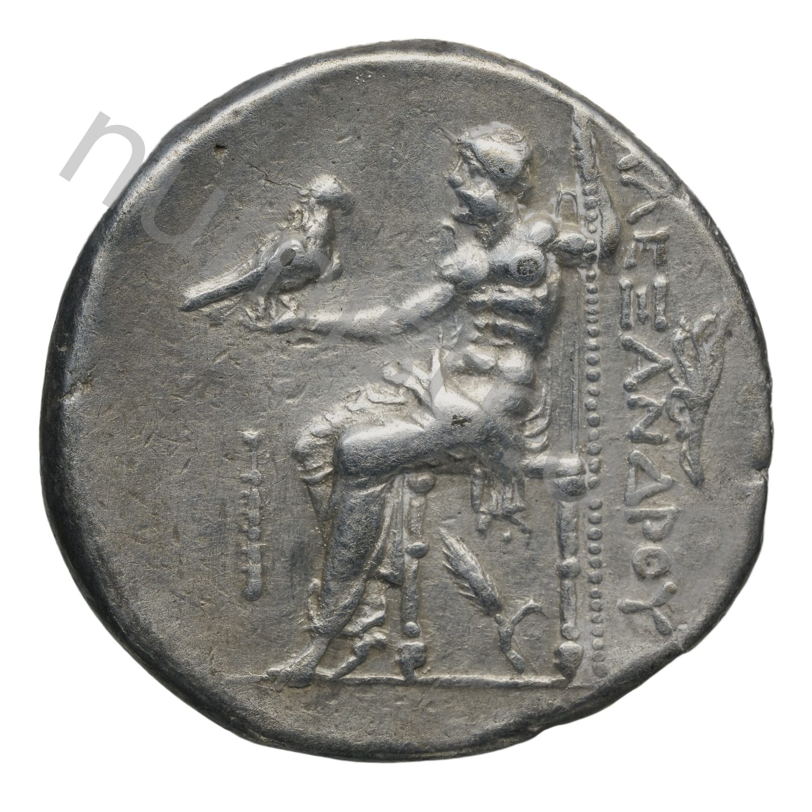 Zeus tabure-tahtta oturuyor sol elinde kartal sağ elinde asa var.