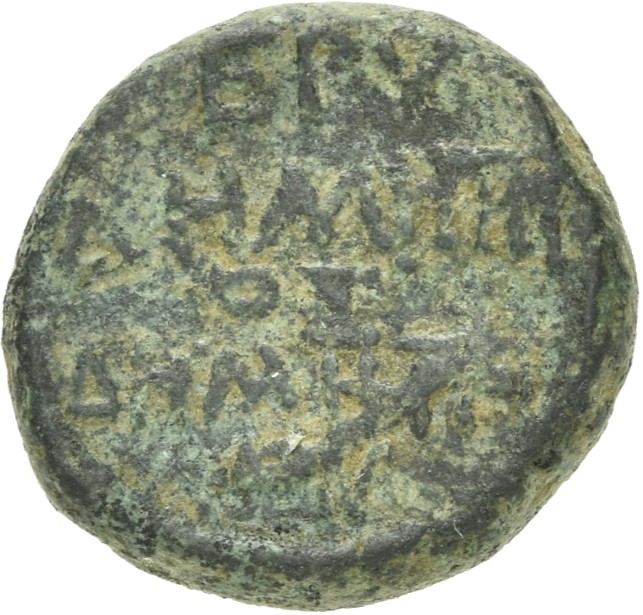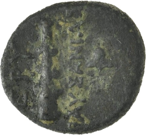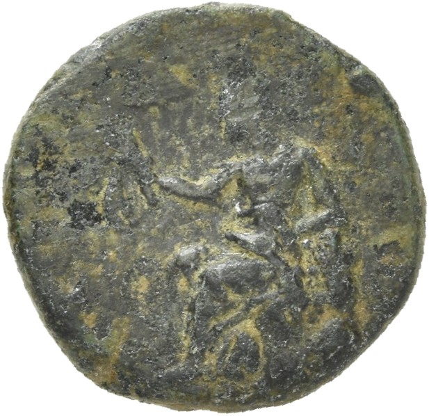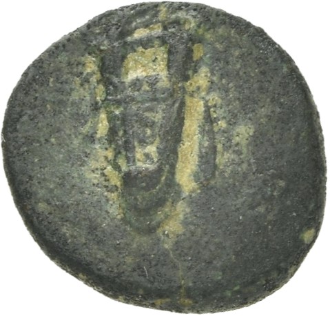 The Sibyl Herophile seated on a rock holding a book-roll; all in a wreath -[en]