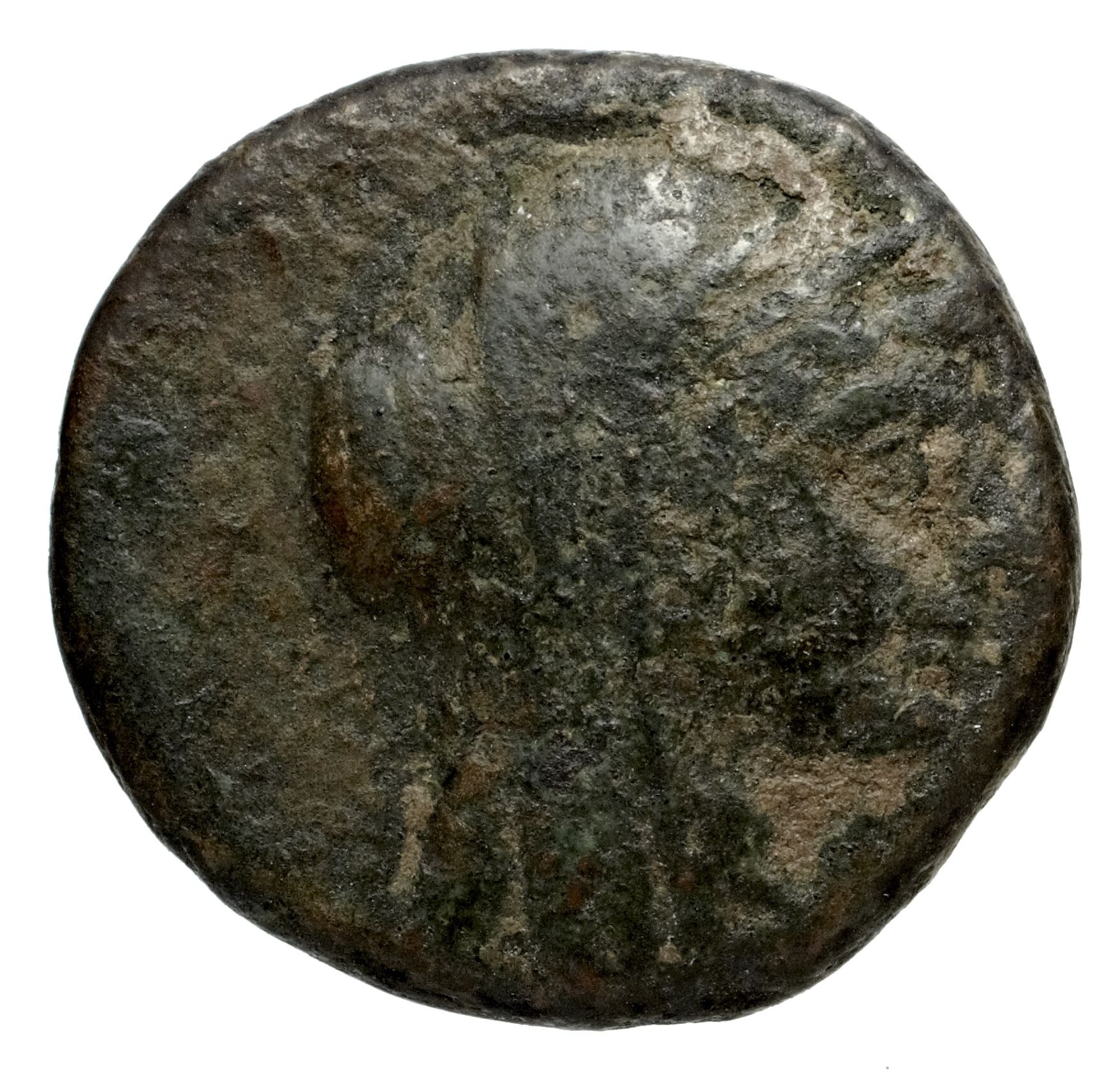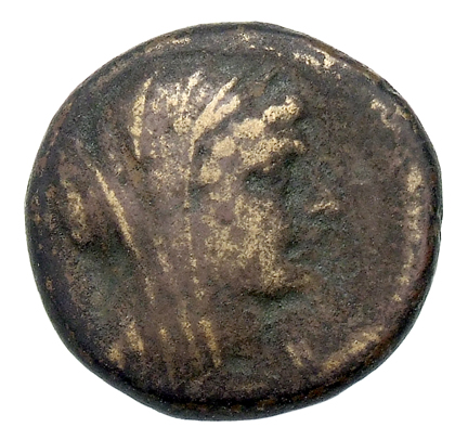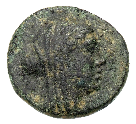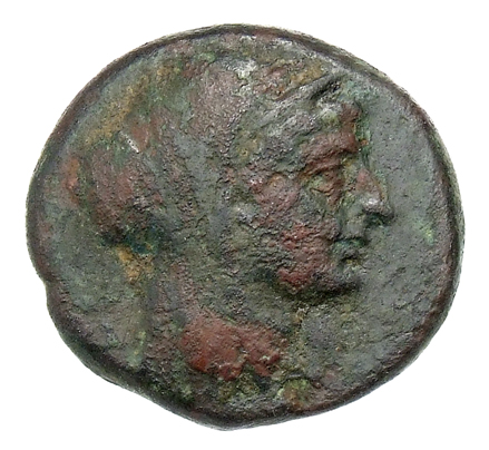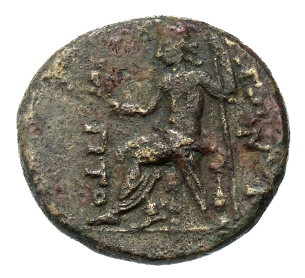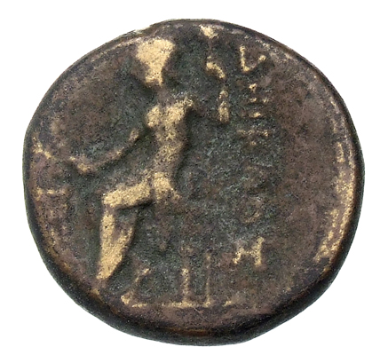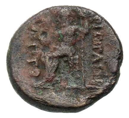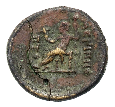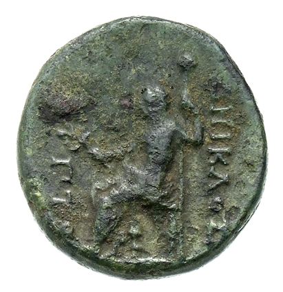 Triptolemos seated on a throne holding ears of grain and a poppy and a sceptre -[en]