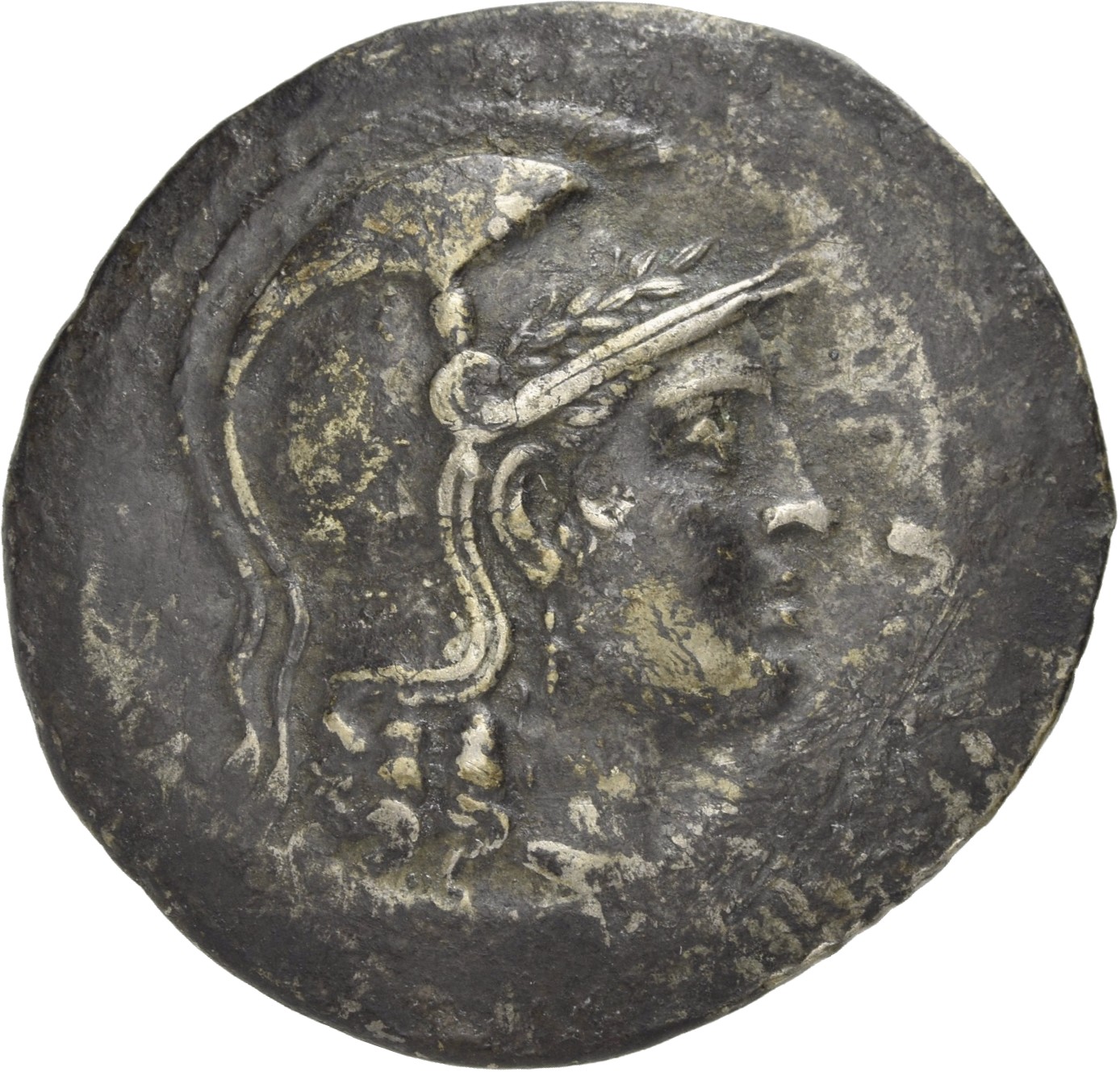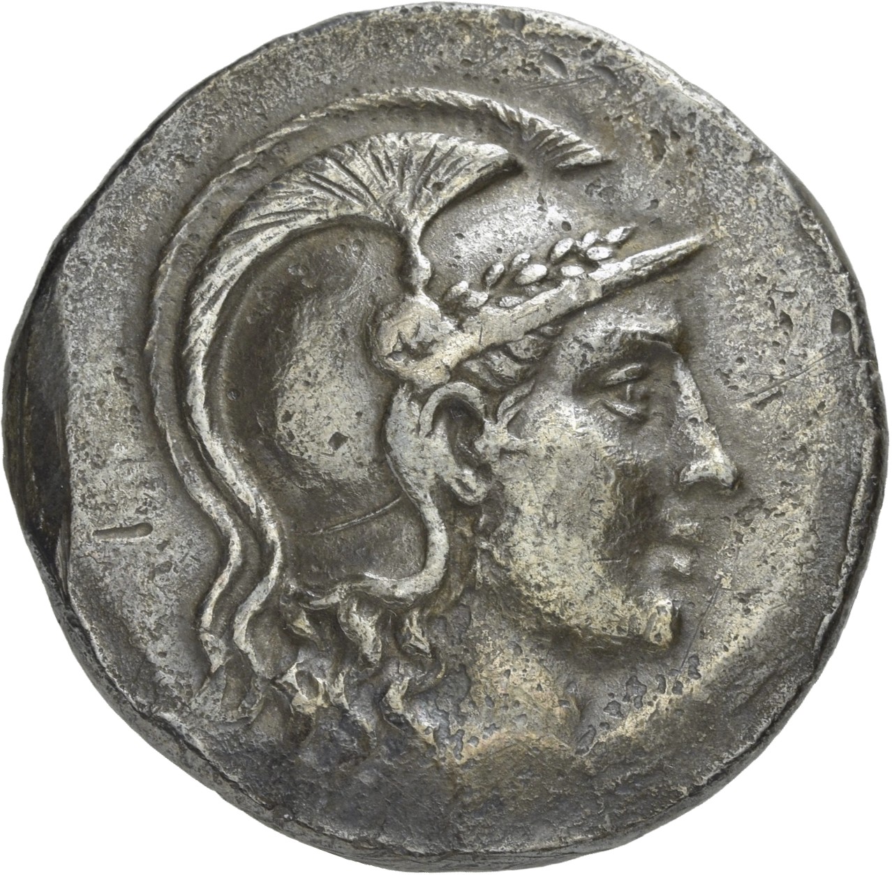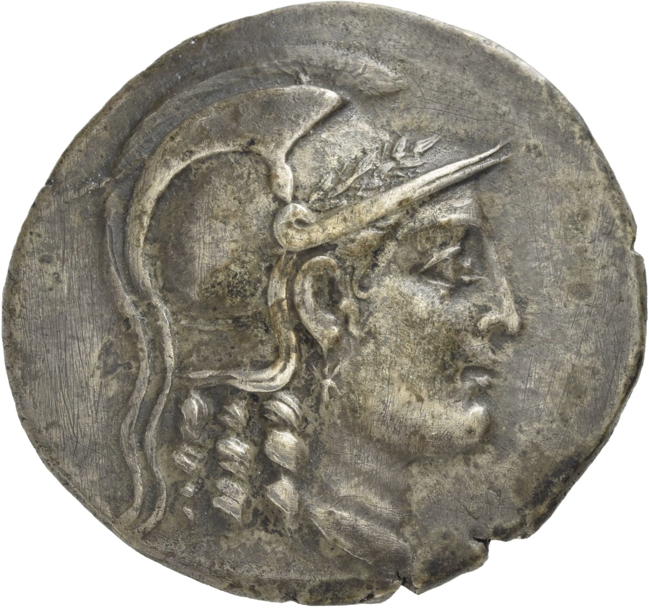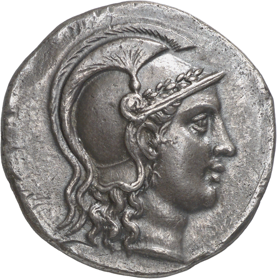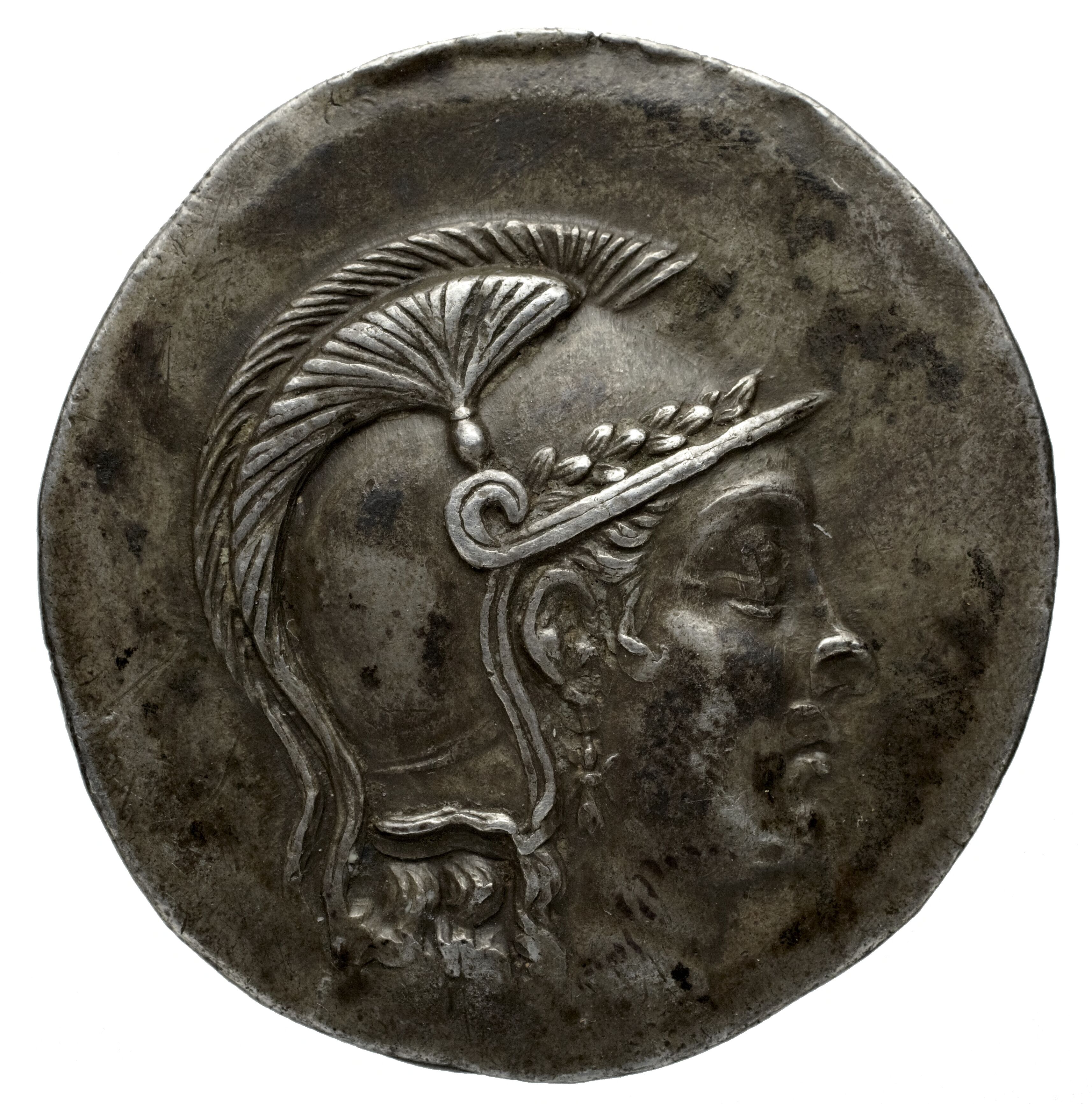 Head of Athena wearing a triple-crested Attic helmet -[en]